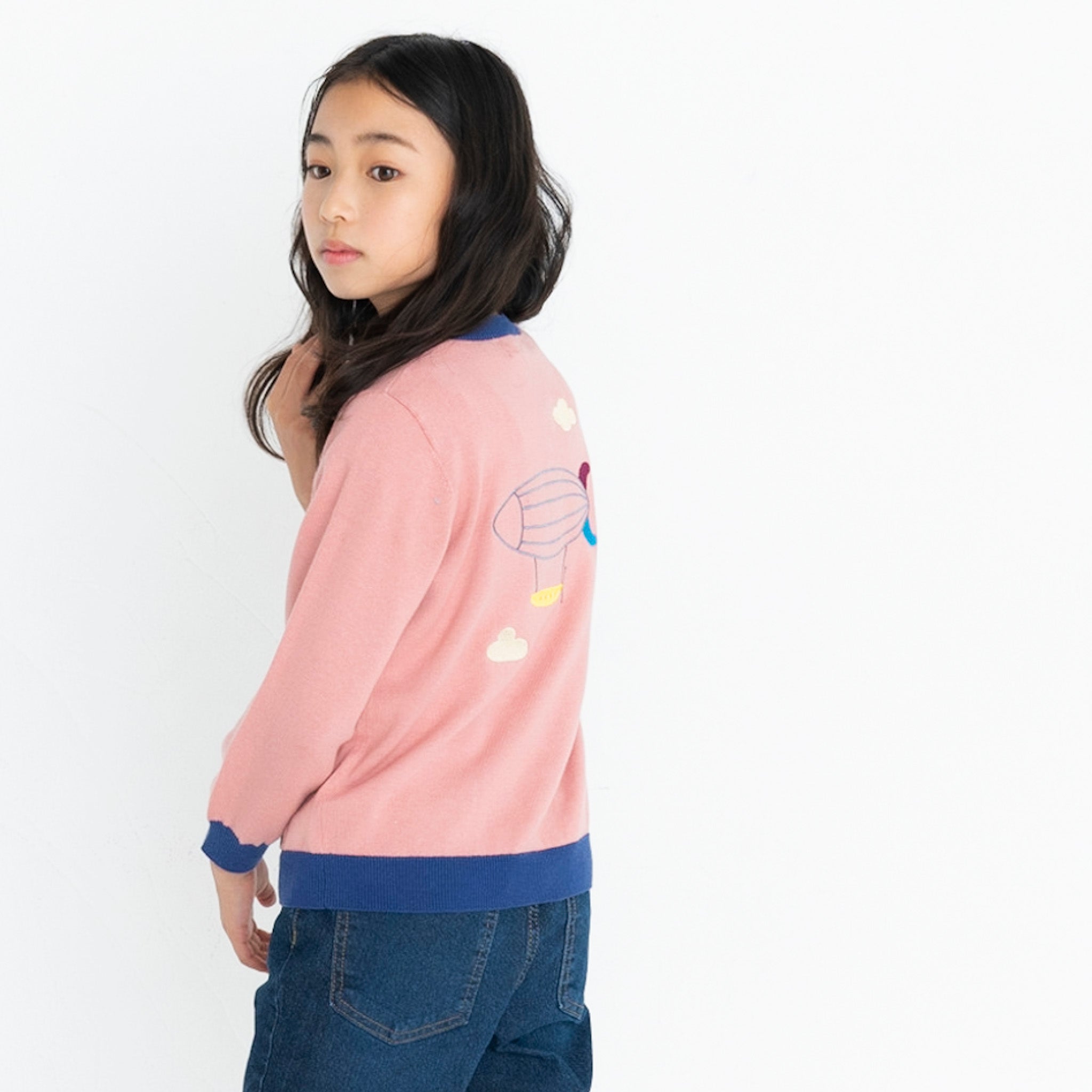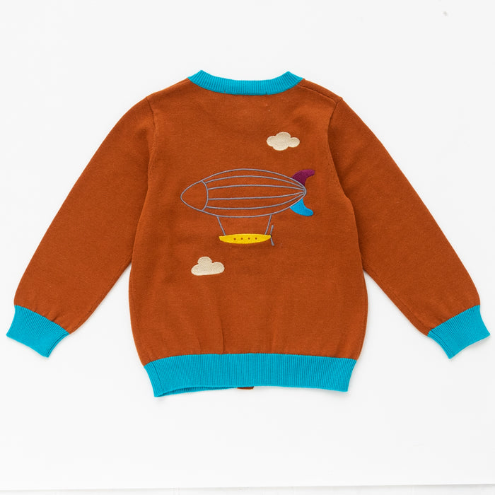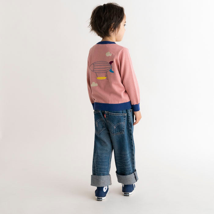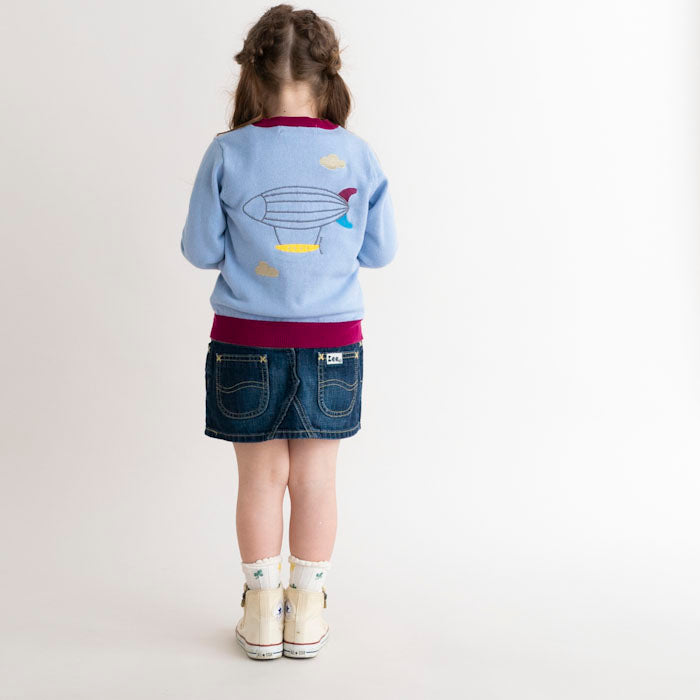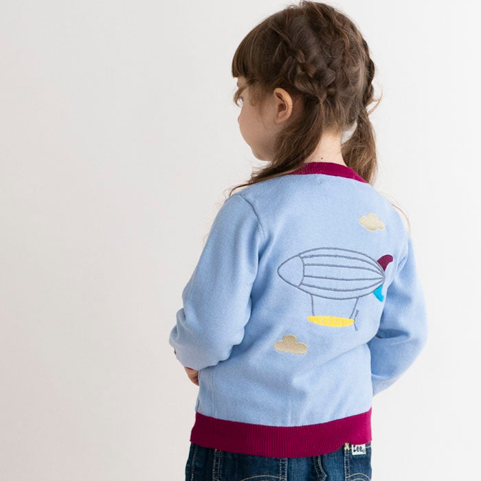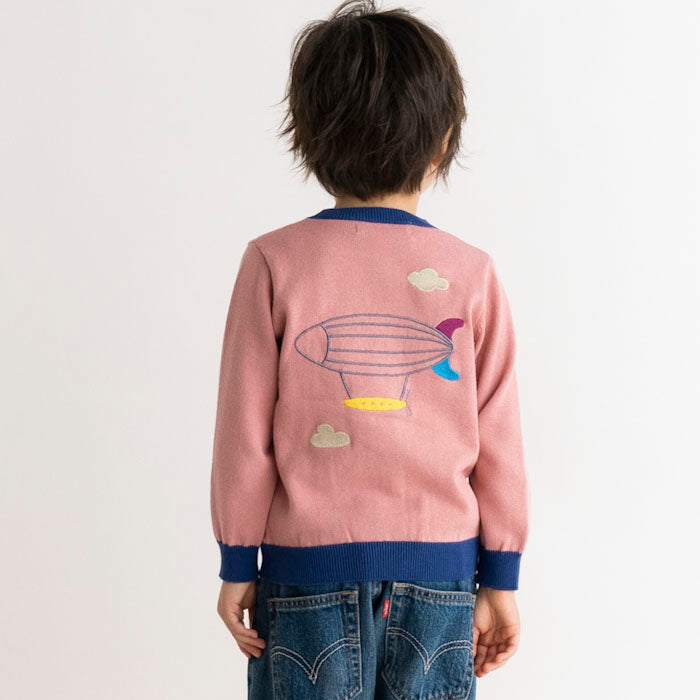 ・背中に飛行船が刺繍された長袖カーディガンです。