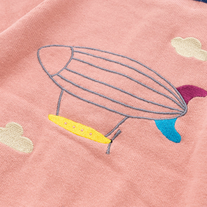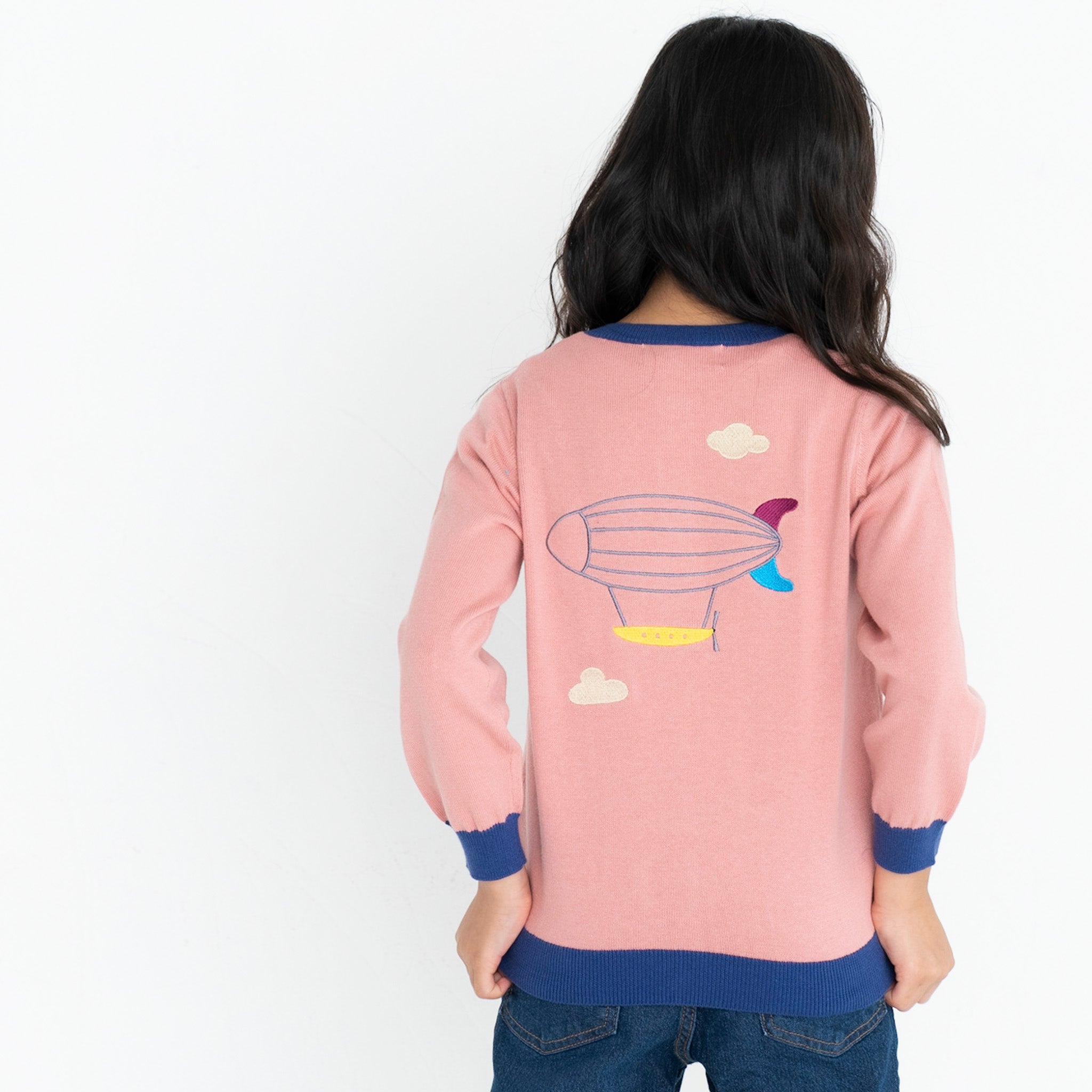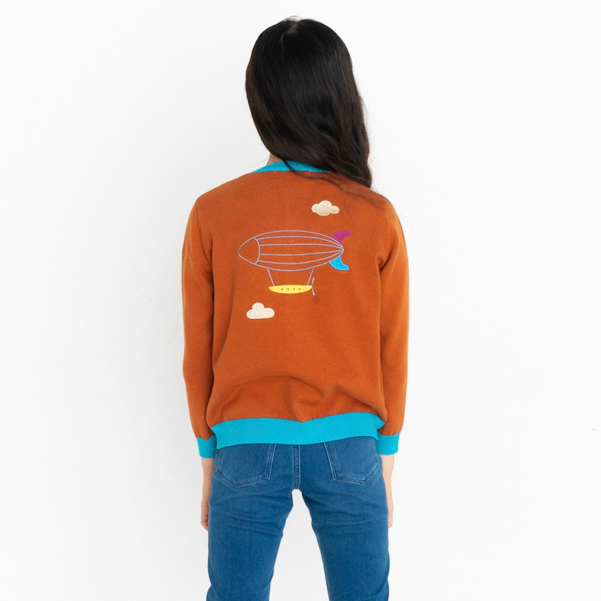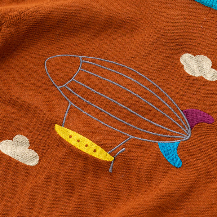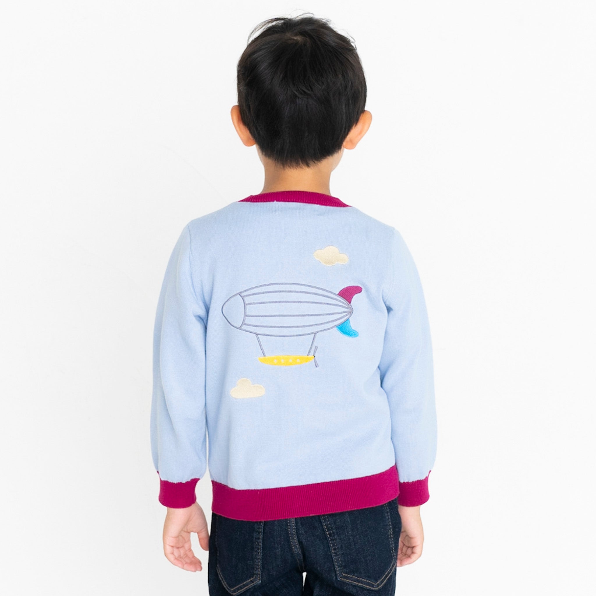 ・背中に飛行船が刺繍された長袖カーディガンです。