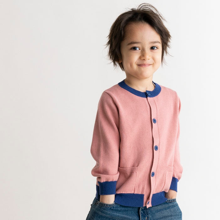 ニットの発色がとてもキレイで、首周りや袖や裾のトリミングの部分の色や刺繍の配色も可愛く他に無いデザインだと思います。 縫製もきれいで、綿100%で肌あたりが良い柔らかさなのが子供に優しくニットなのにマシンウォッシャブル対応なのもありがたいです。