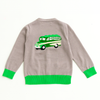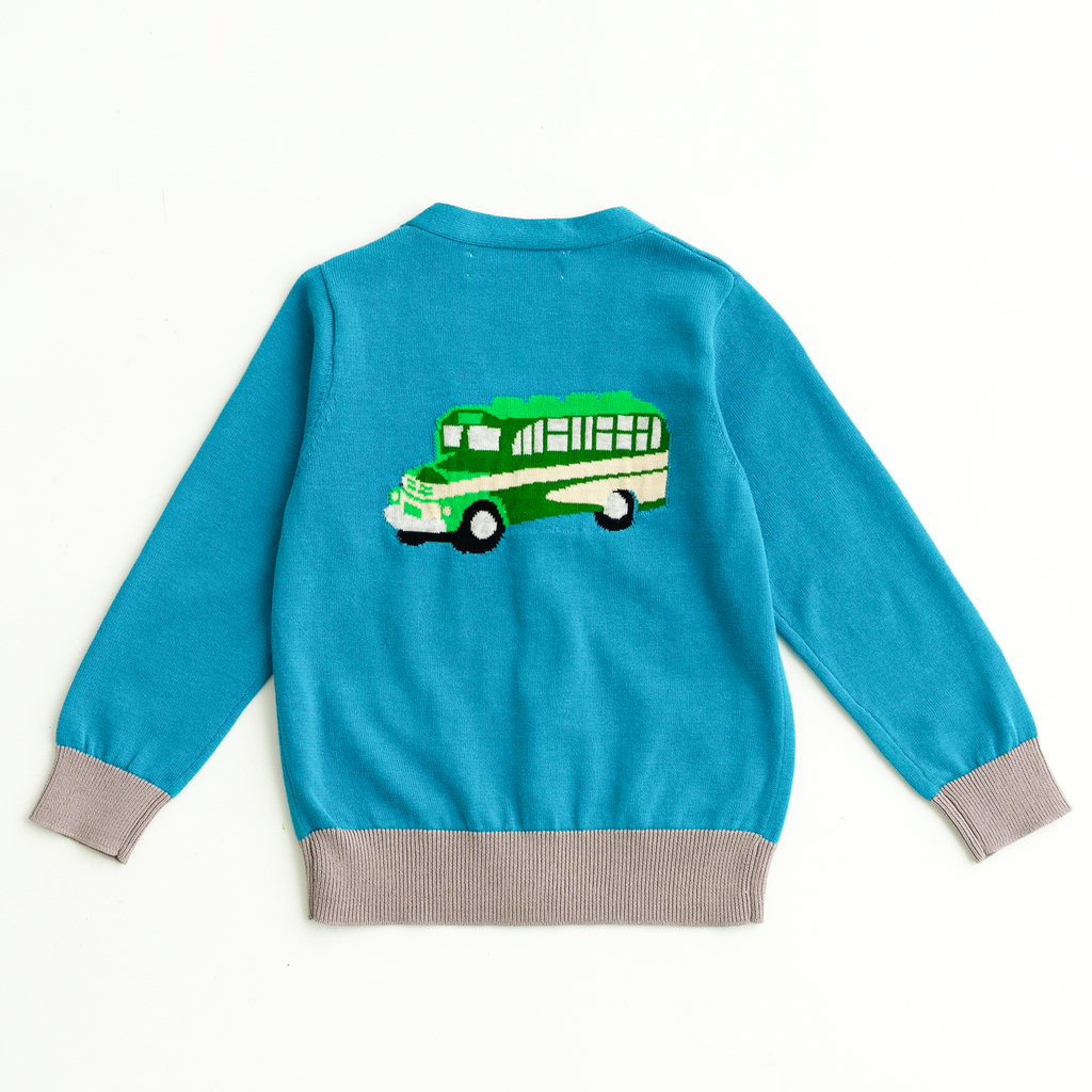 ダブルジャガードのバスが編み込まれたニットカーディガンです。