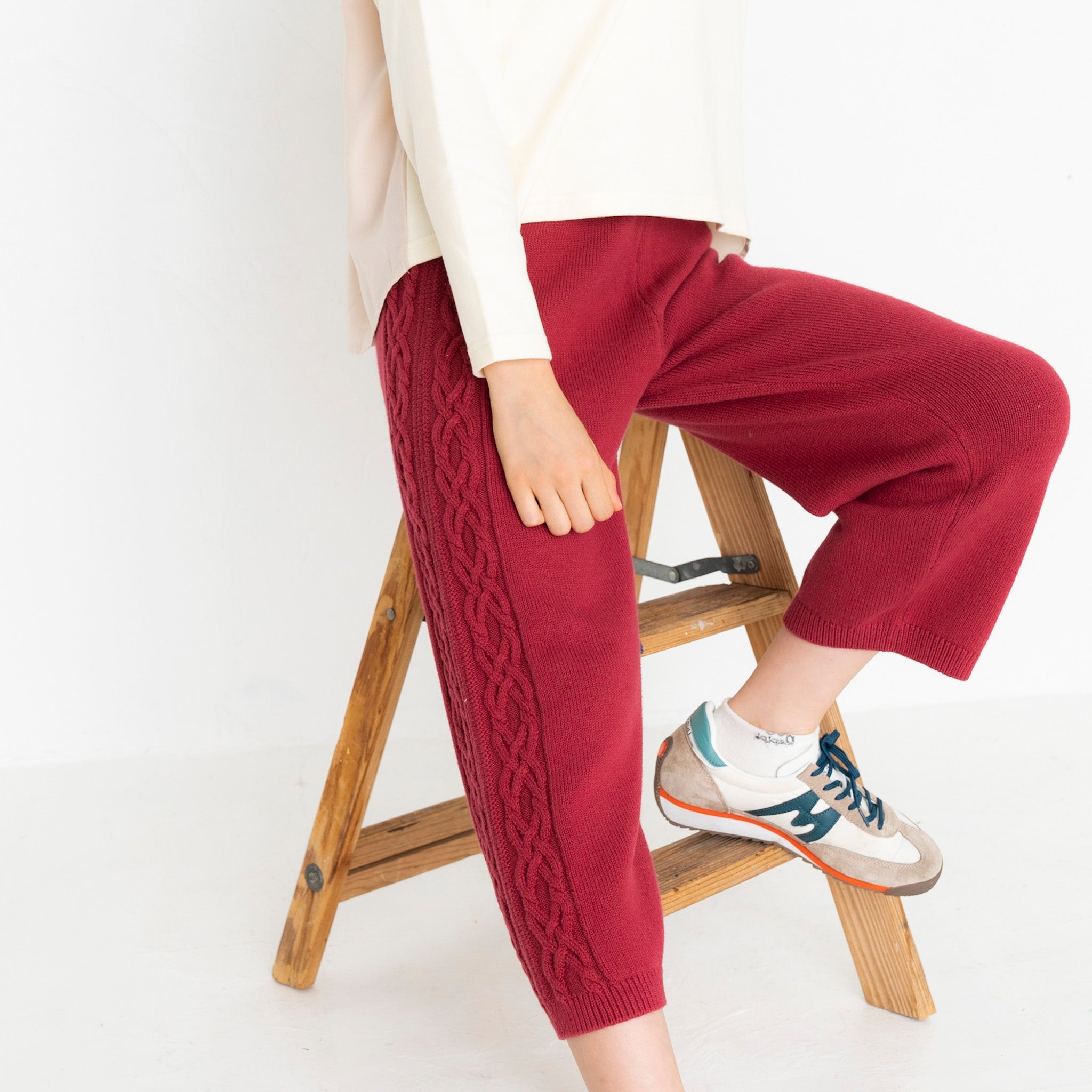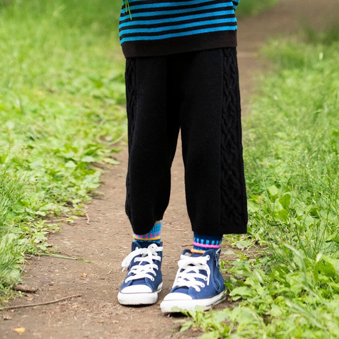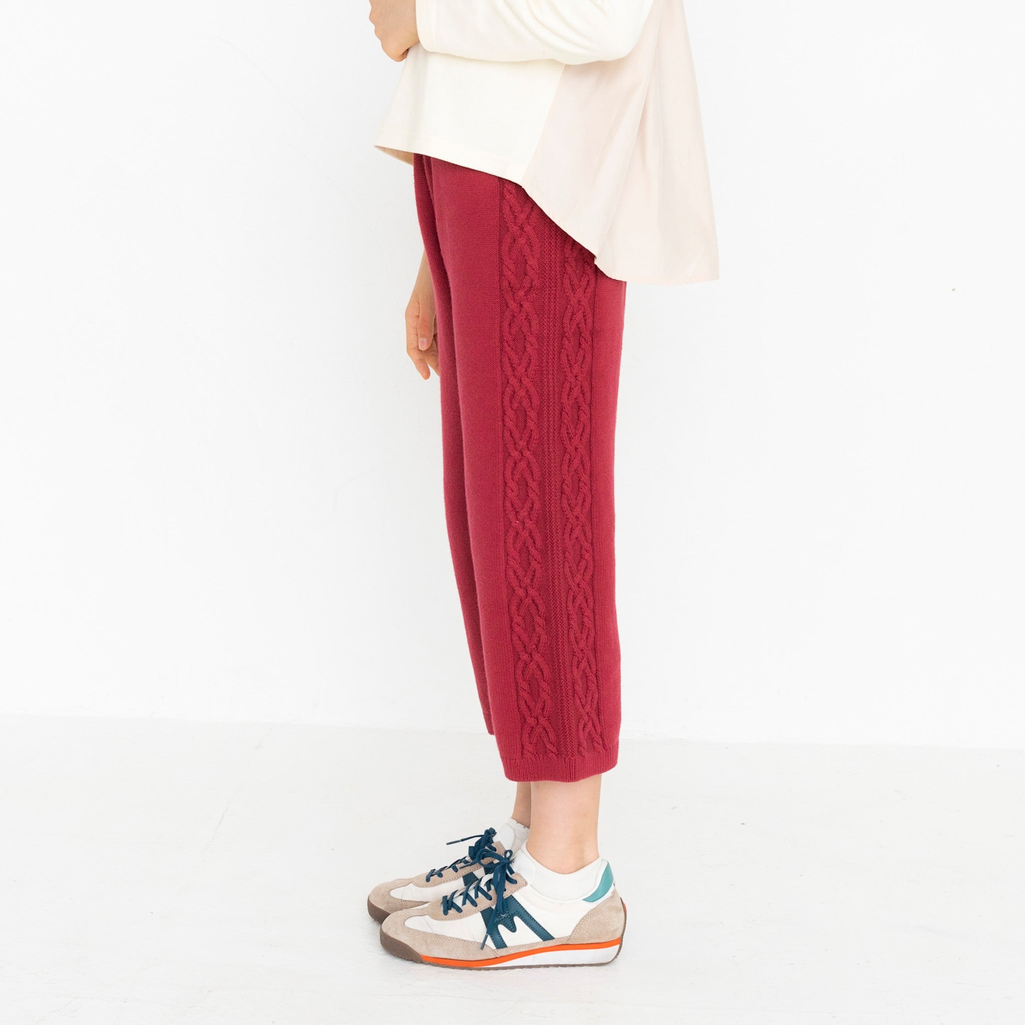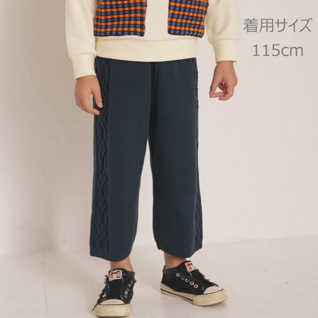 ・パンツの両サイドにはニットらしい編み柄が入っています。