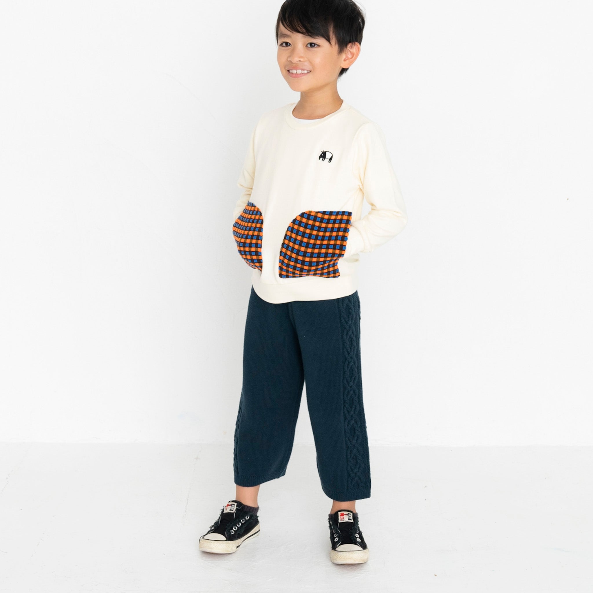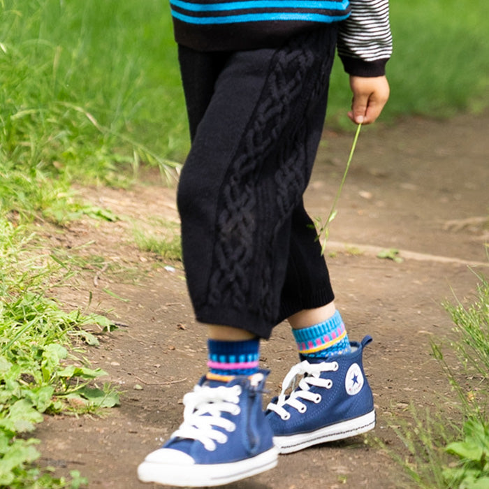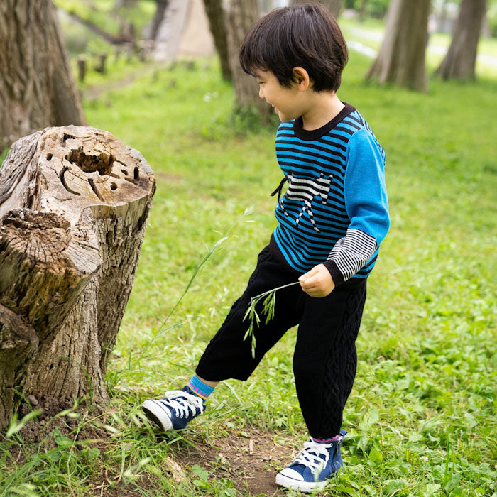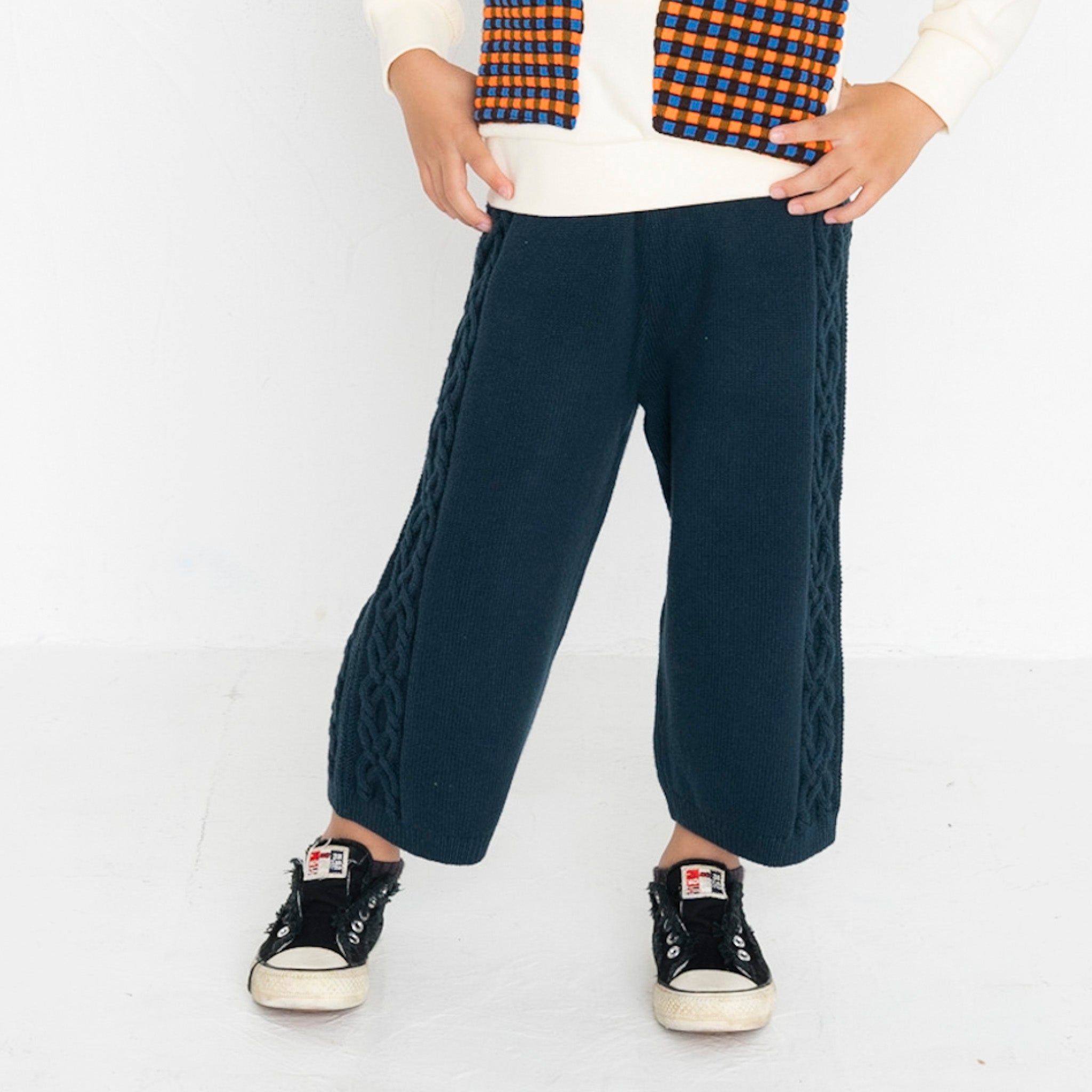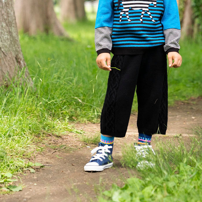 ・パンツの両サイドにはニットらしい編み柄が入っています。