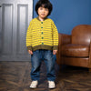 モザイクカーディガンは、ポコポコした手ざわりのデザインニットが特徴で、カラフルなイエローとベーシックブルーの2色展開。