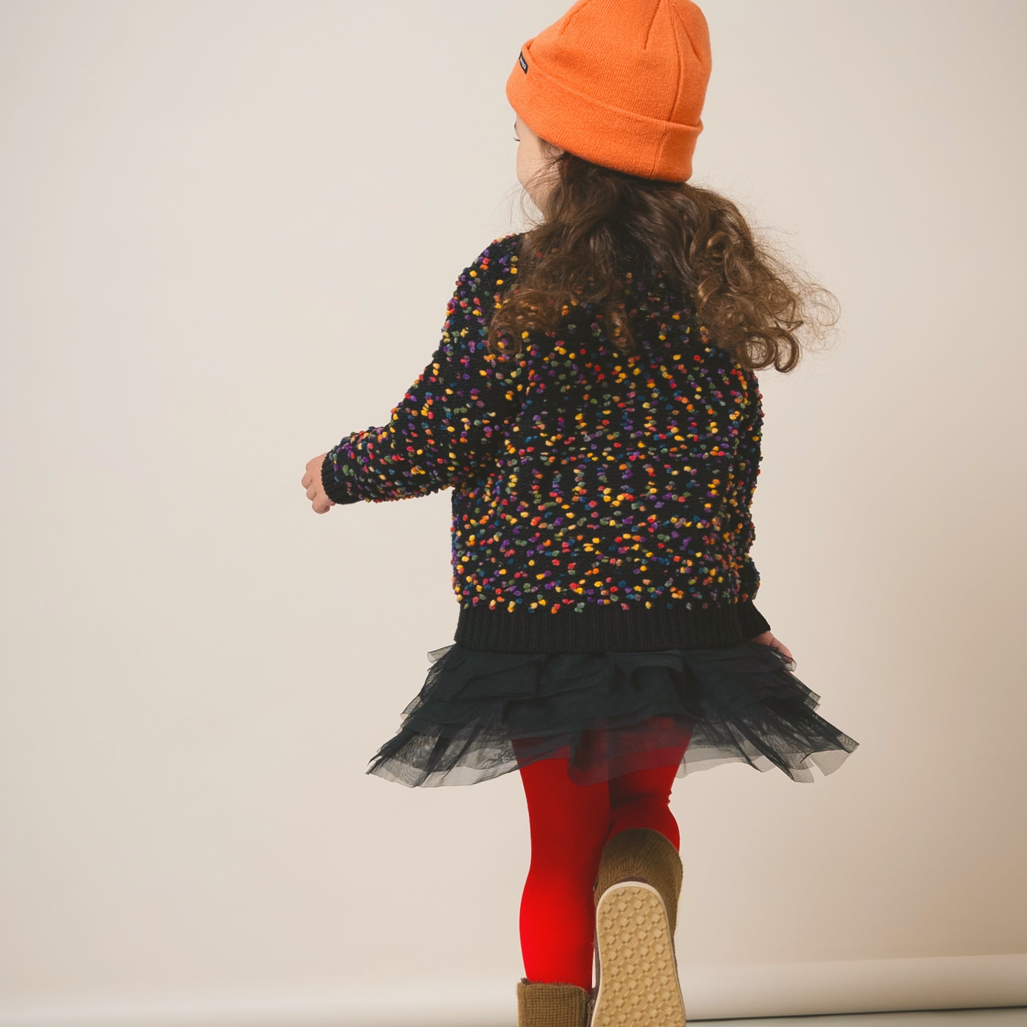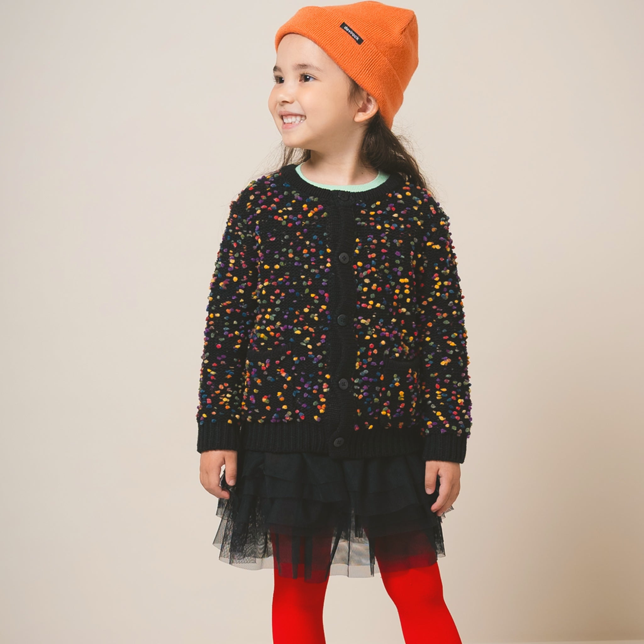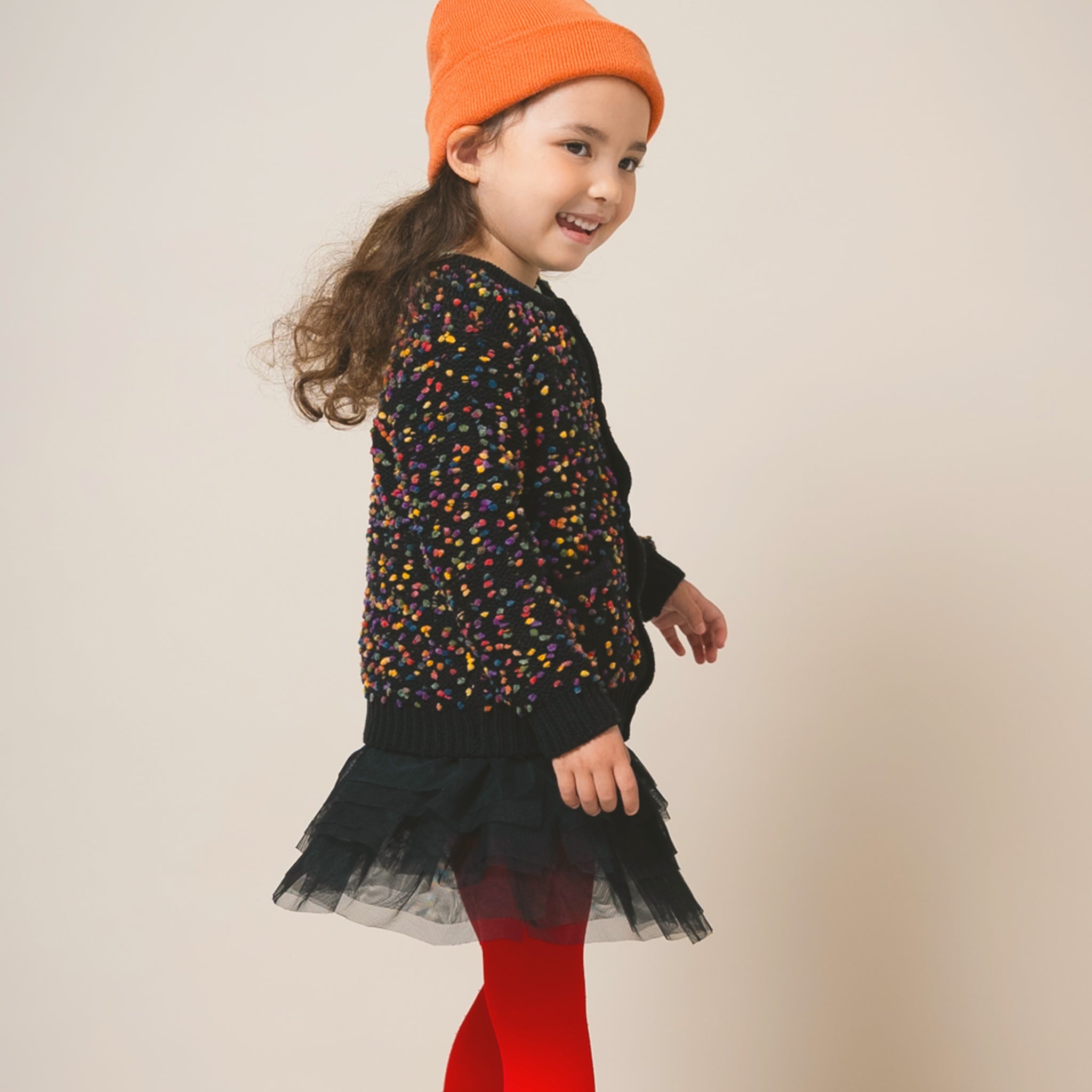 雪のようなポコポコが可愛い♪ 冬のおしゃれを楽しむぽこぽこカーディガン ふんわりとした編み地に、まるで雪が舞い降りたようなカラフルなポコポコを編みこんだニットカーディガン。 ざっくりとした編み目が可愛らしく、ブラックはカラフルなネオンカラーのポコポコでポップに、レッドは雪のようなホワイトのポコポコで冬らしく。 カジュアルにも、ワンピやシャツ合わせでちょっときちんとにも決まります。 おうちの洗濯機で丸洗いOK。デイリーに使えるのもうれしいポイント。 親子でリンクコーデも楽しめるので、ギフトや特別なお出かけにもぴったりです。 |