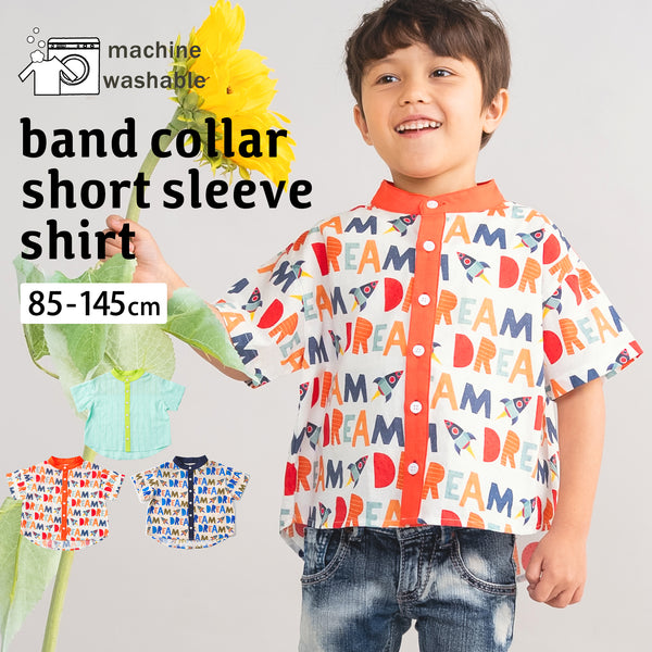 夏らしい軽やかさが魅力の、半袖バンドカラーシャツ。