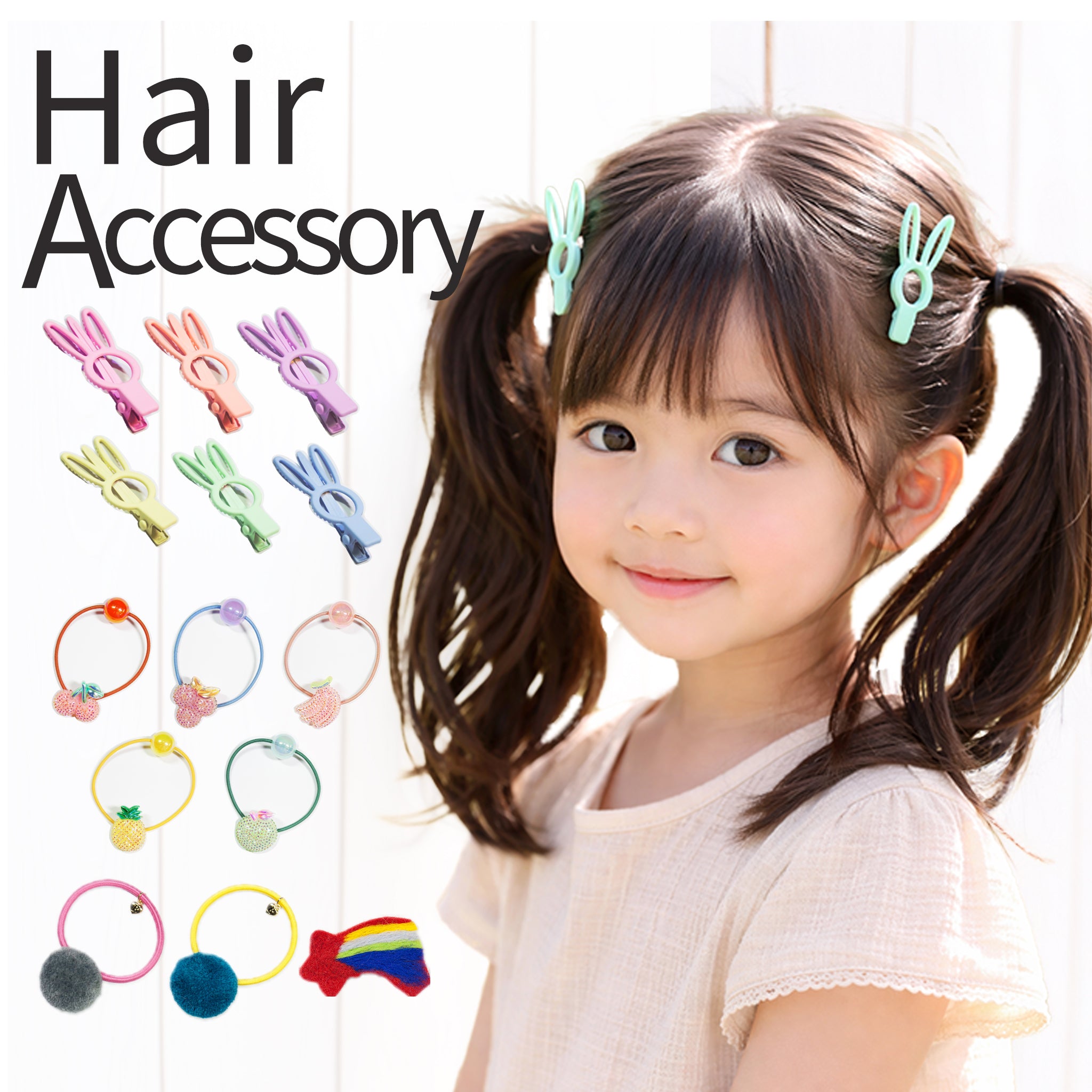 毎日のヘアアレンジがもっと楽しくなる♪キッズ用ヘアアクセサリー カラフルで可愛いモチーフが揃った、キッズ向けヘアアクセサリー。 うさぎモチーフのヘアクリップや、フルーツデザインのヘアゴムなど、お子さまが思わず笑顔になる可愛いデザインです。 小さなお子さまの髪にも使いやすいサイズ感で、さっと付けるだけで簡単に可愛いヘアスタイルが完成します。 |