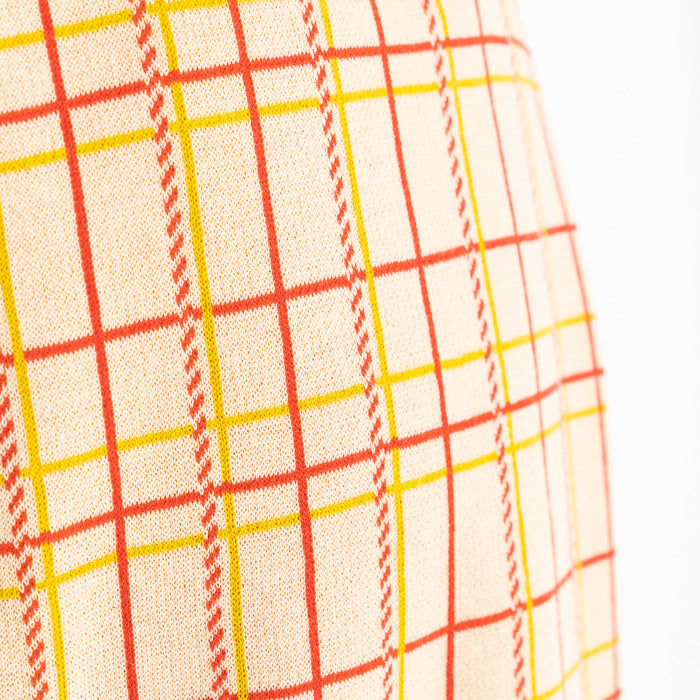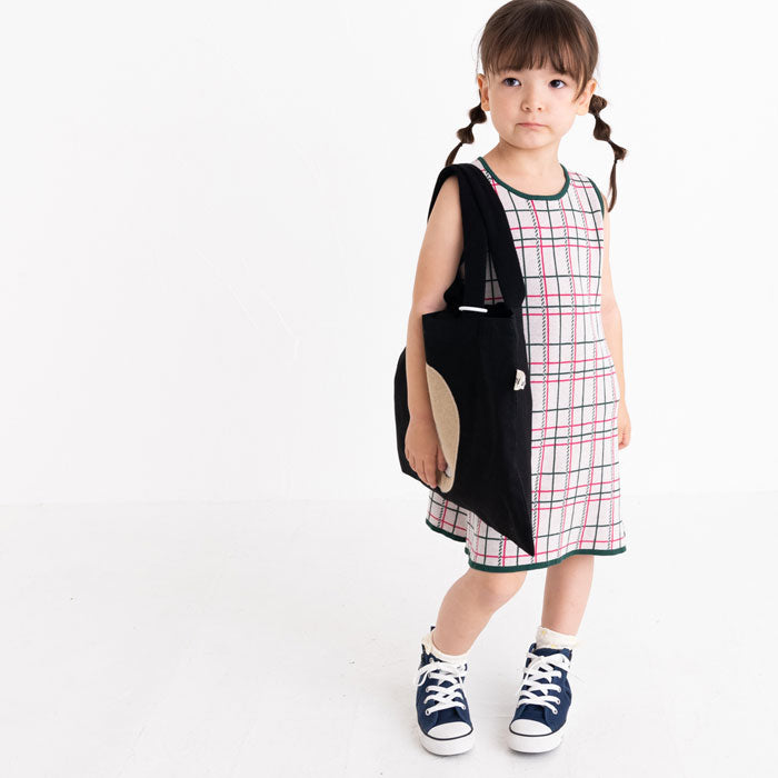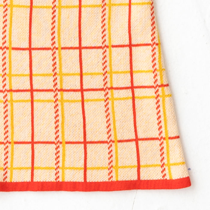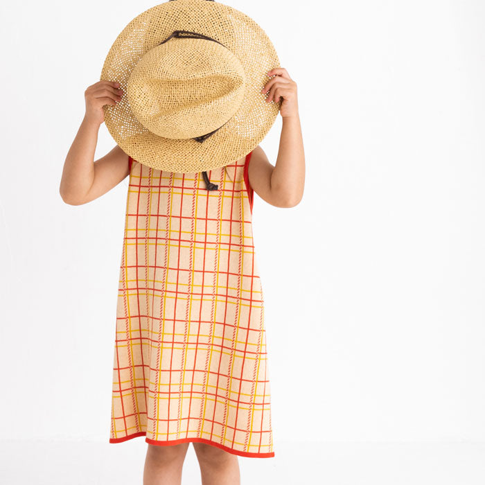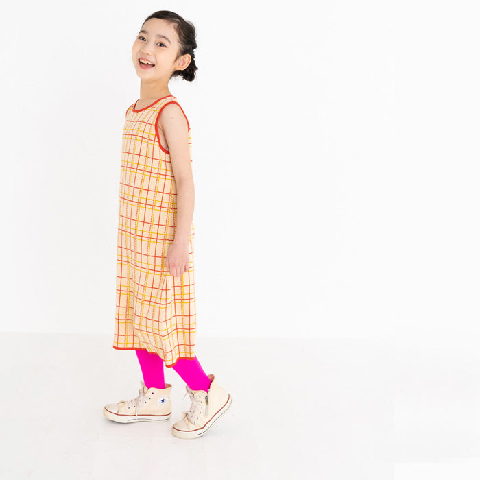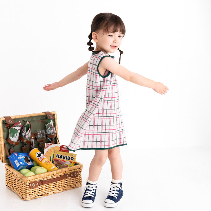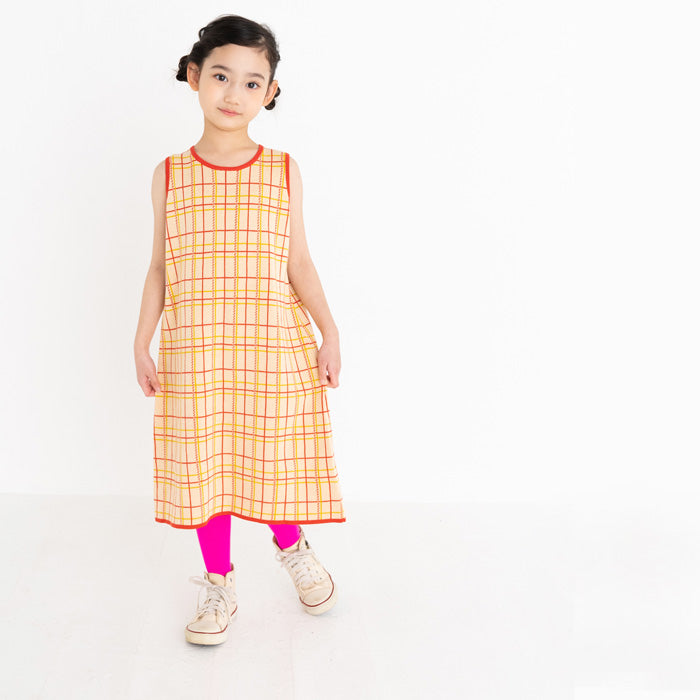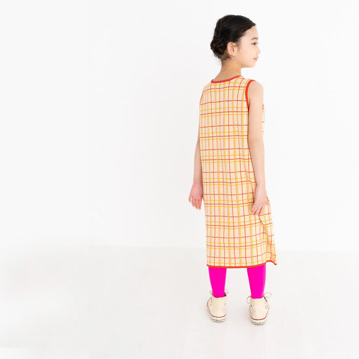 チェック柄のコットン100%のジャガードニットワンピースです。柔らかな肌ざわりで夏にも着やすく、一枚できても透けにくく、ほど良い厚みです。