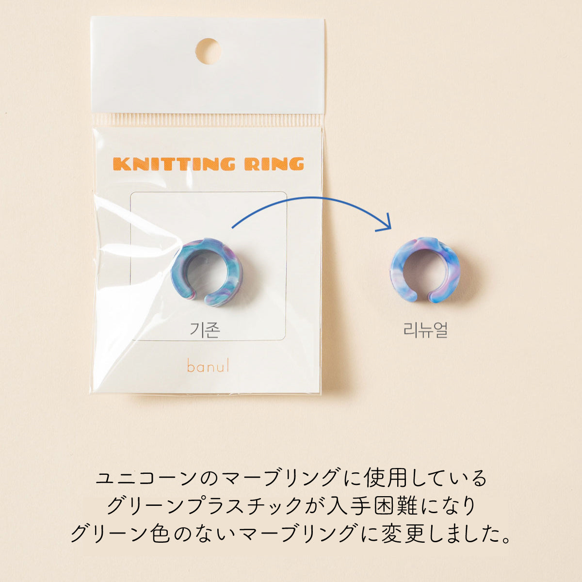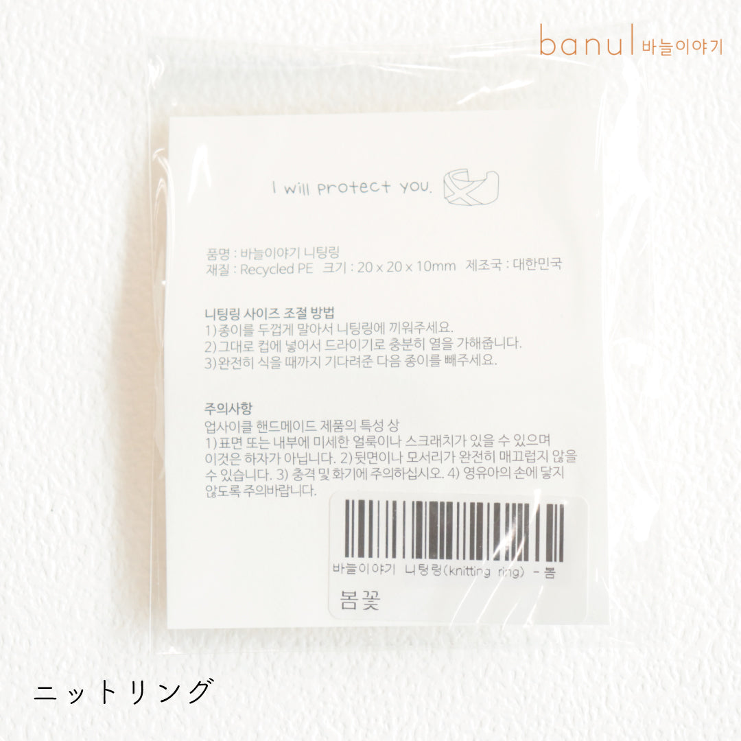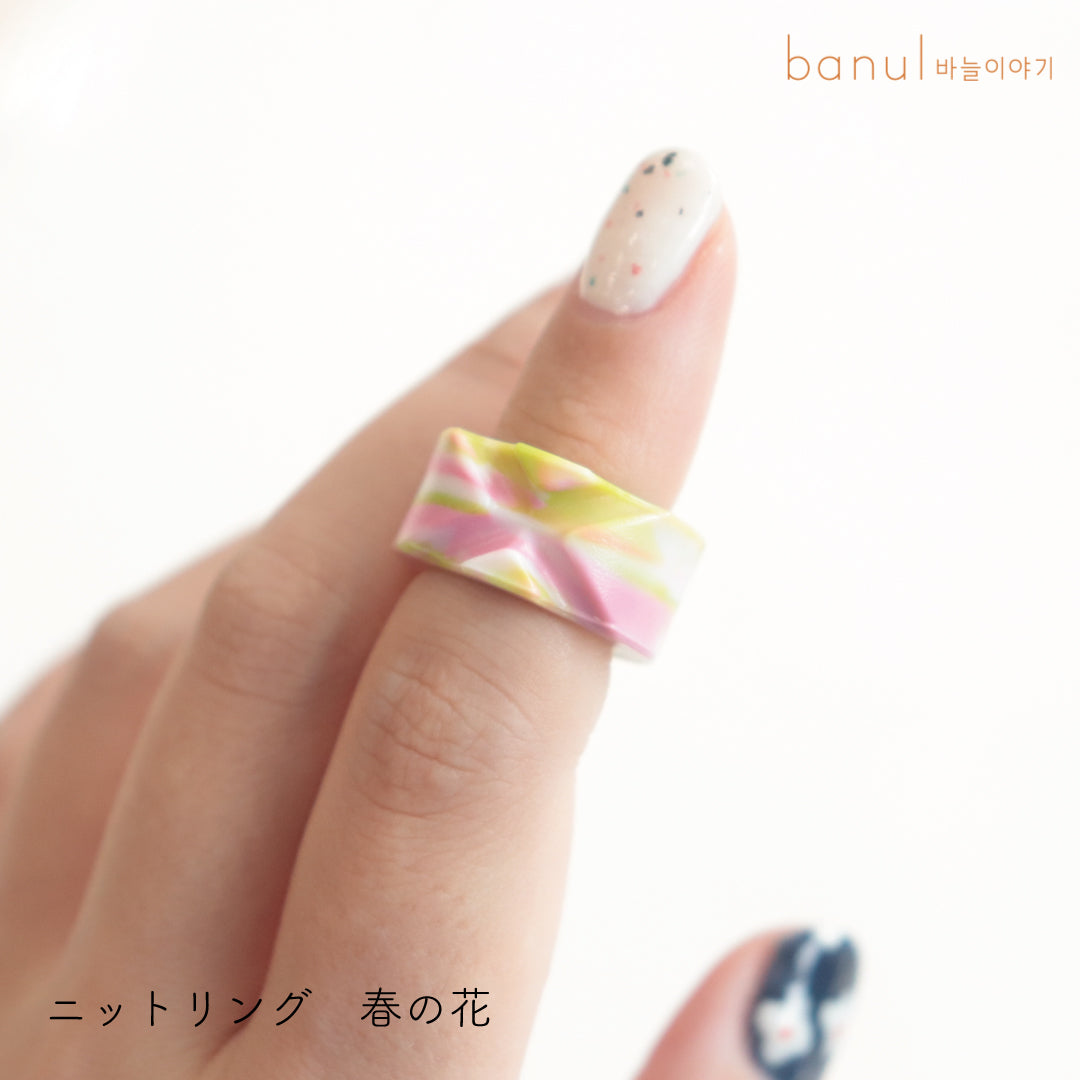 バヌルストーリ―のオリジナルグッズ「ニットリング」は持続可能性のためにリサイクルプラスチックをアップサイクルして作られたニットリングです。リサイクルプラスチックならではの自然なマーブルパターンがかわいいニットリングをsawada ittoでお取り扱いすることになりました。
