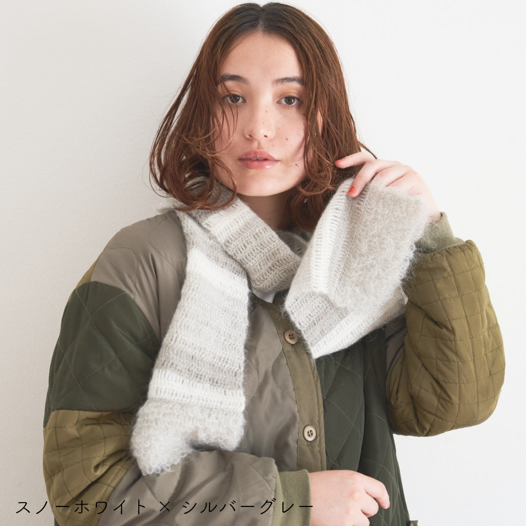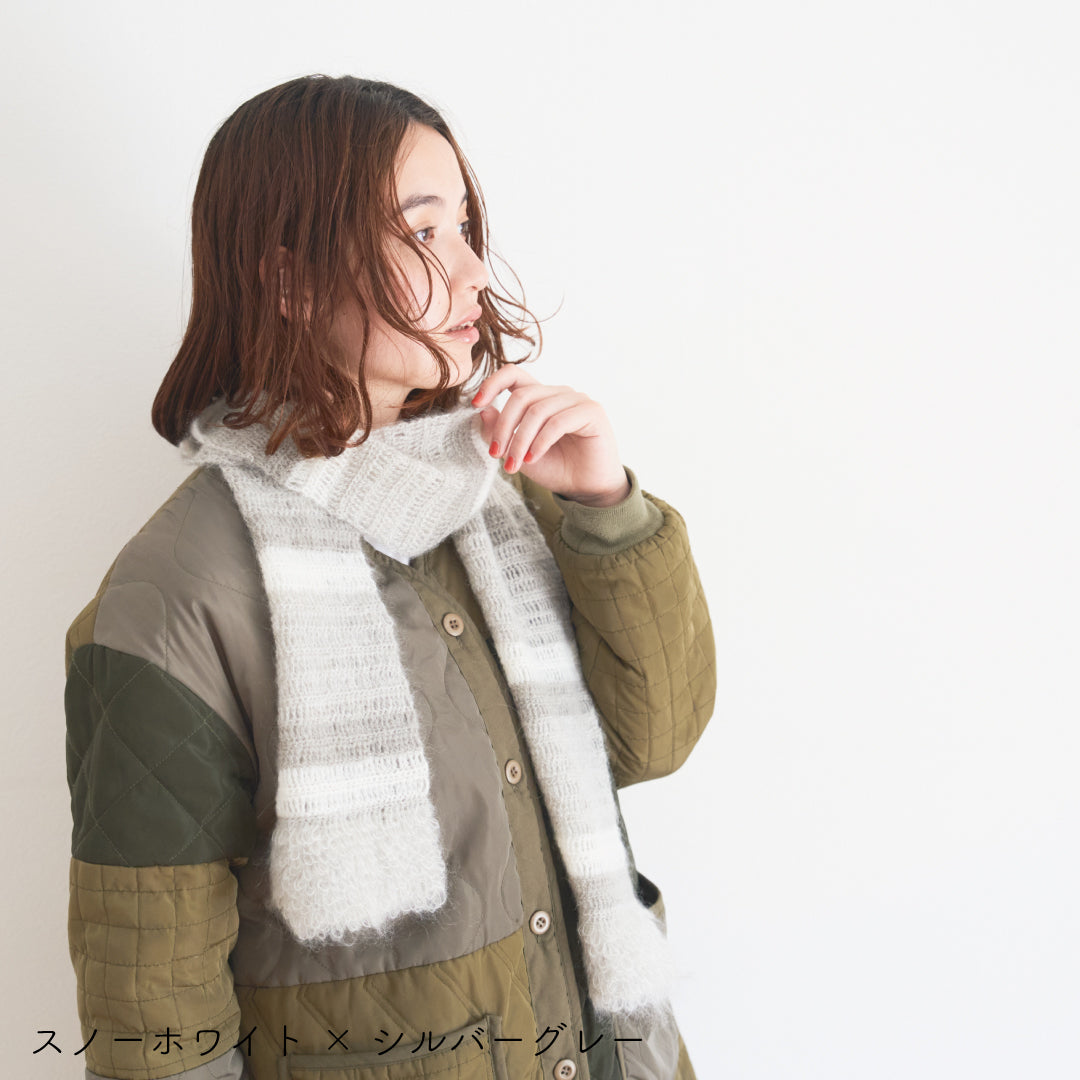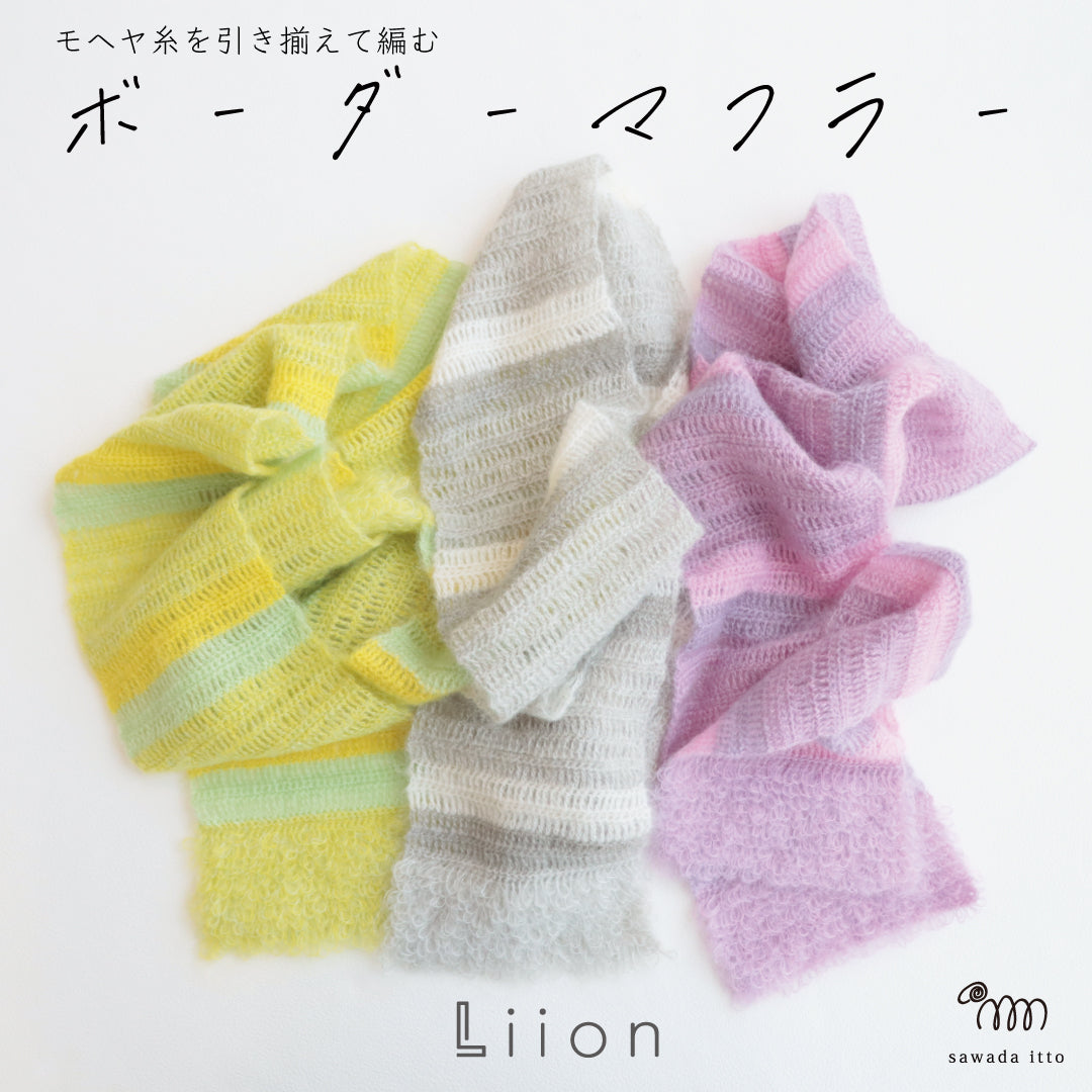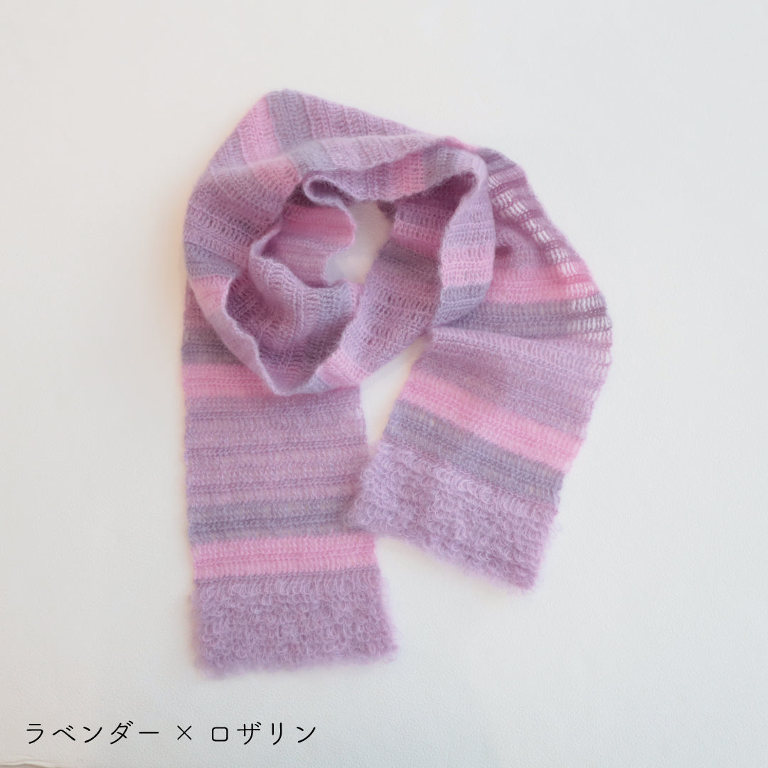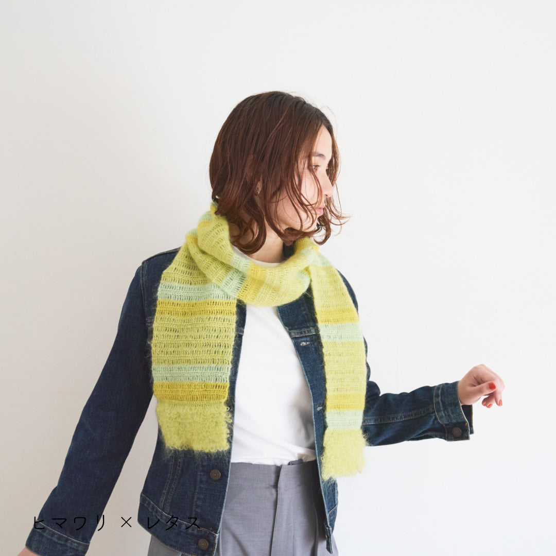 繊細で色鮮やかな展開カラーが魅力のモヘヤ毛糸「Liion」で編むマフラーです。