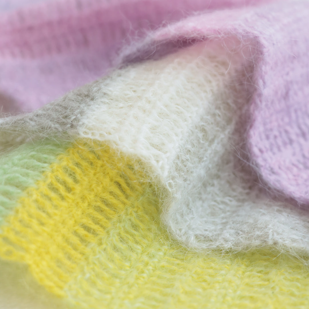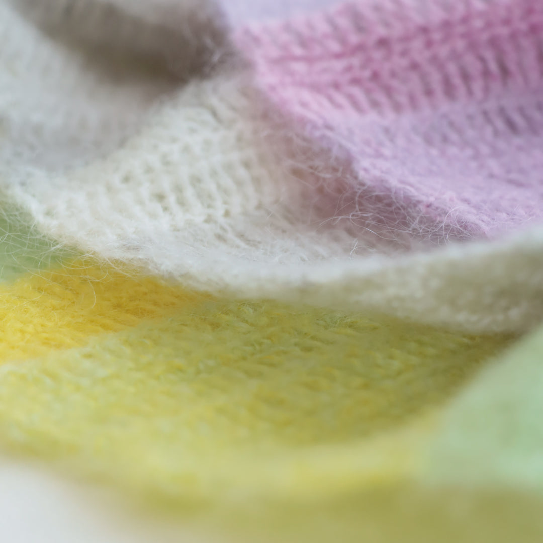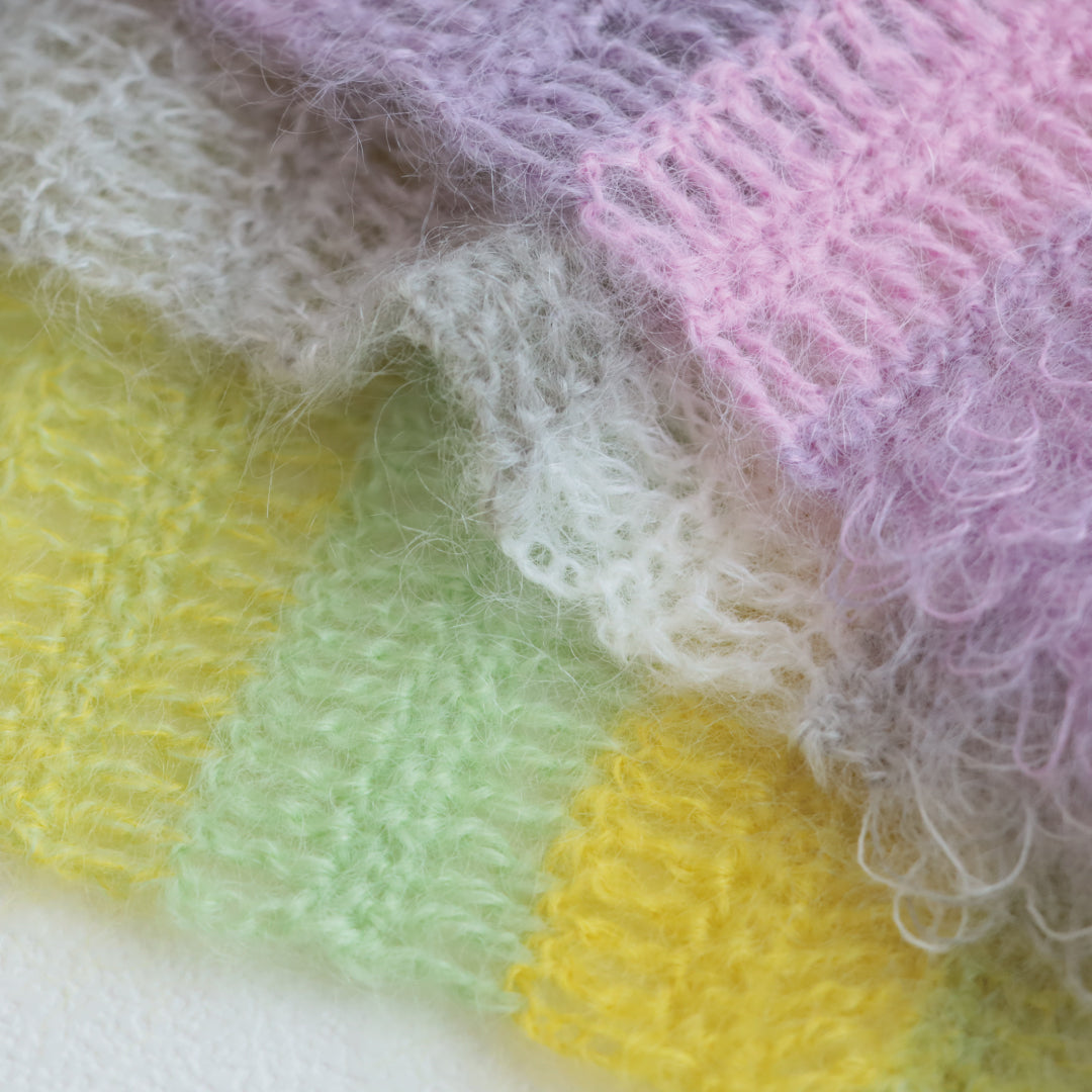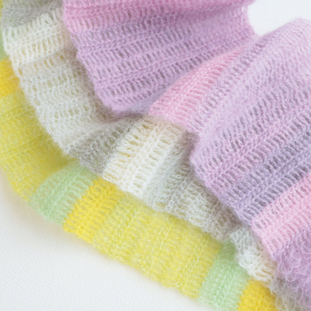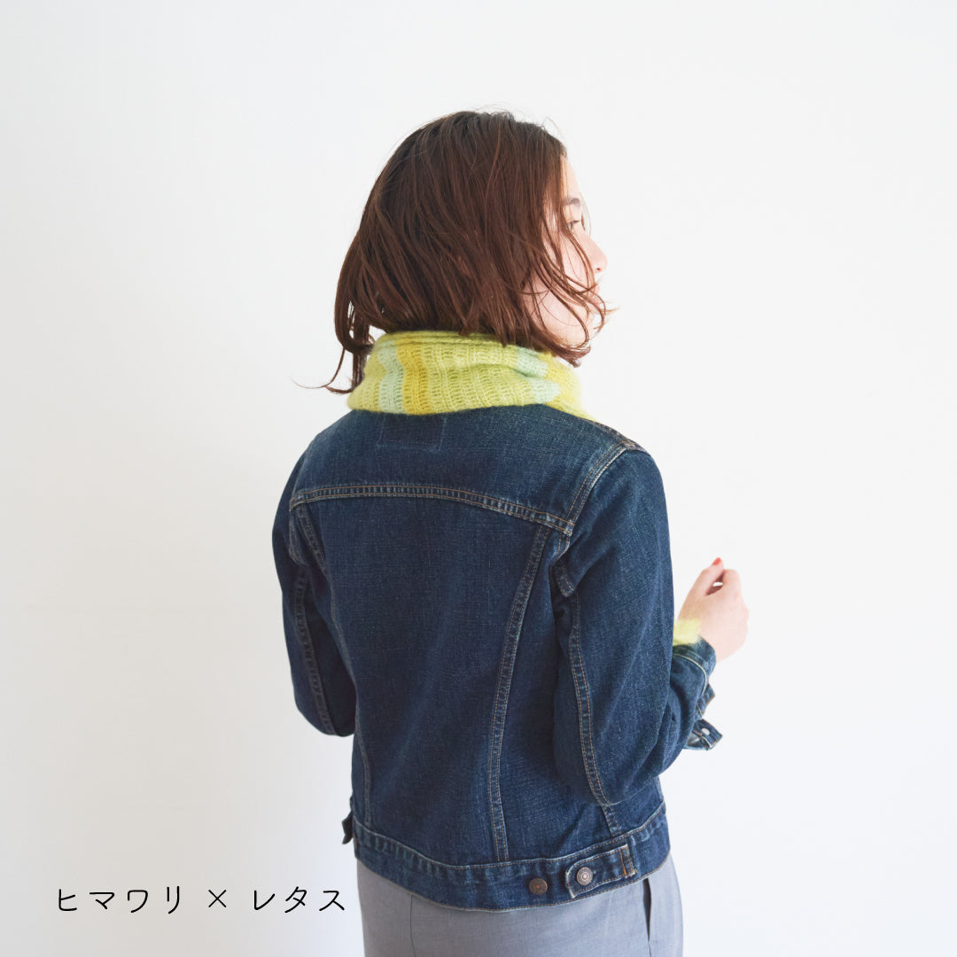 繊細で色鮮やかな展開カラーが魅力のモヘヤ毛糸「Liion」で編むマフラーです。