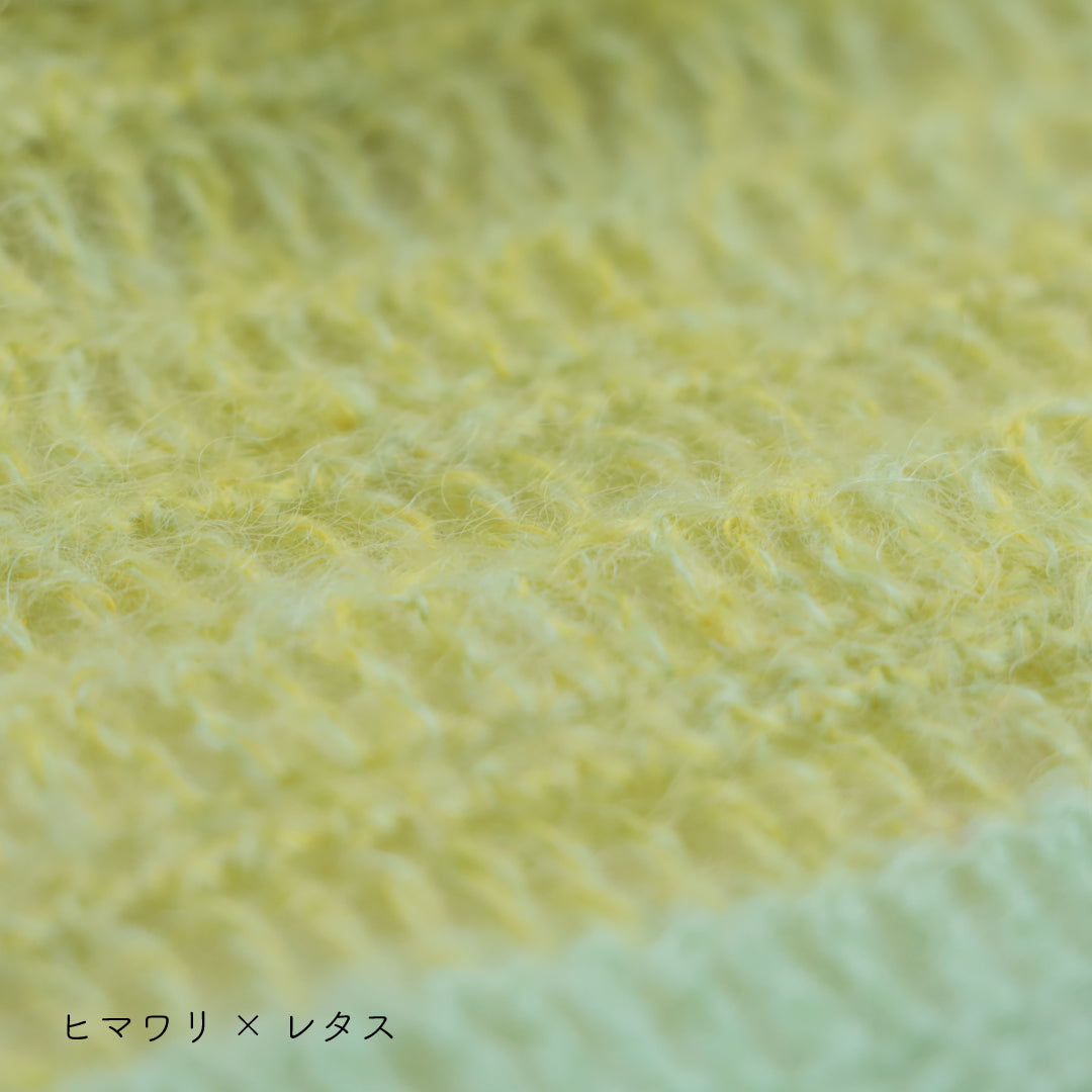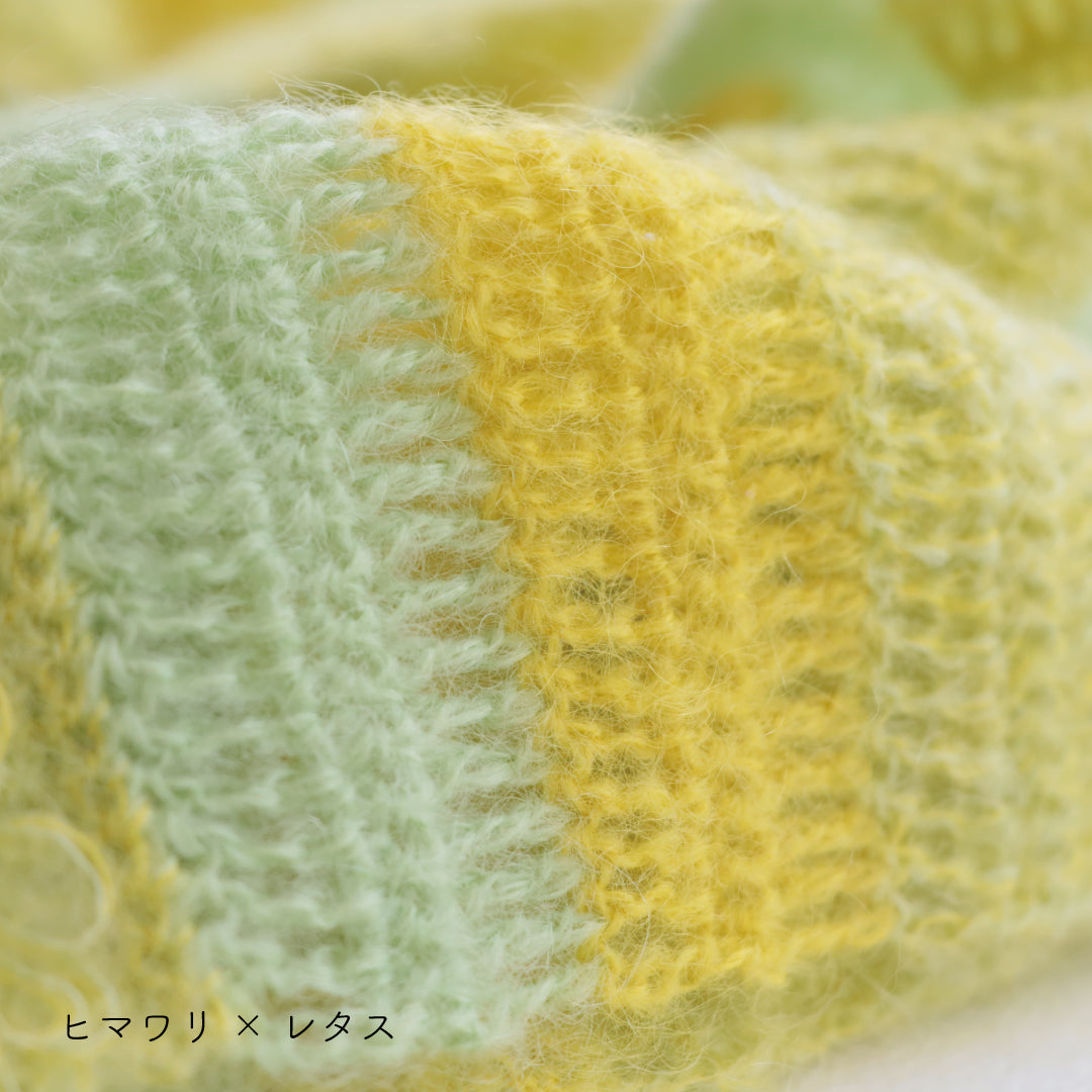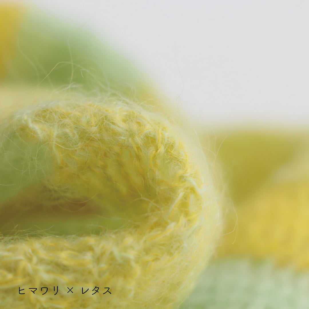 ヒマワリやキャロットなど単色だと色の濃いカラーにスノーホワイトやシルバーグレーを合わせれば程よく落ち着いた印象になり、同系色で作れば柔らかなグラデーションにも。薄手でコンパクトに収まるのでお出かけ先での持ち運びにも便利。