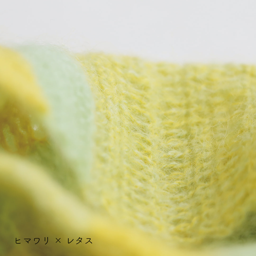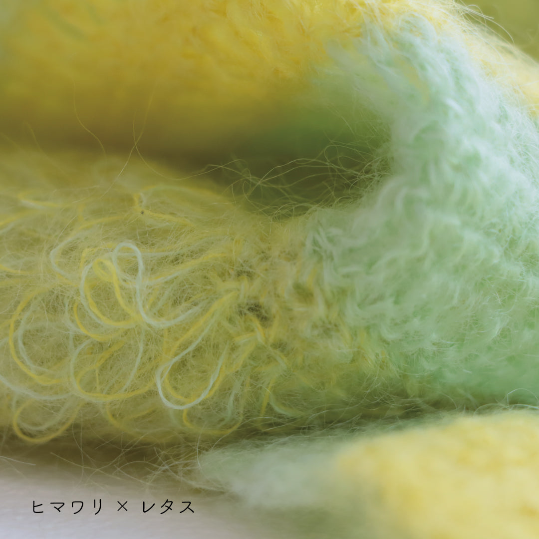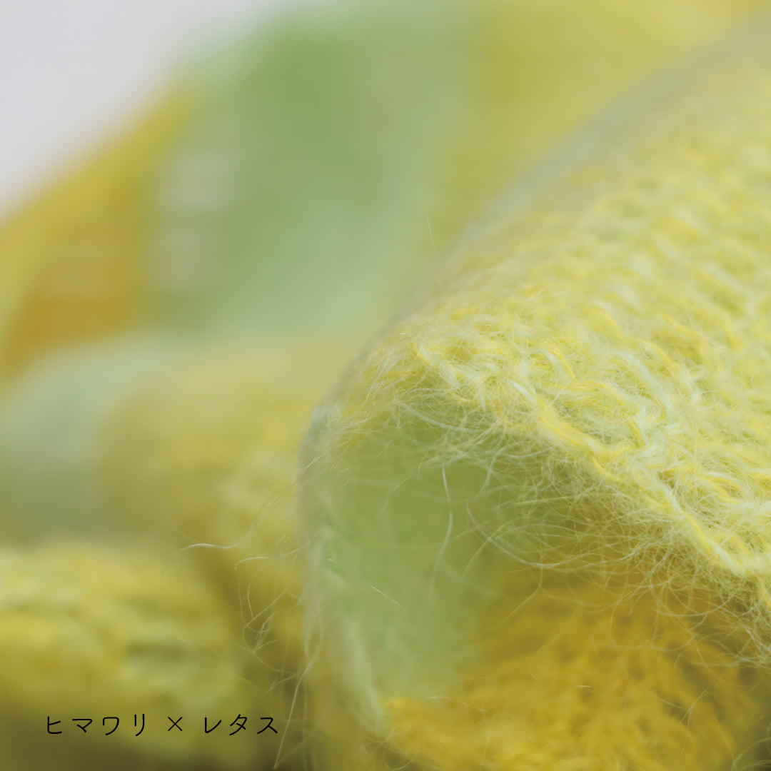 ヒマワリやキャロットなど単色だと色の濃いカラーにスノーホワイトやシルバーグレーを合わせれば程よく落ち着いた印象になり、同系色で作れば柔らかなグラデーションにも。薄手でコンパクトに収まるのでお出かけ先での持ち運びにも便利。