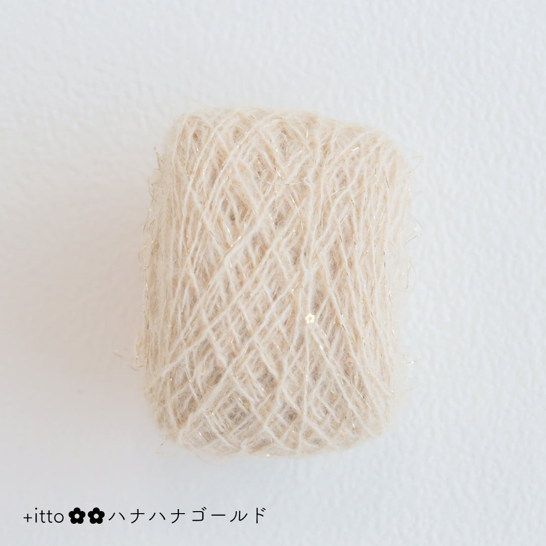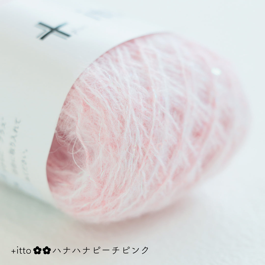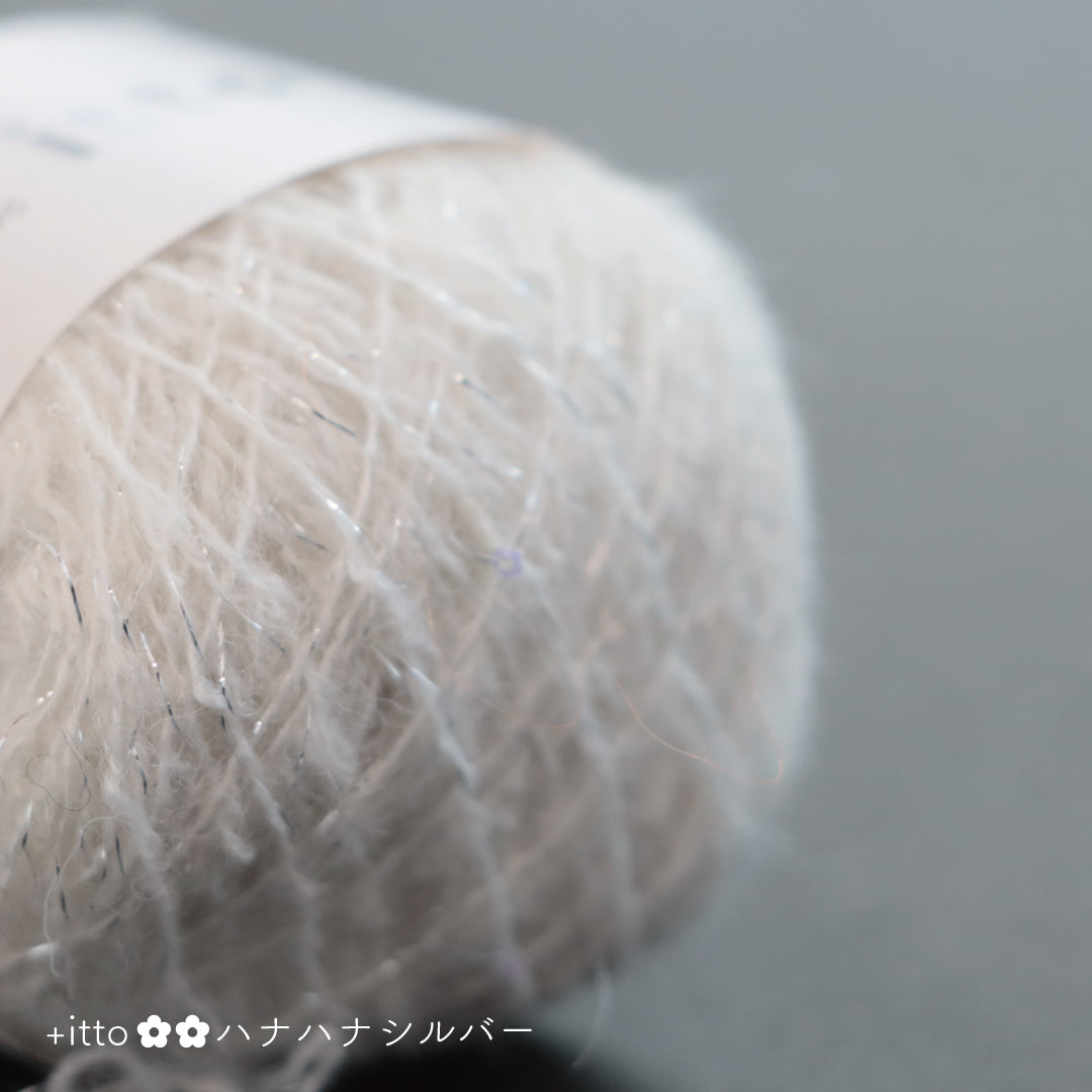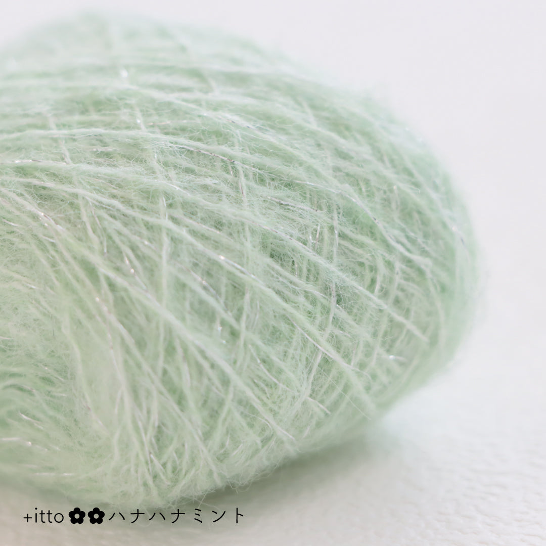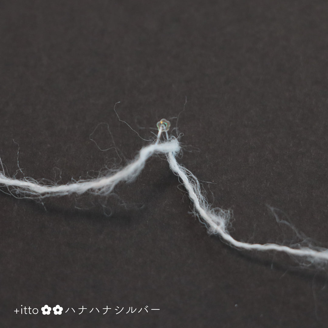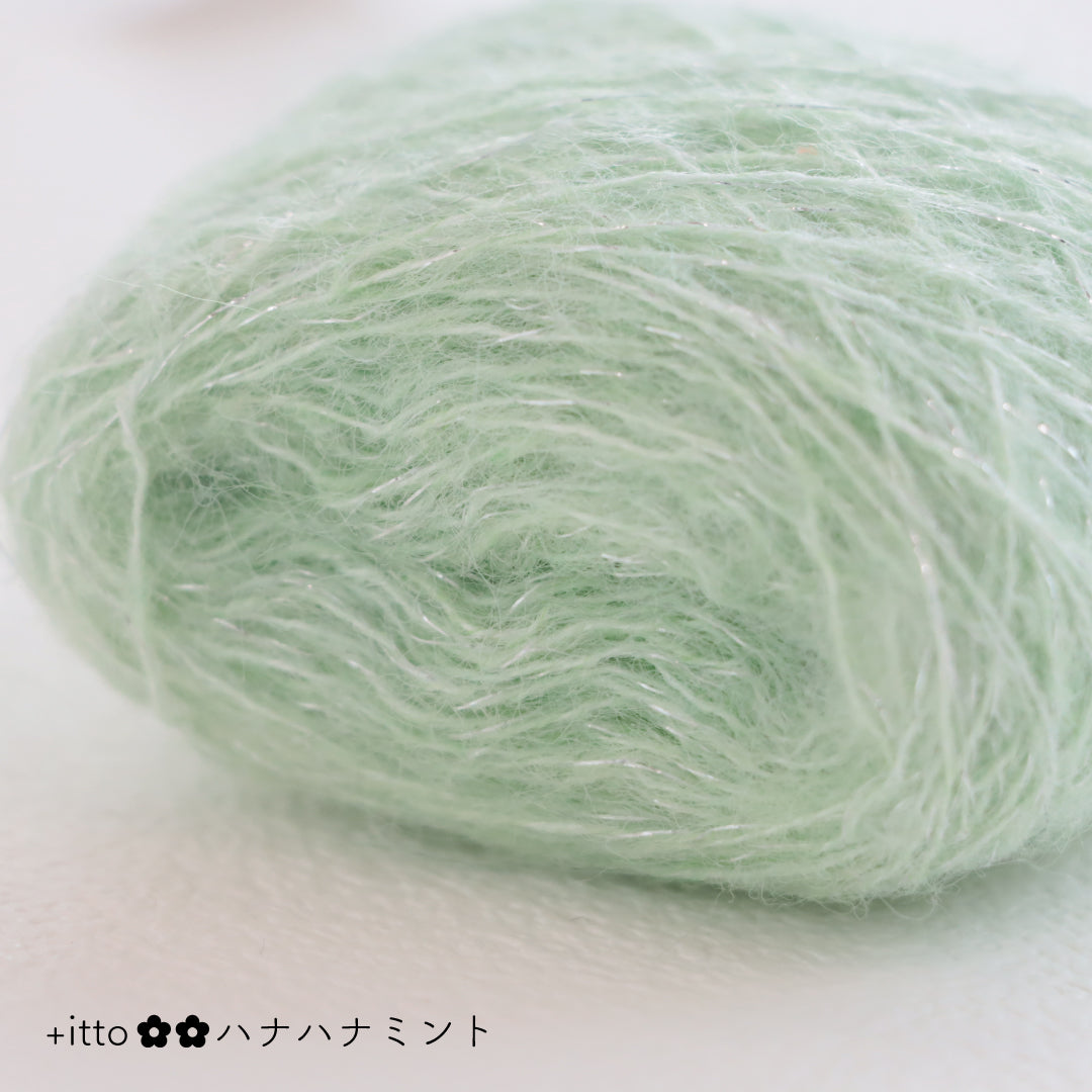絵画のような淡く繊細なグラデーションとラメの糸が撚糸された糸に、点々と小さなお花のスパンコールが輝く「+ittoハナハナ」