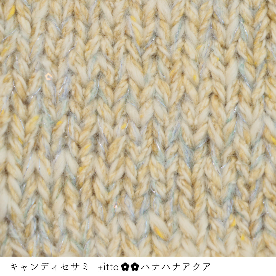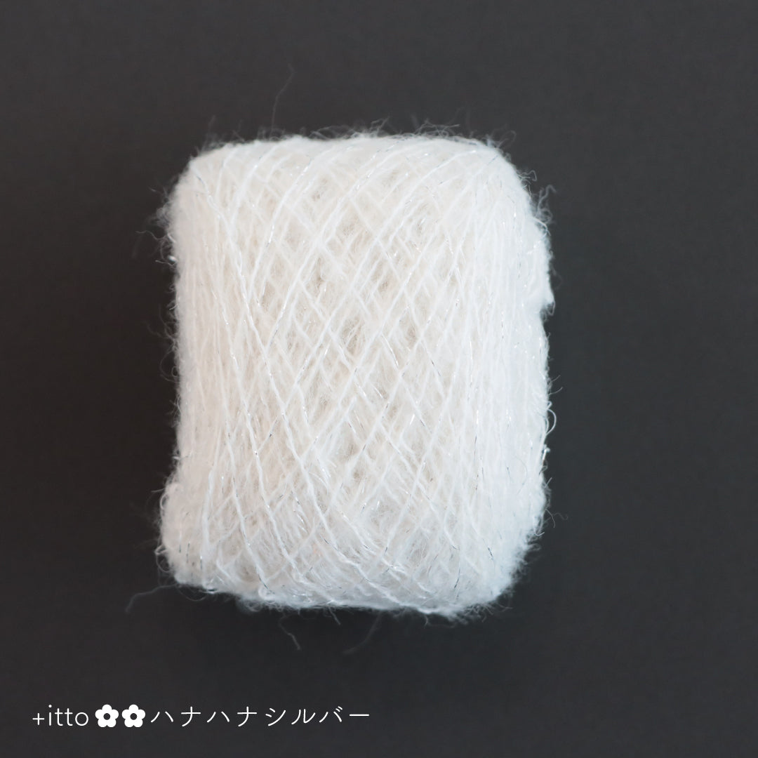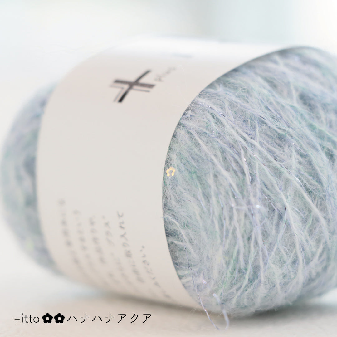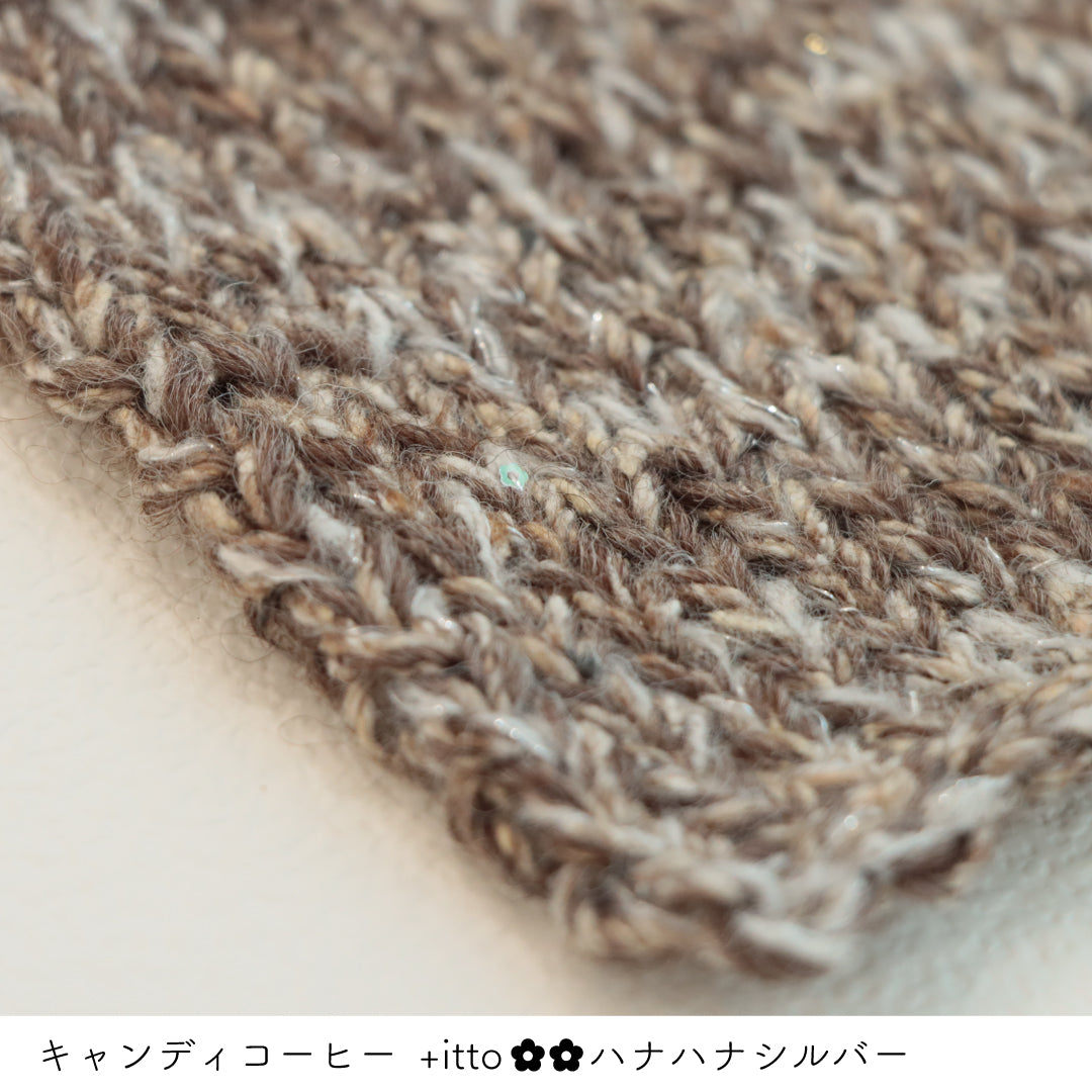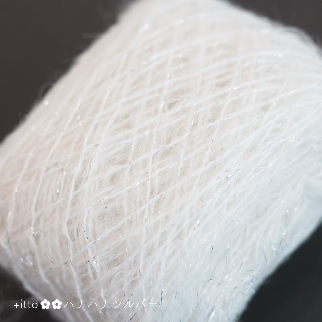 絵画のような淡く繊細なグラデーションとラメの糸が撚糸された糸に、点々と小さなお花のスパンコールが輝く「+ittoハナハナ」