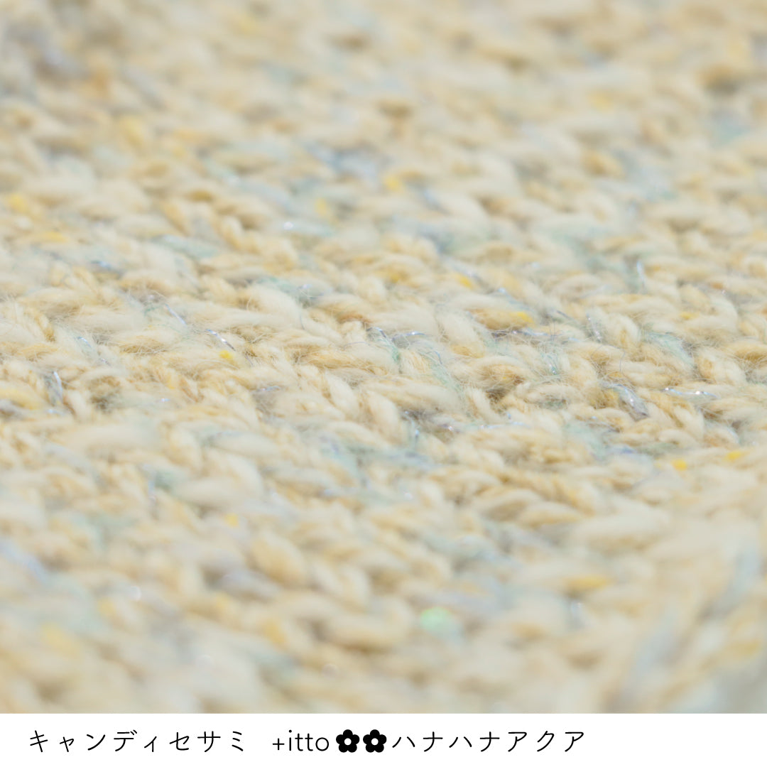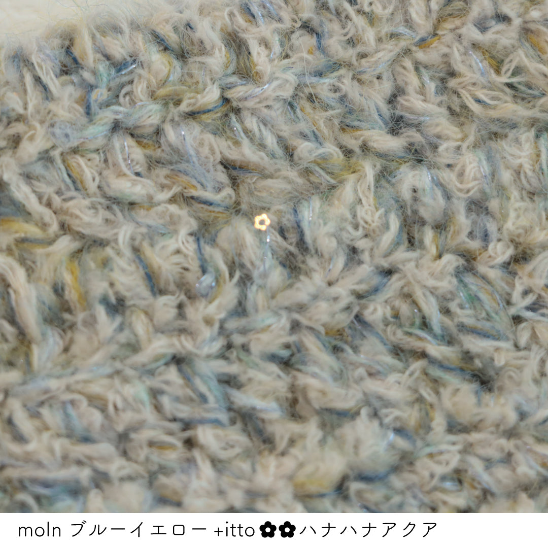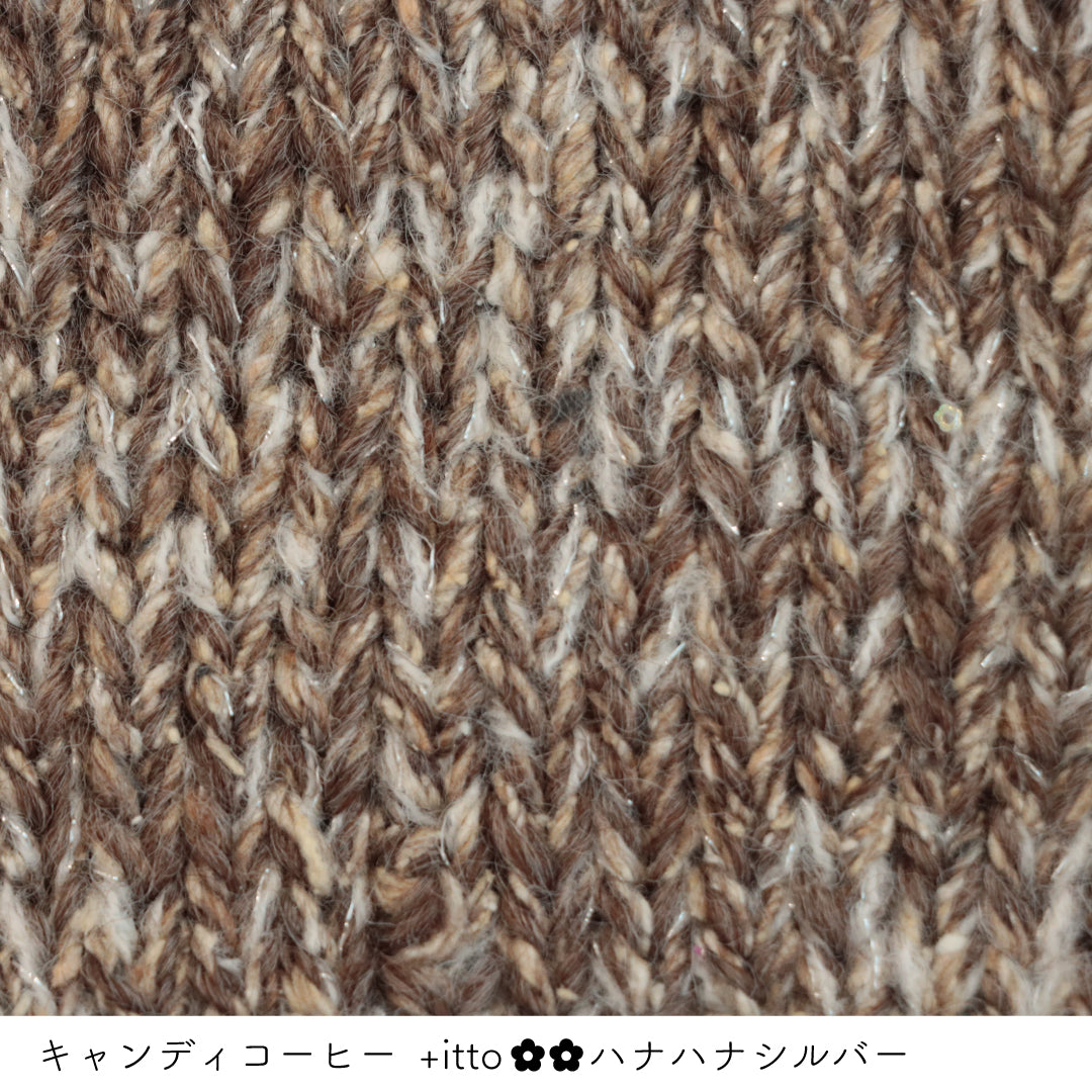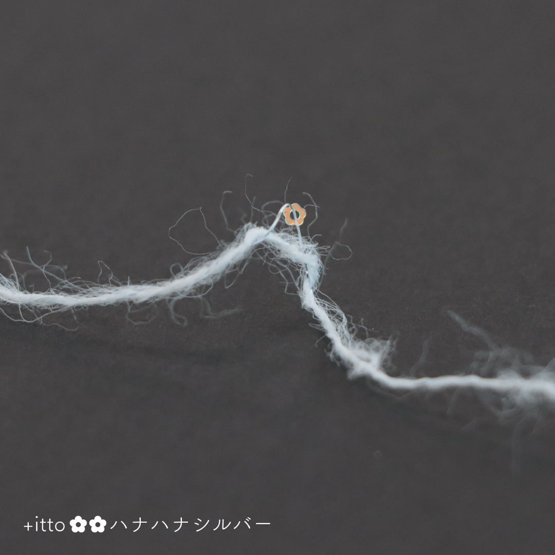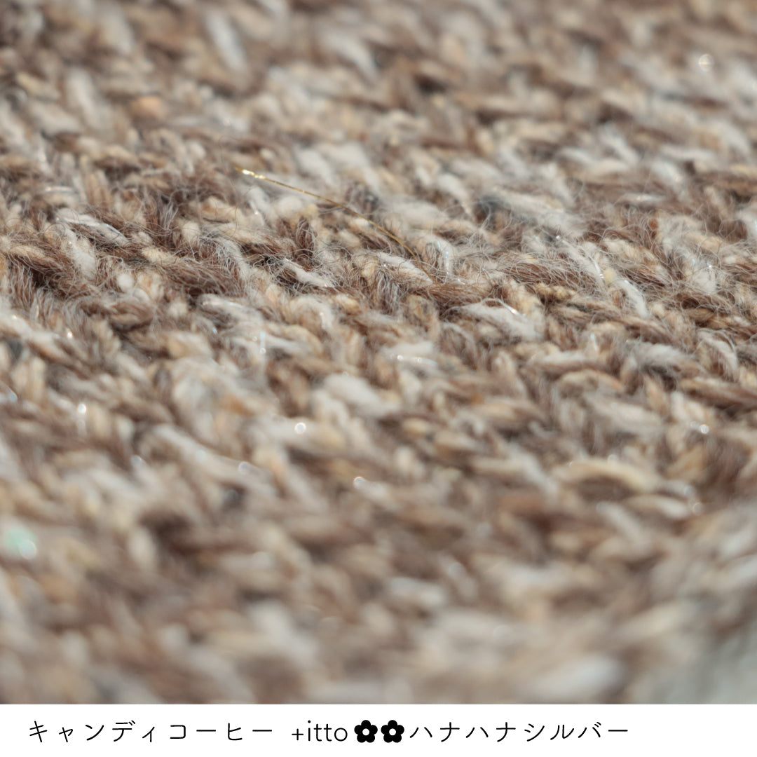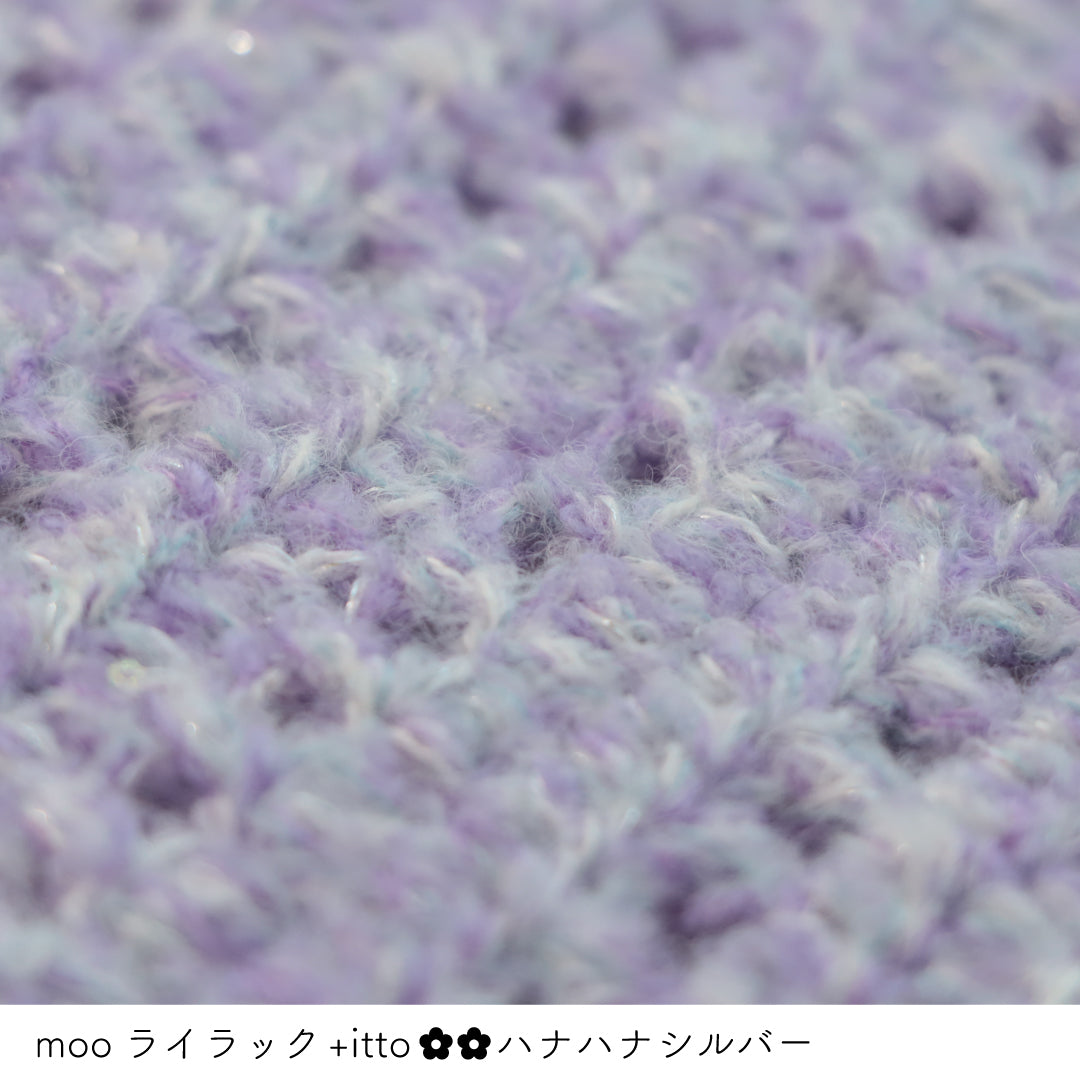 絵画のような淡く繊細なグラデーションとラメの糸が撚糸された糸に、点々と小さなお花のスパンコールが輝く「+ittoハナハナ」