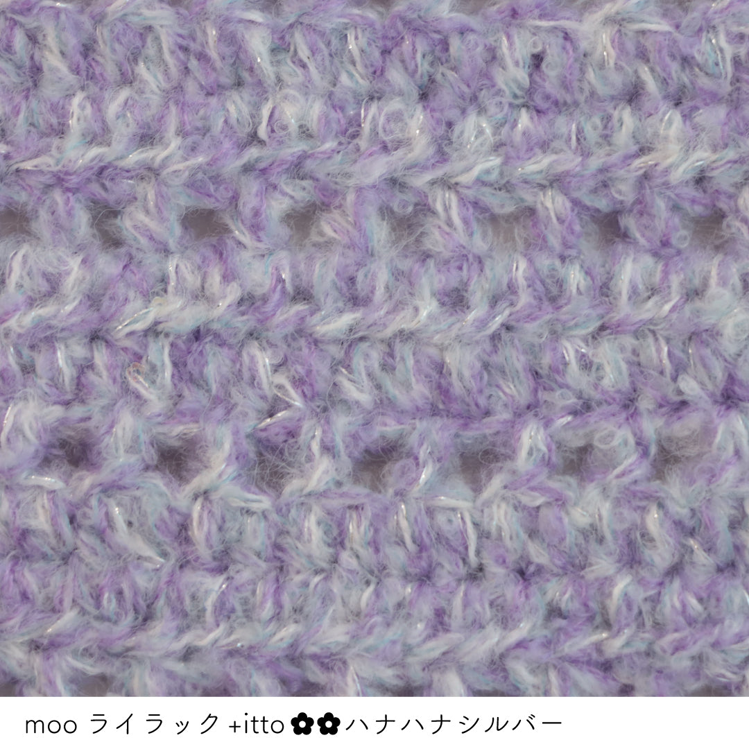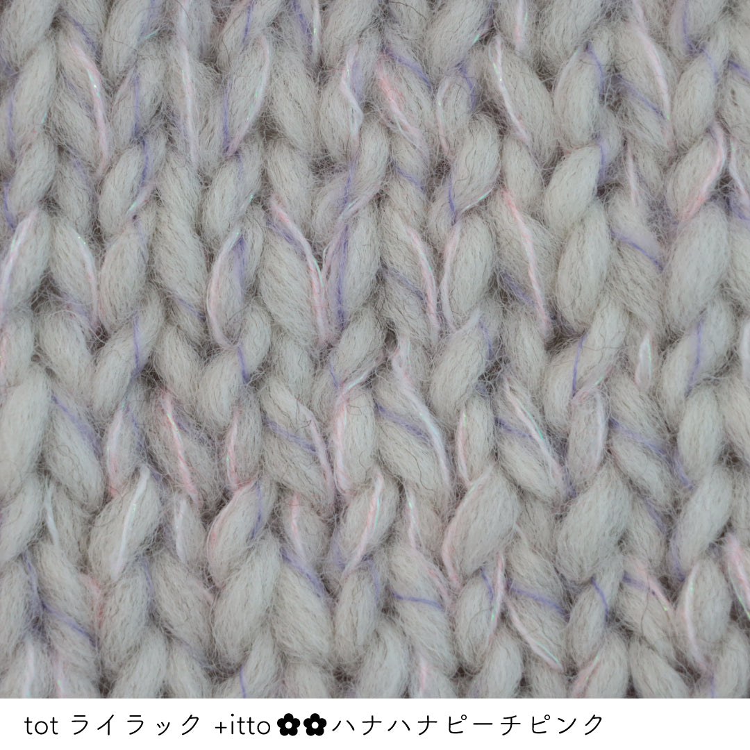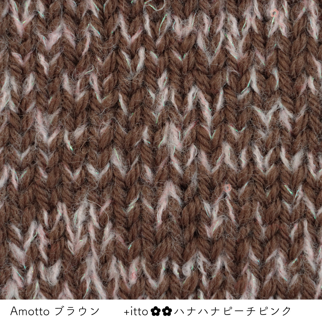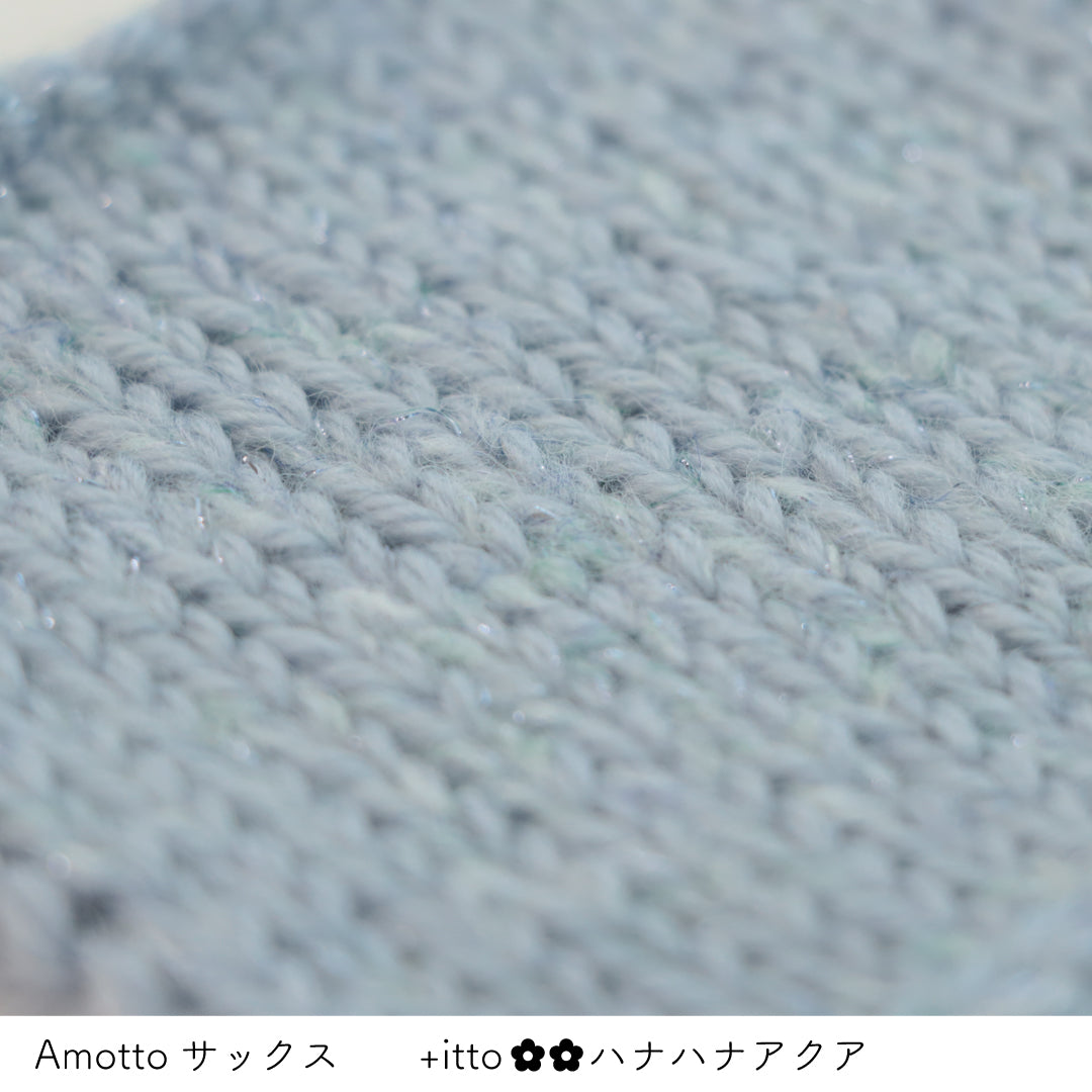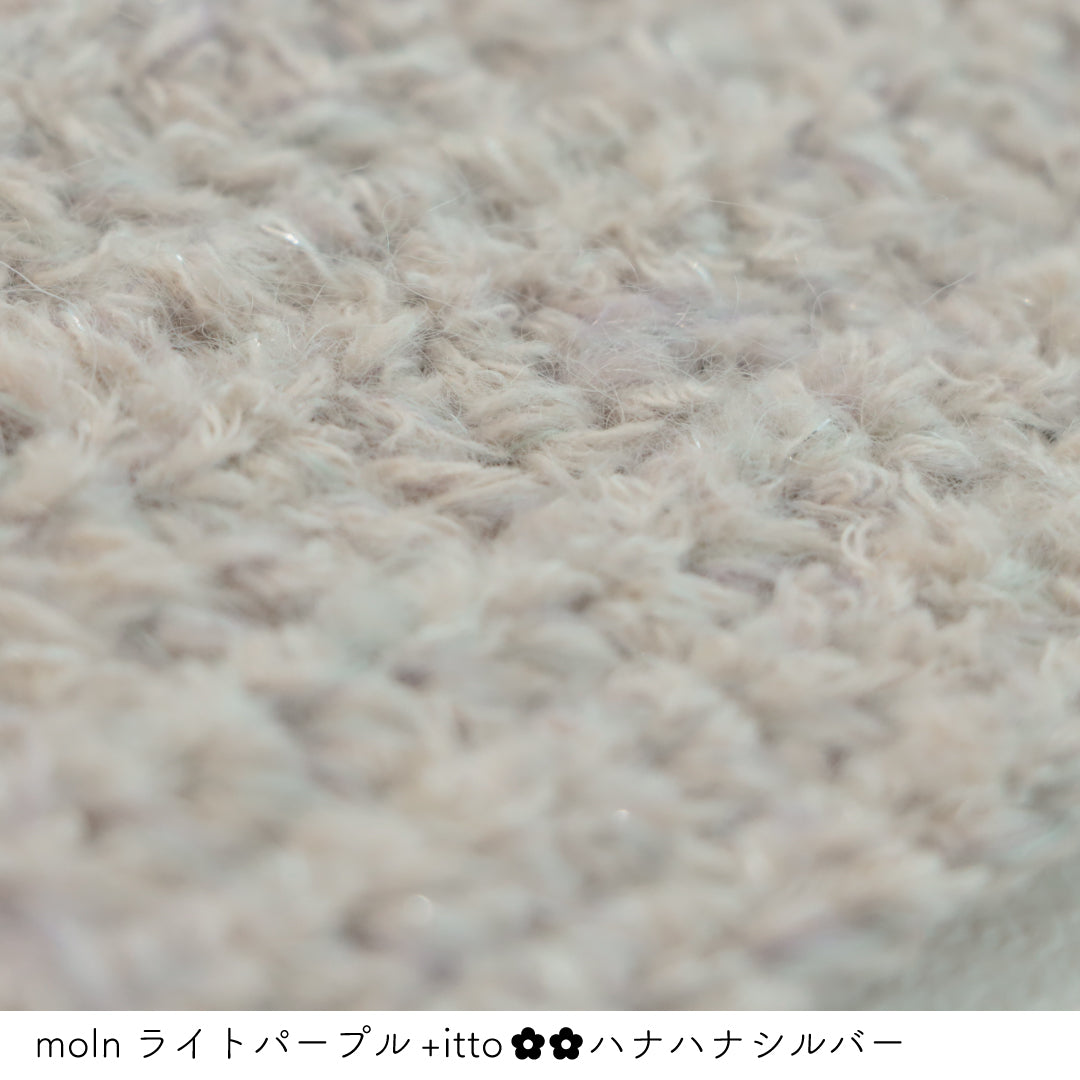 絵画のような淡く繊細なグラデーションとラメの糸が撚糸された糸に、点々と小さなお花のスパンコールが輝く「+ittoハナハナ」