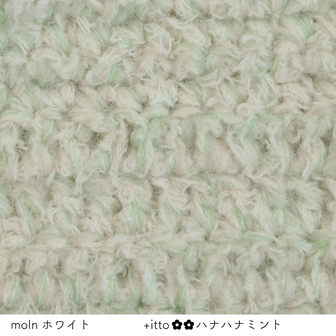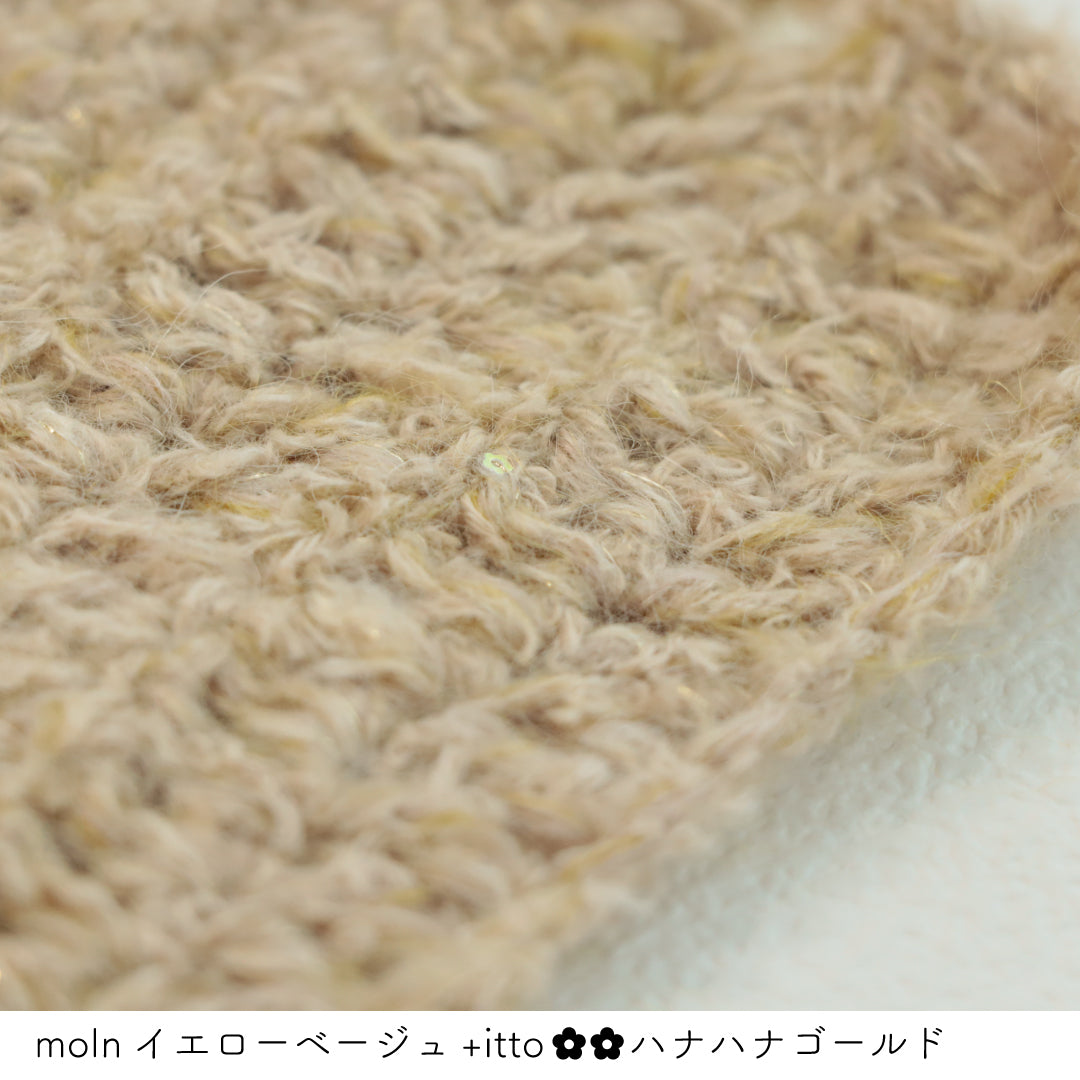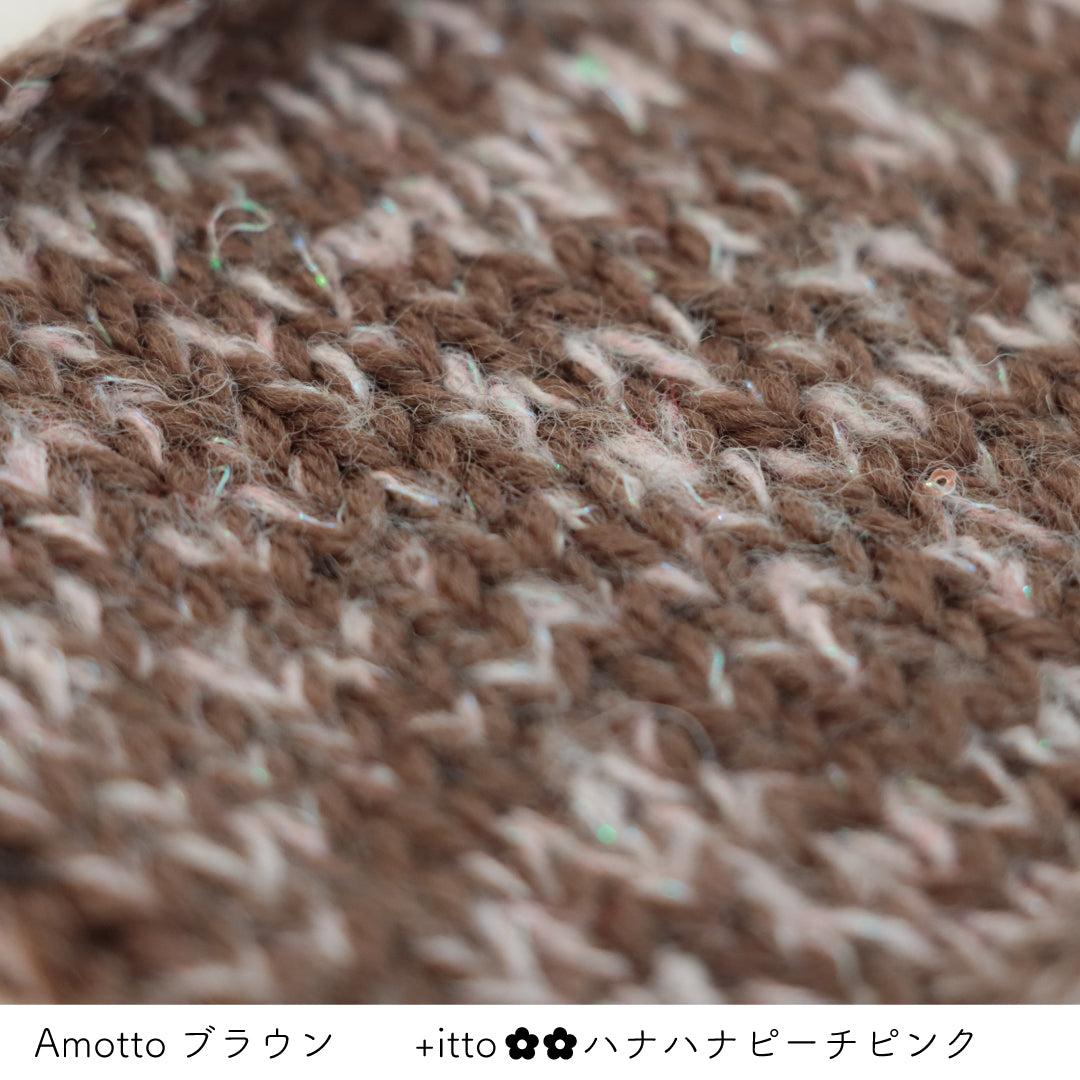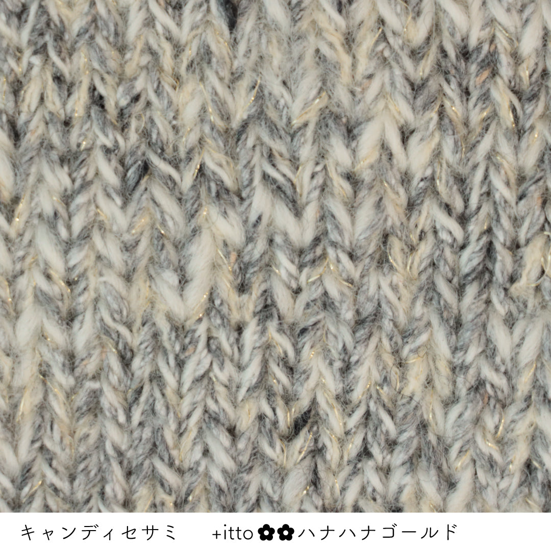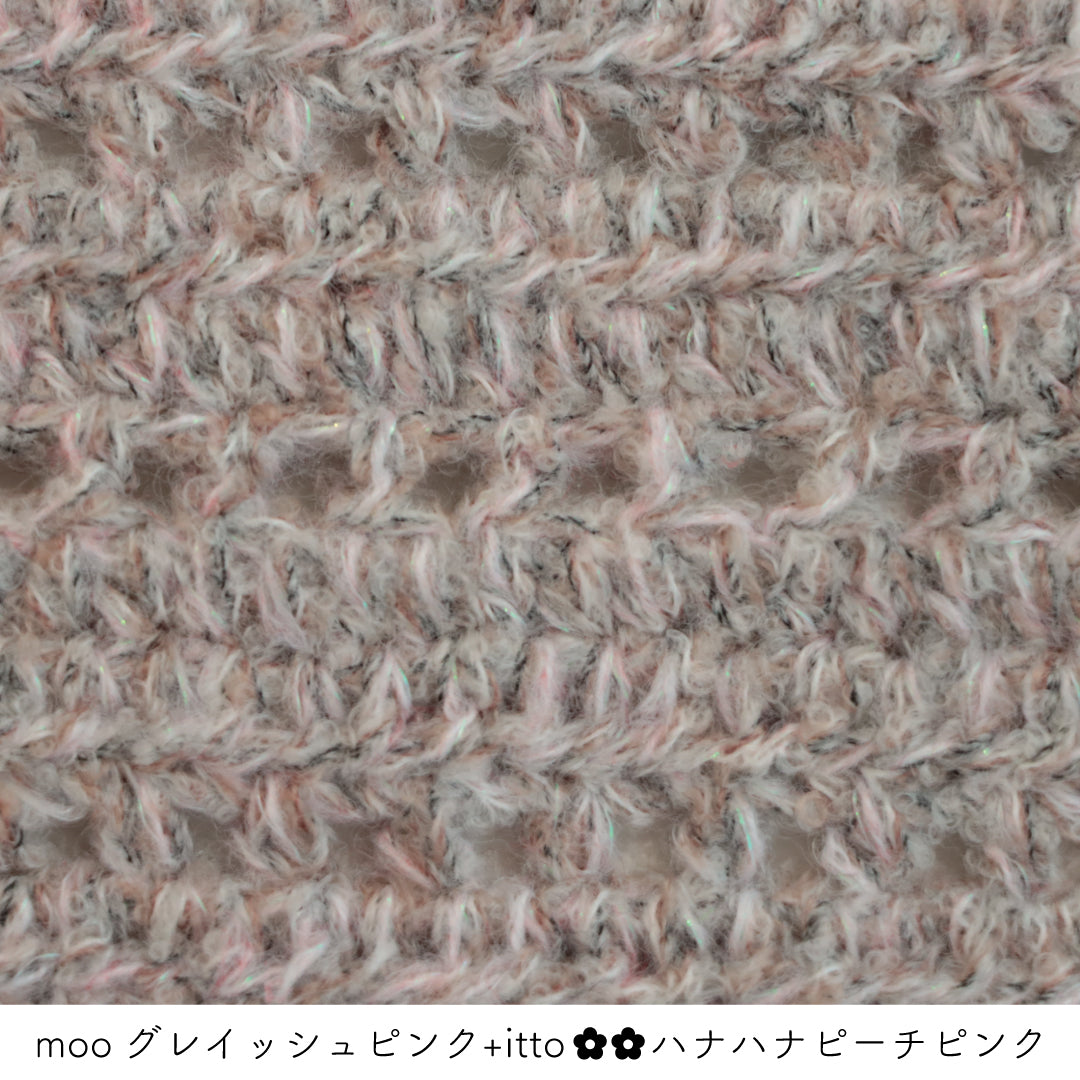 絵画のような淡く繊細なグラデーションとラメの糸が撚糸された糸に、点々と小さなお花のスパンコールが輝く「+ittoハナハナ」