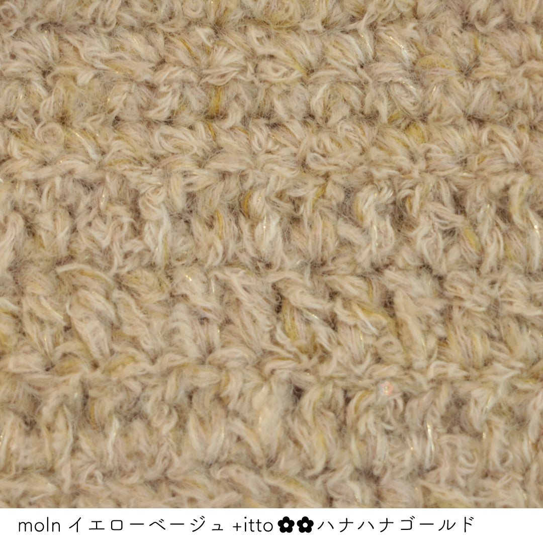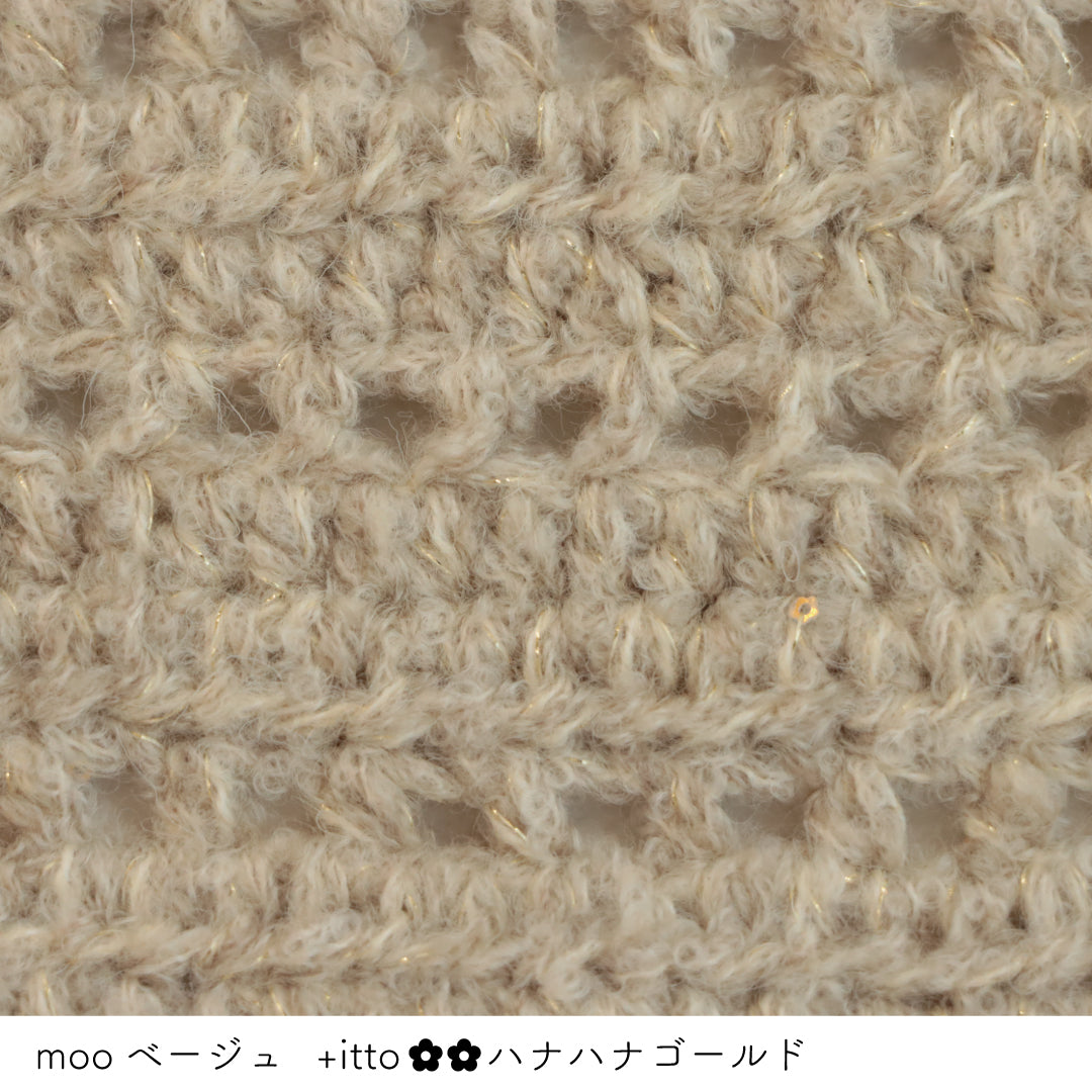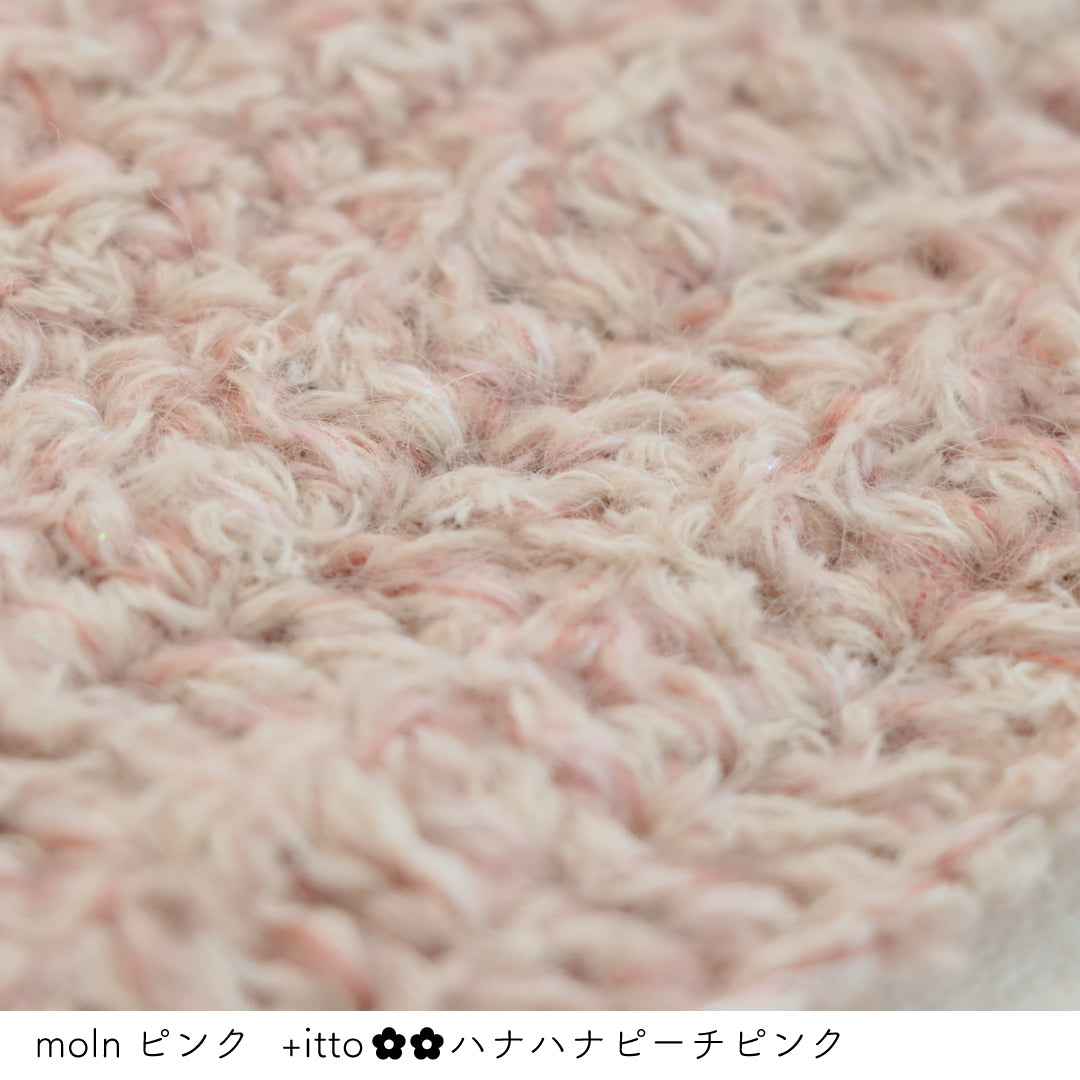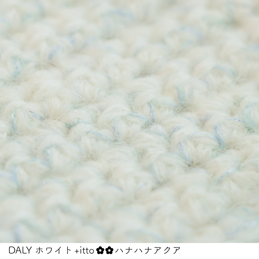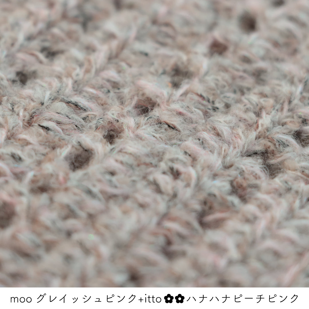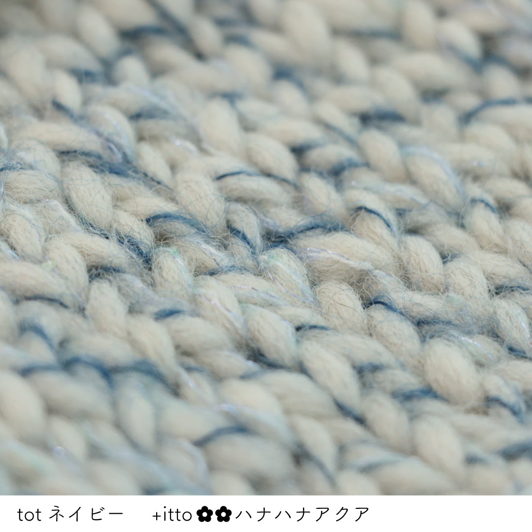 絵画のような淡く繊細なグラデーションとラメの糸が撚糸された糸に、点々と小さなお花のスパンコールが輝く「+ittoハナハナ」