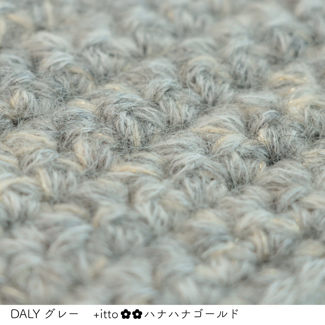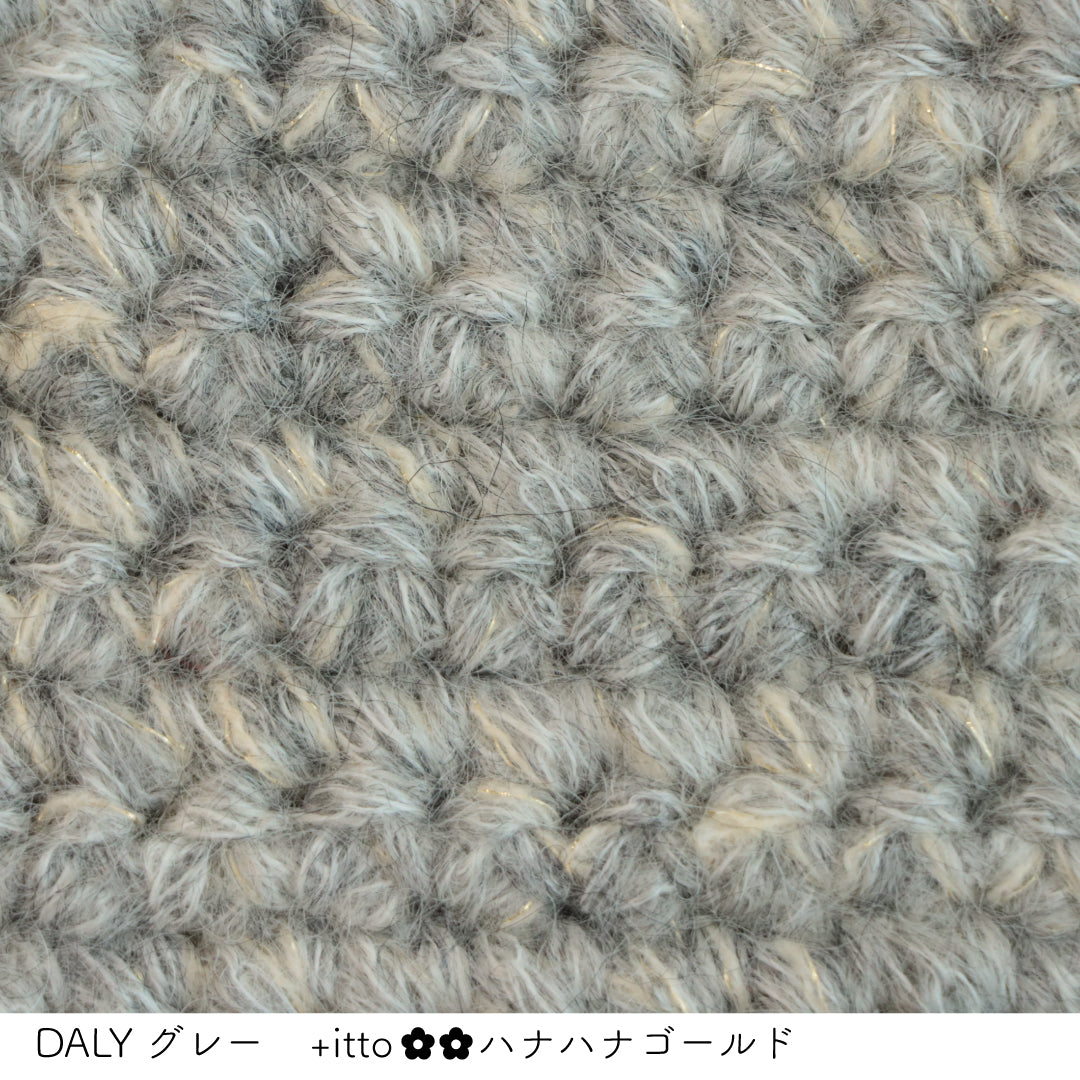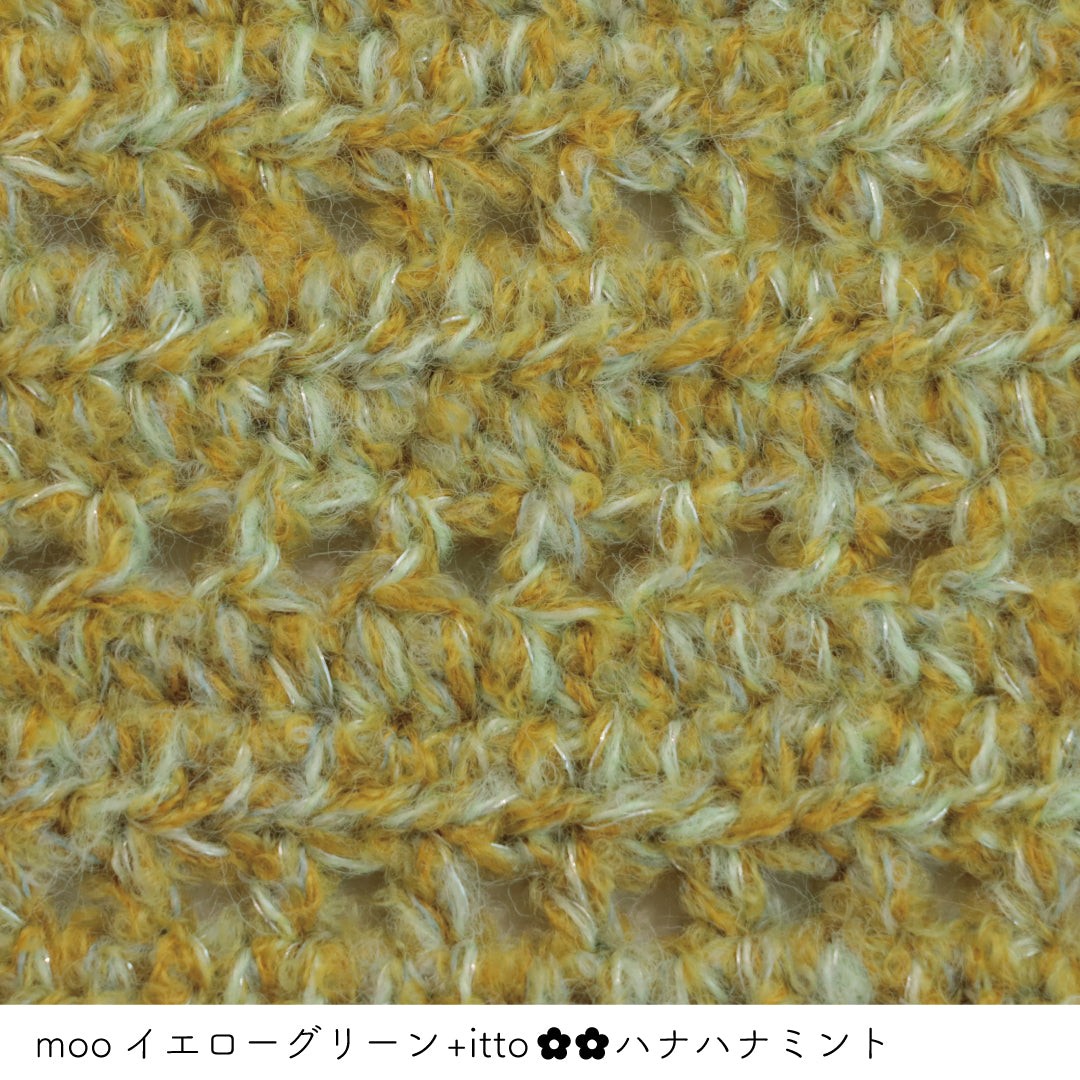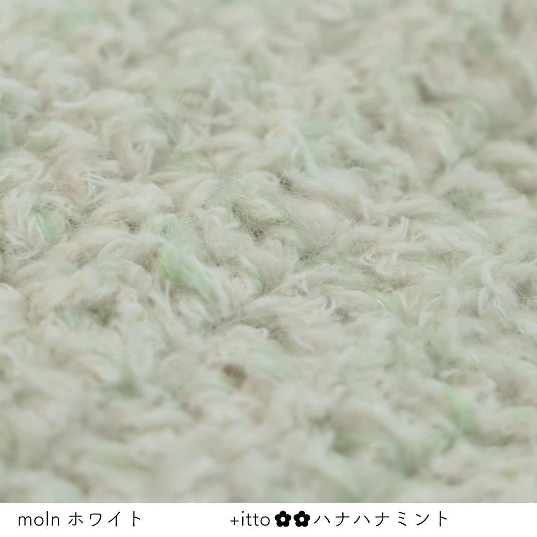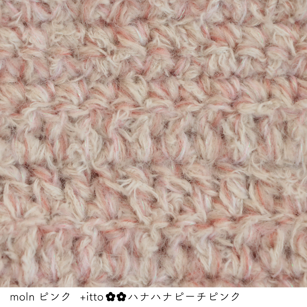 絵画のような淡く繊細なグラデーションとラメの糸が撚糸された糸に、点々と小さなお花のスパンコールが輝く「+ittoハナハナ」