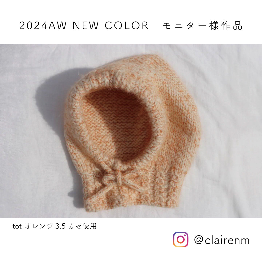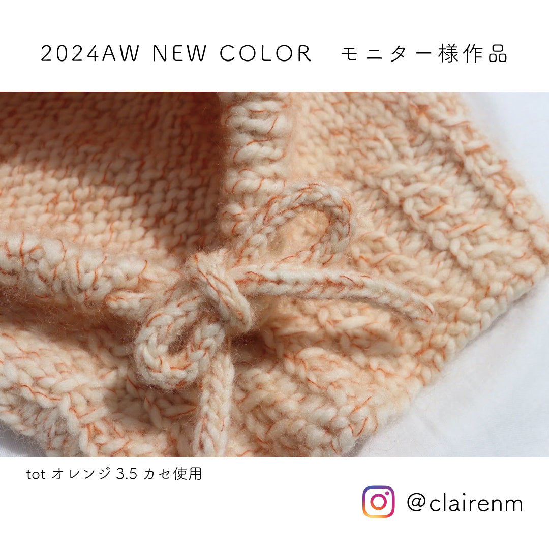 弾力性に富み、膨らみのある「tot」。からめた高品質のモヘヤ糸がポイントとなり、シンプルな編み方でもおしゃれに仕上がります。ニット帽やアームウォーマーなど身に着けるものはもちろん、小物やマットにもぴったり。