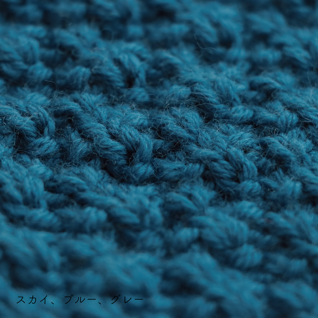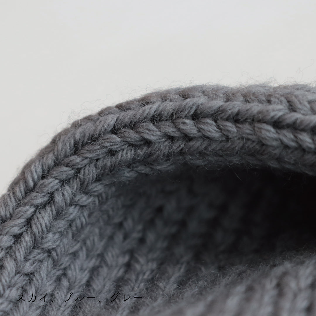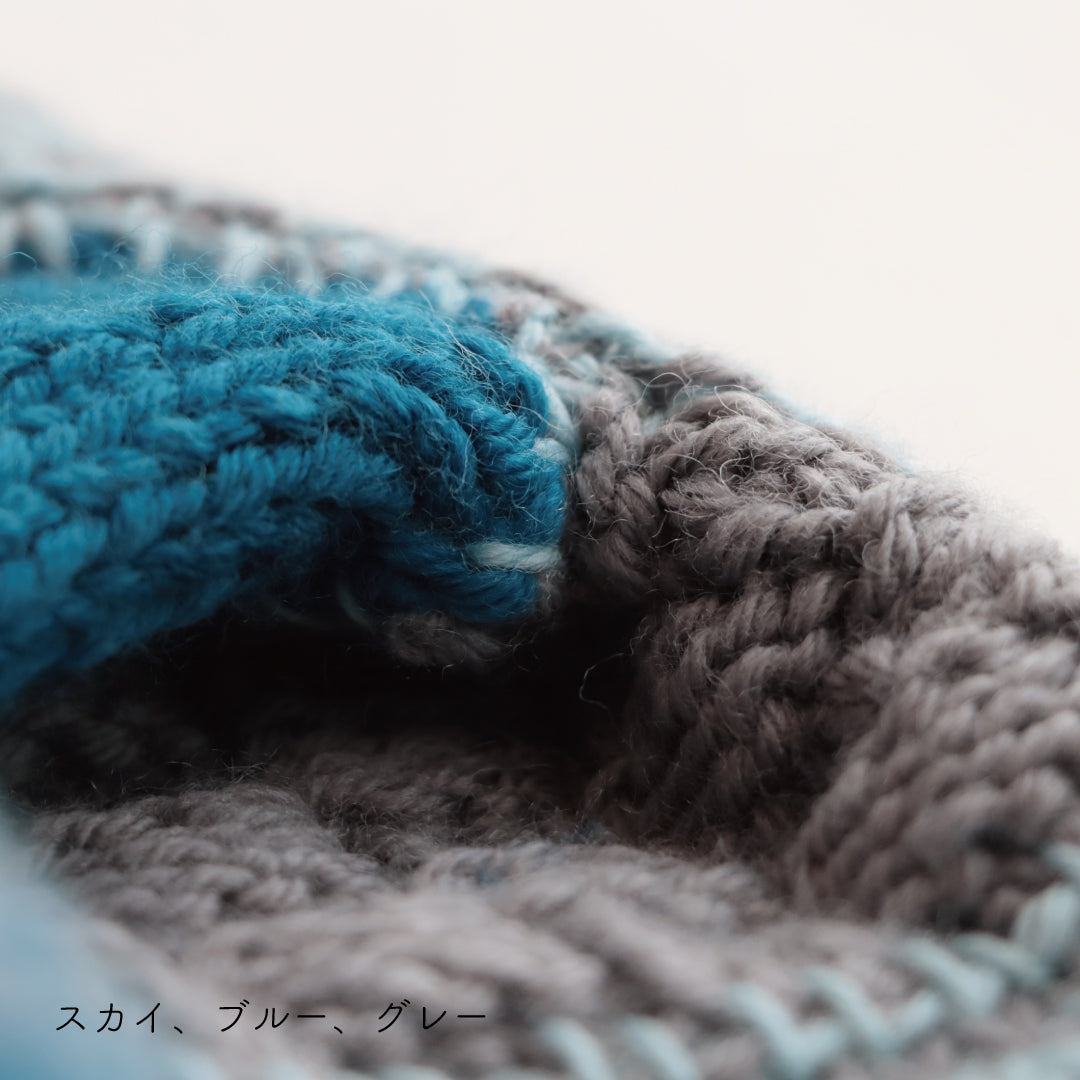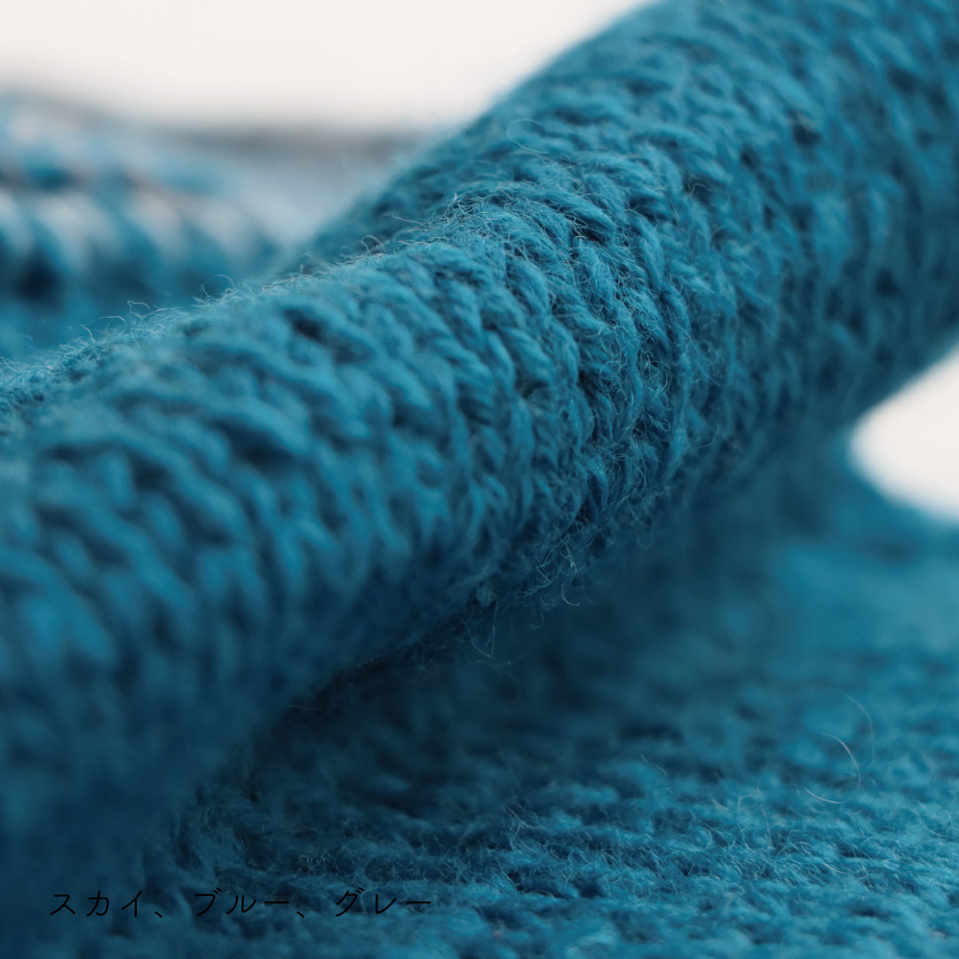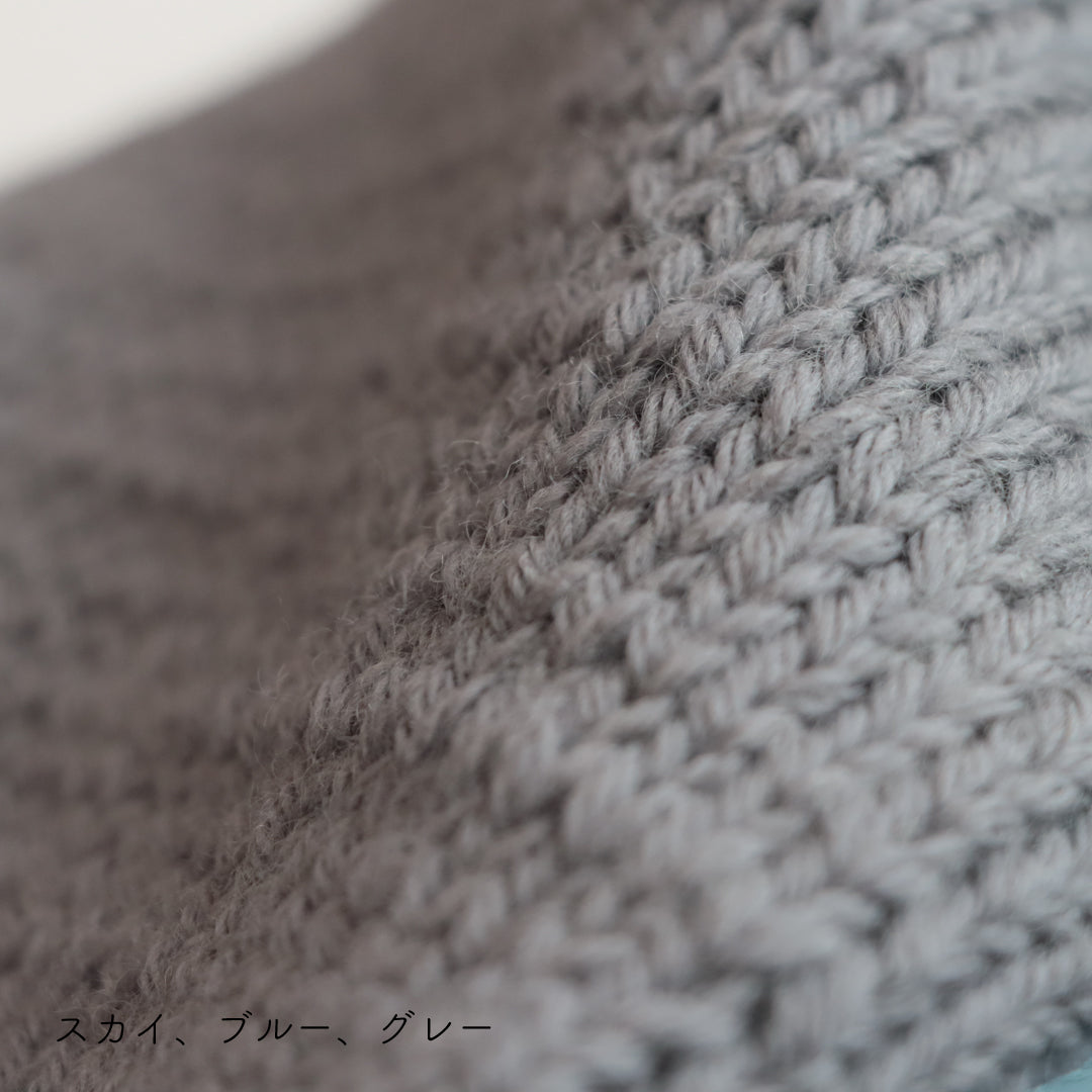 2本取りで編むことで、Amottoならではの軽やかさを残しつつもしっかりとした厚みと温もりのある風合いに。