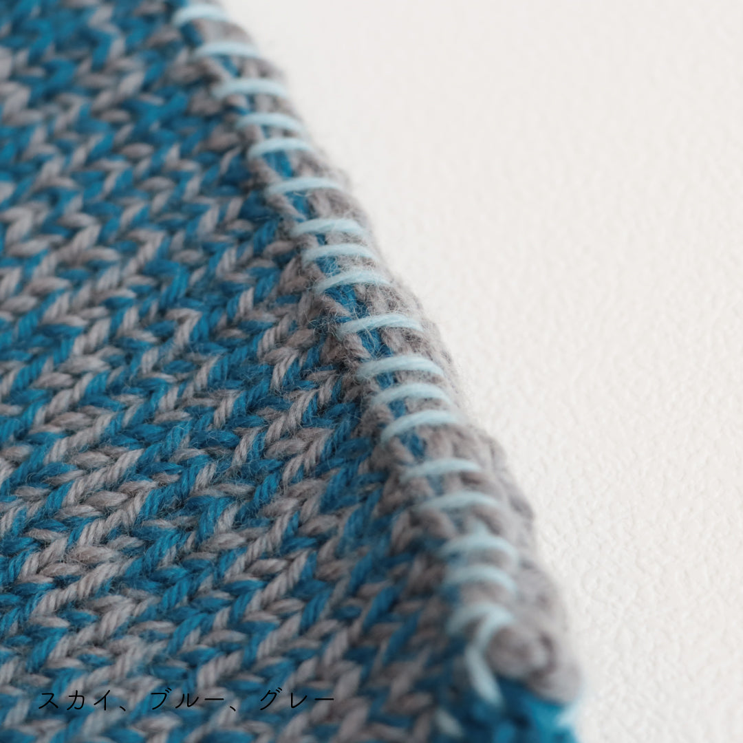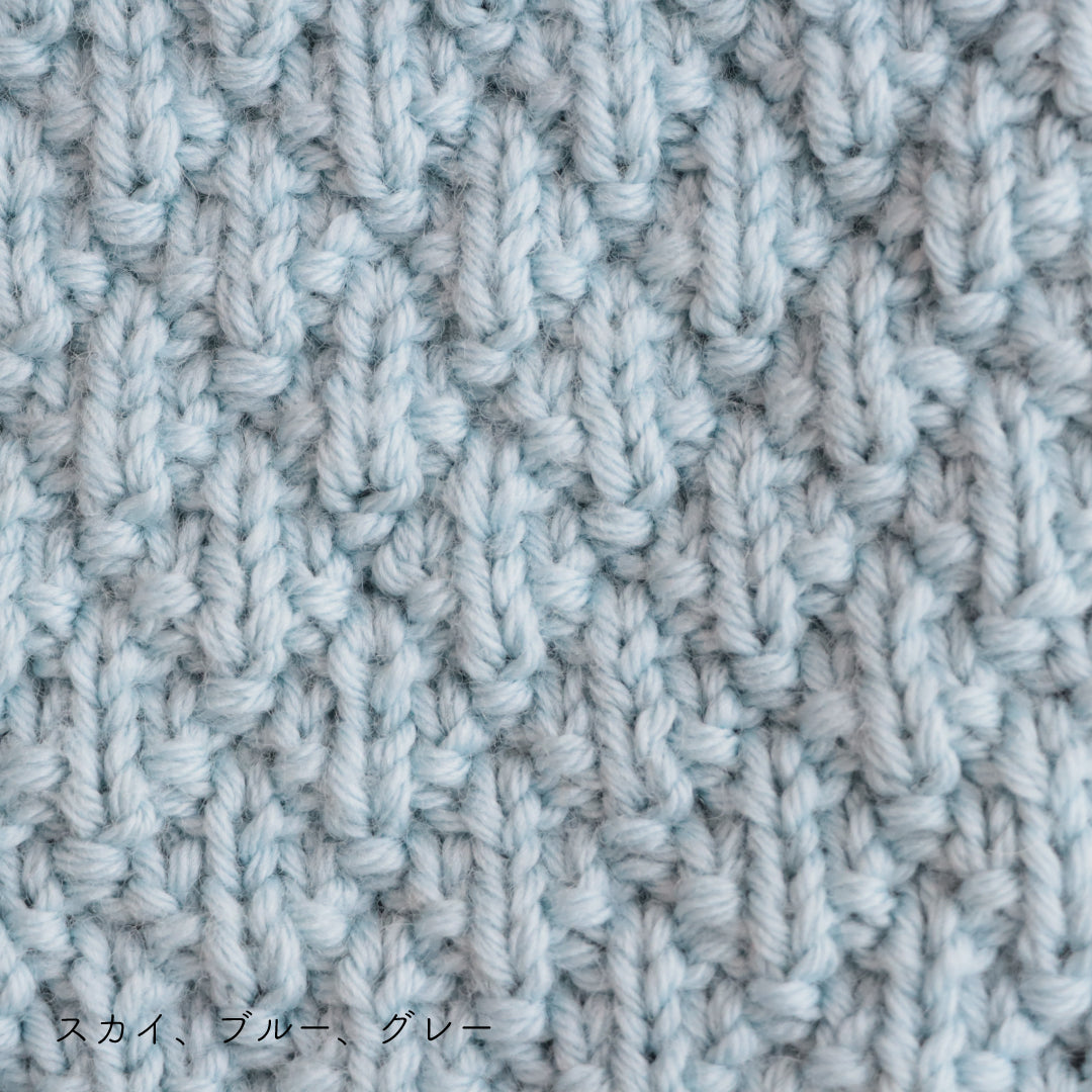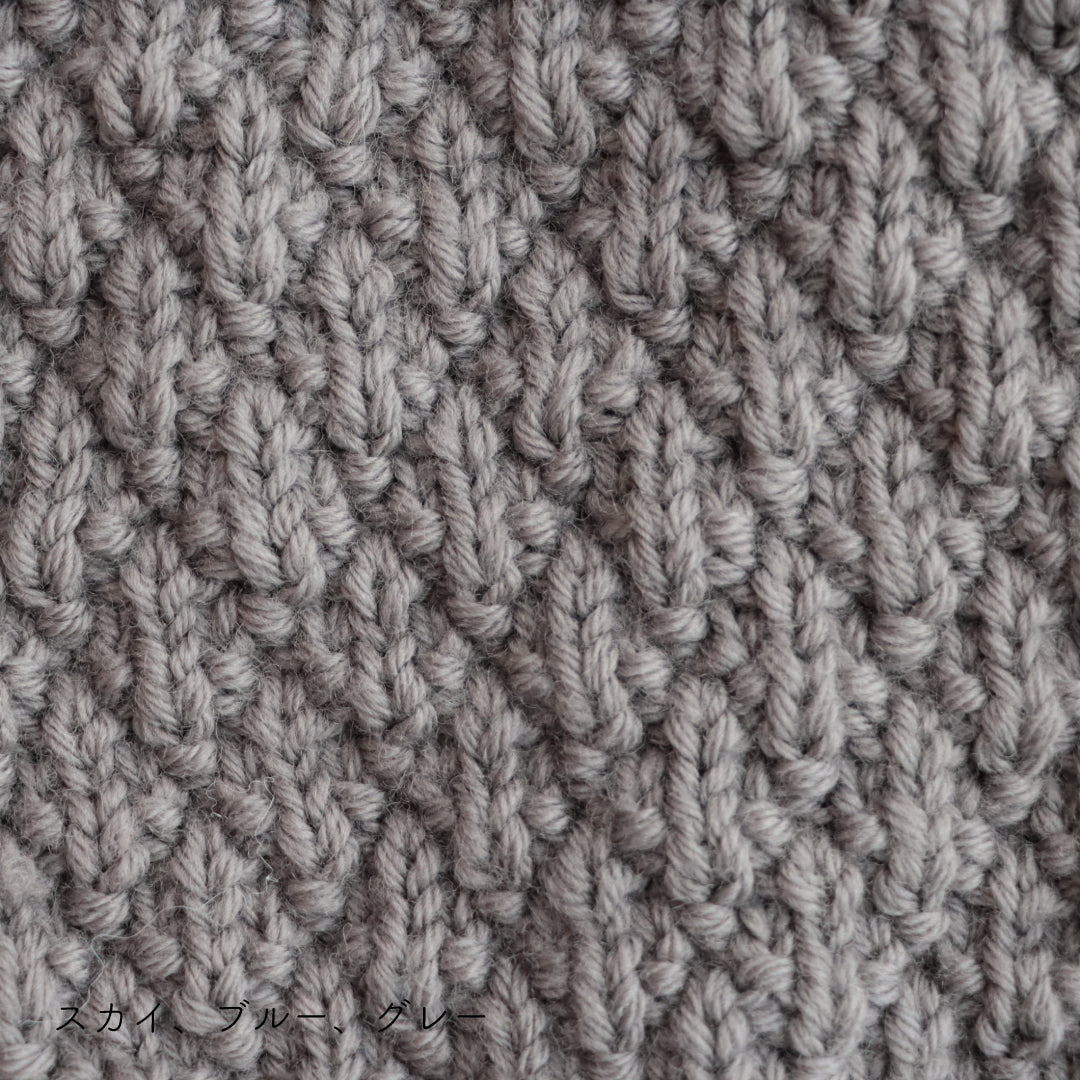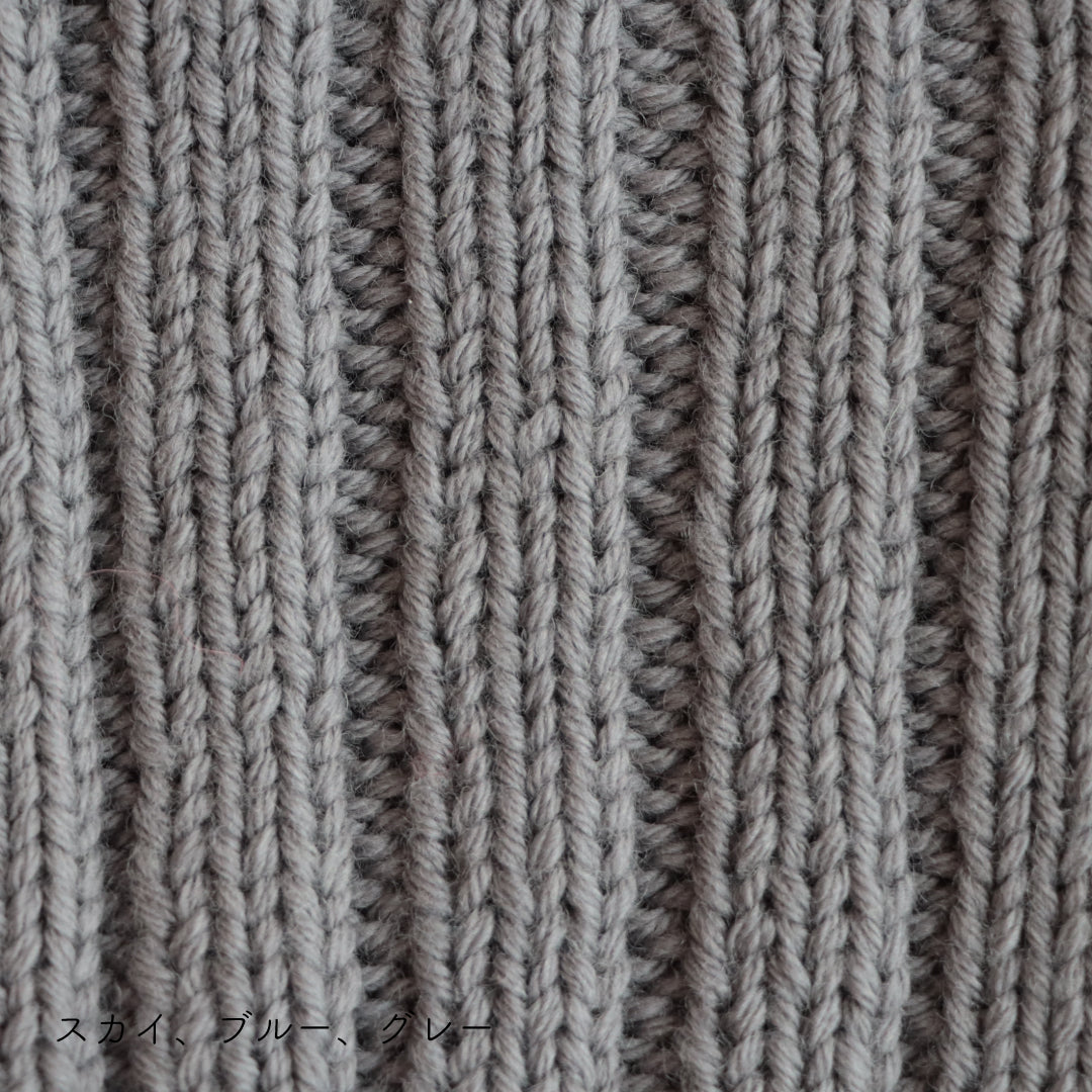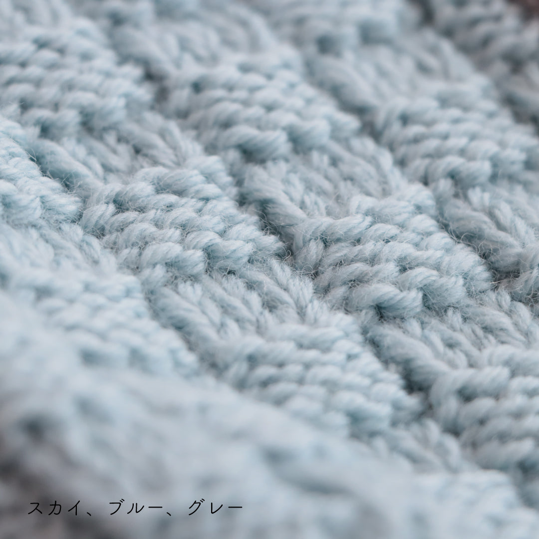 2本取りで編むことで、Amottoならではの軽やかさを残しつつもしっかりとした厚みと温もりのある風合いに。