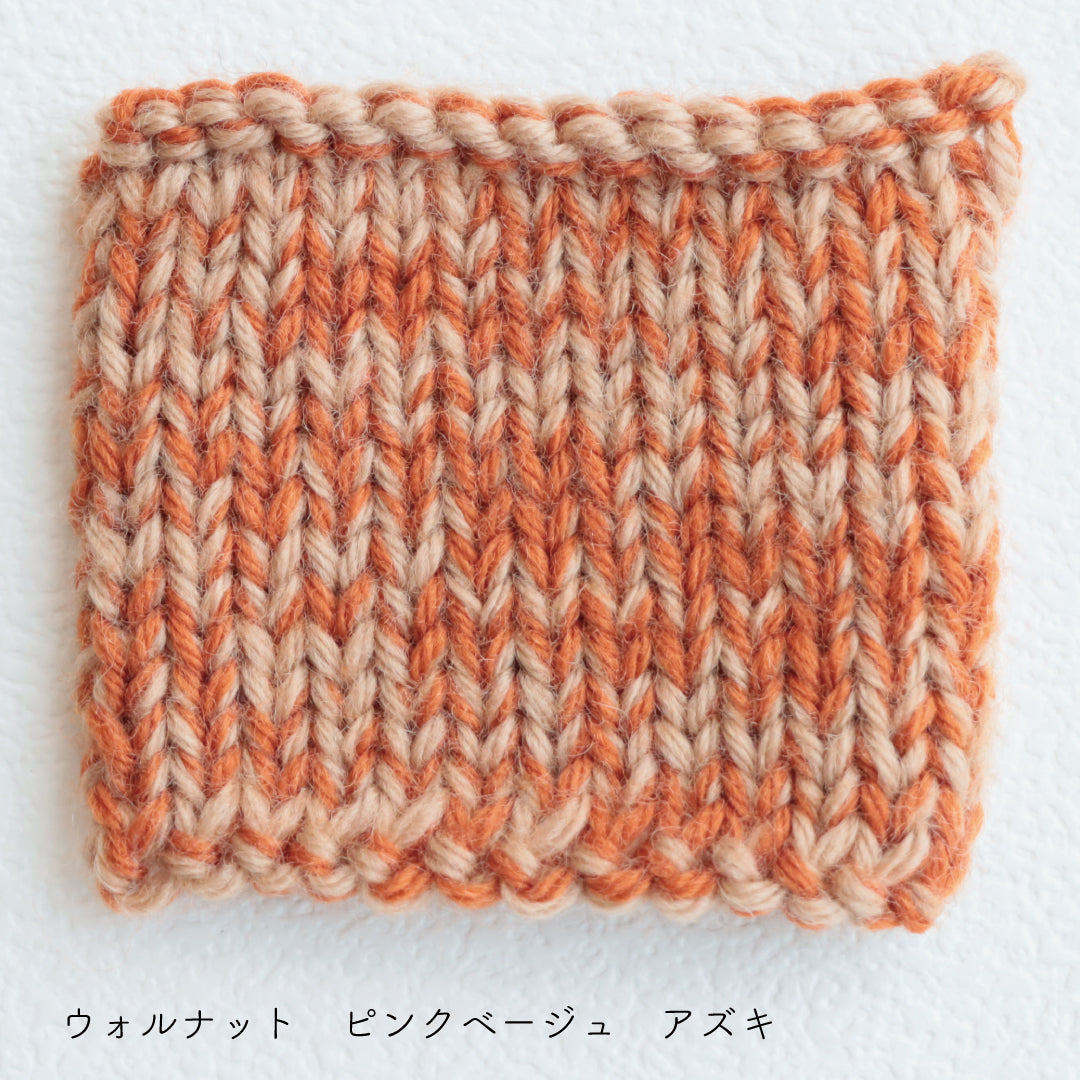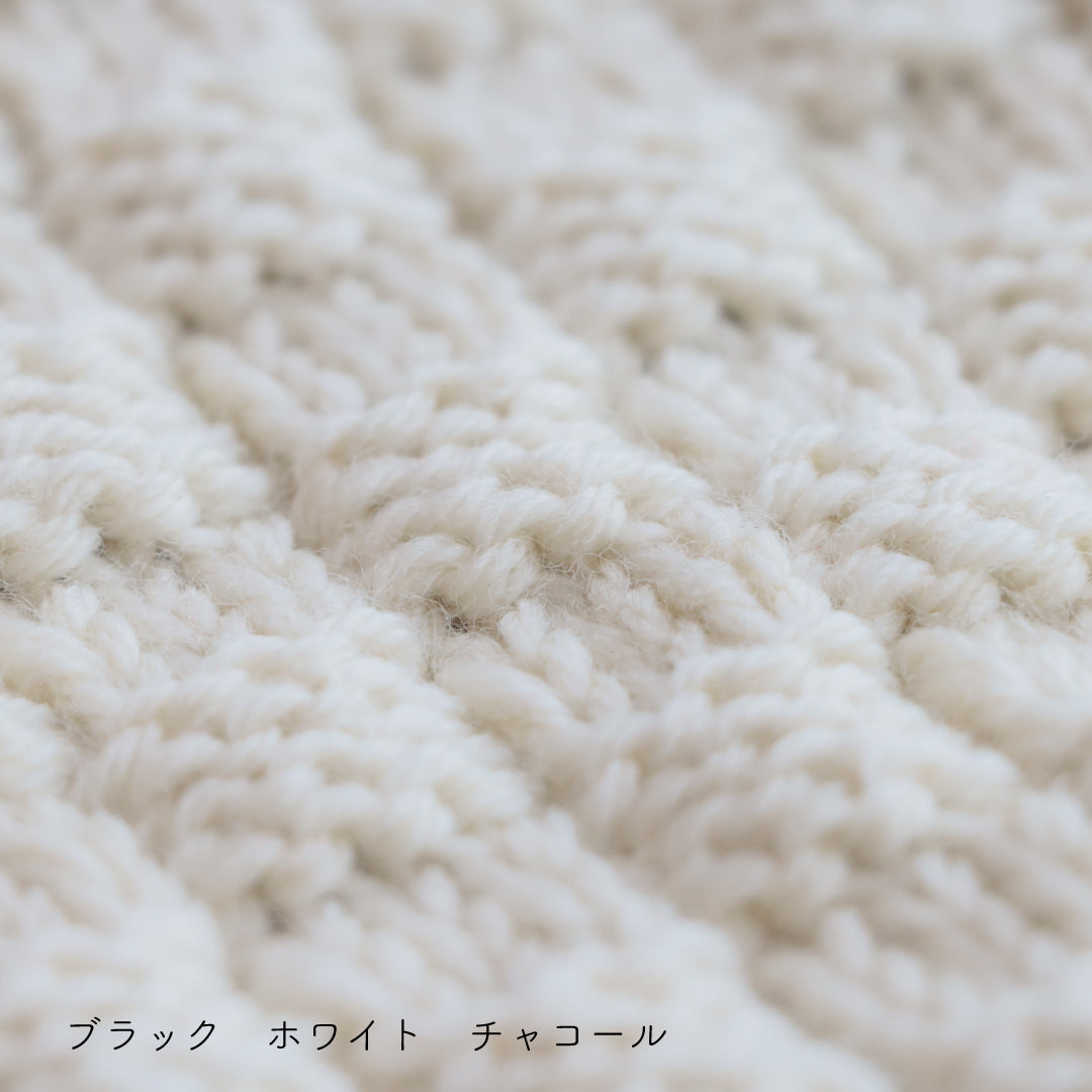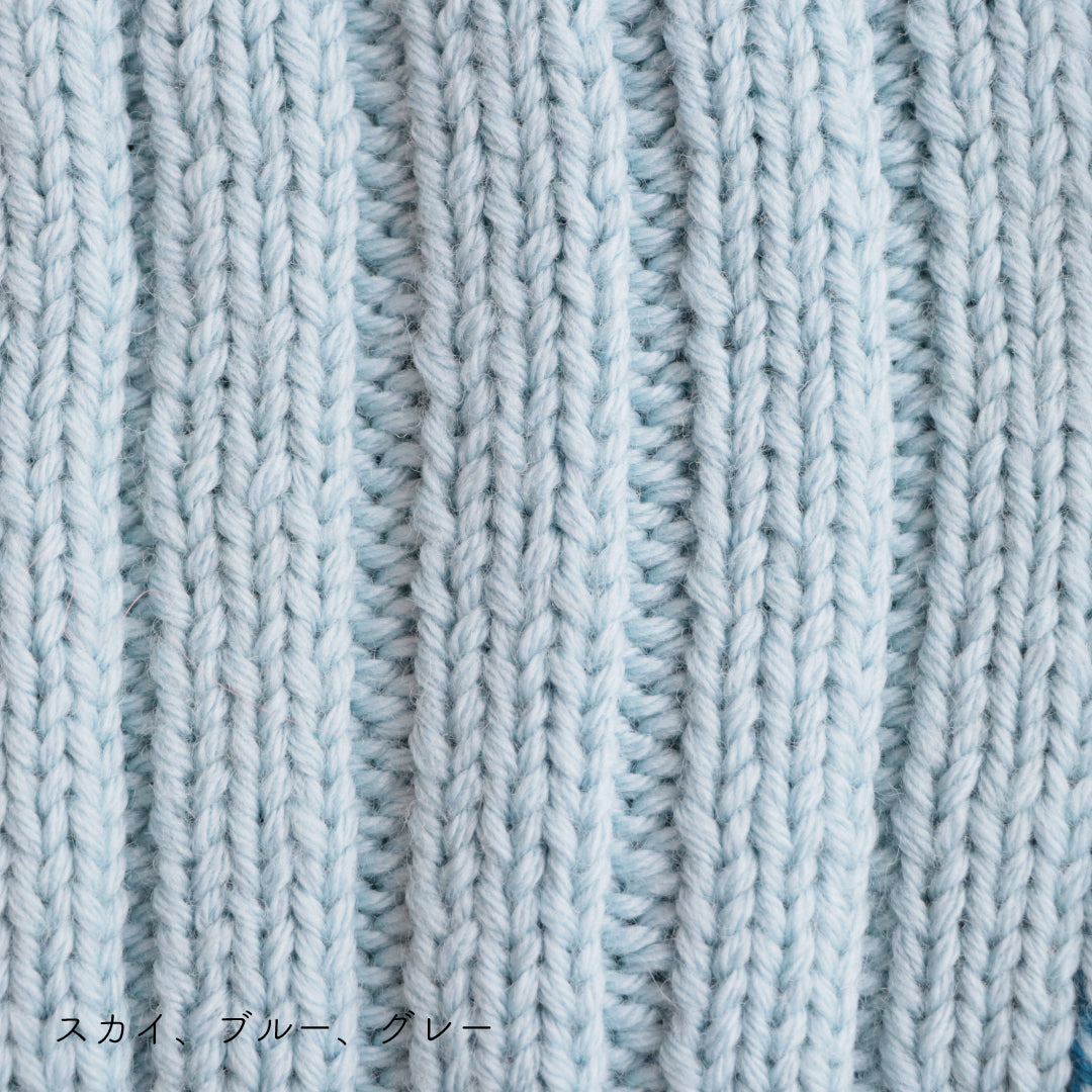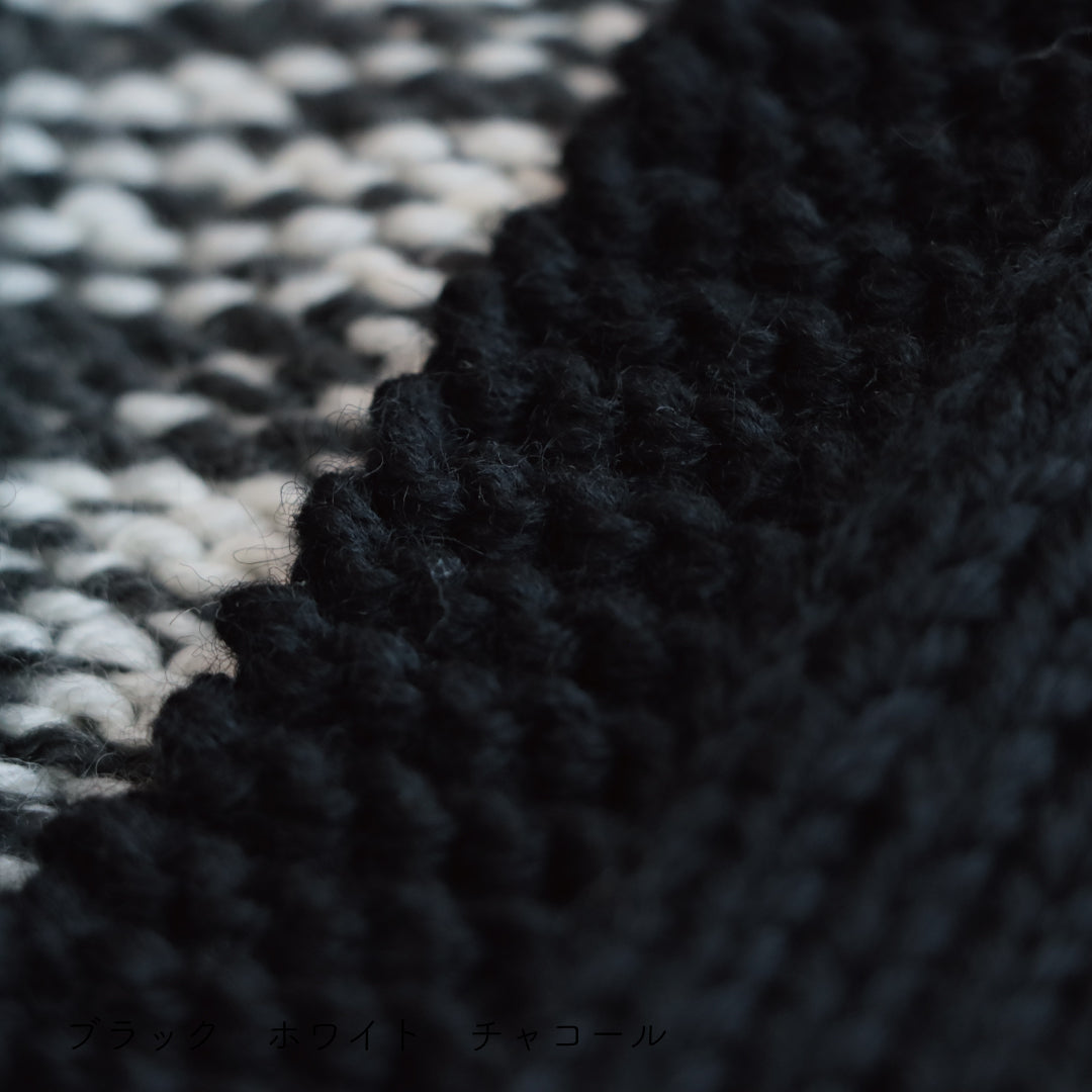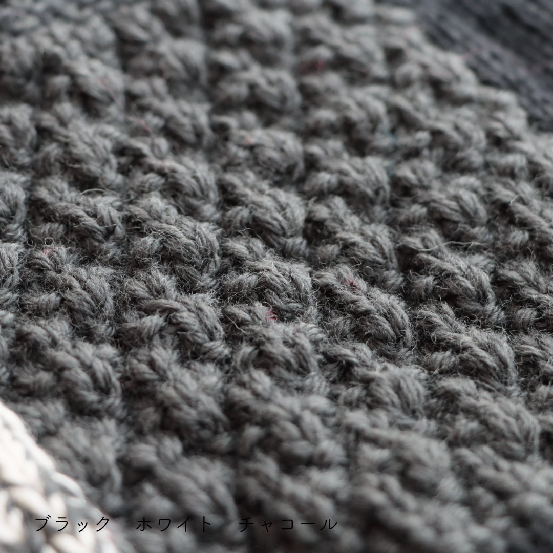 2本取りで編むことで、Amottoならではの軽やかさを残しつつもしっかりとした厚みと温もりのある風合いに。