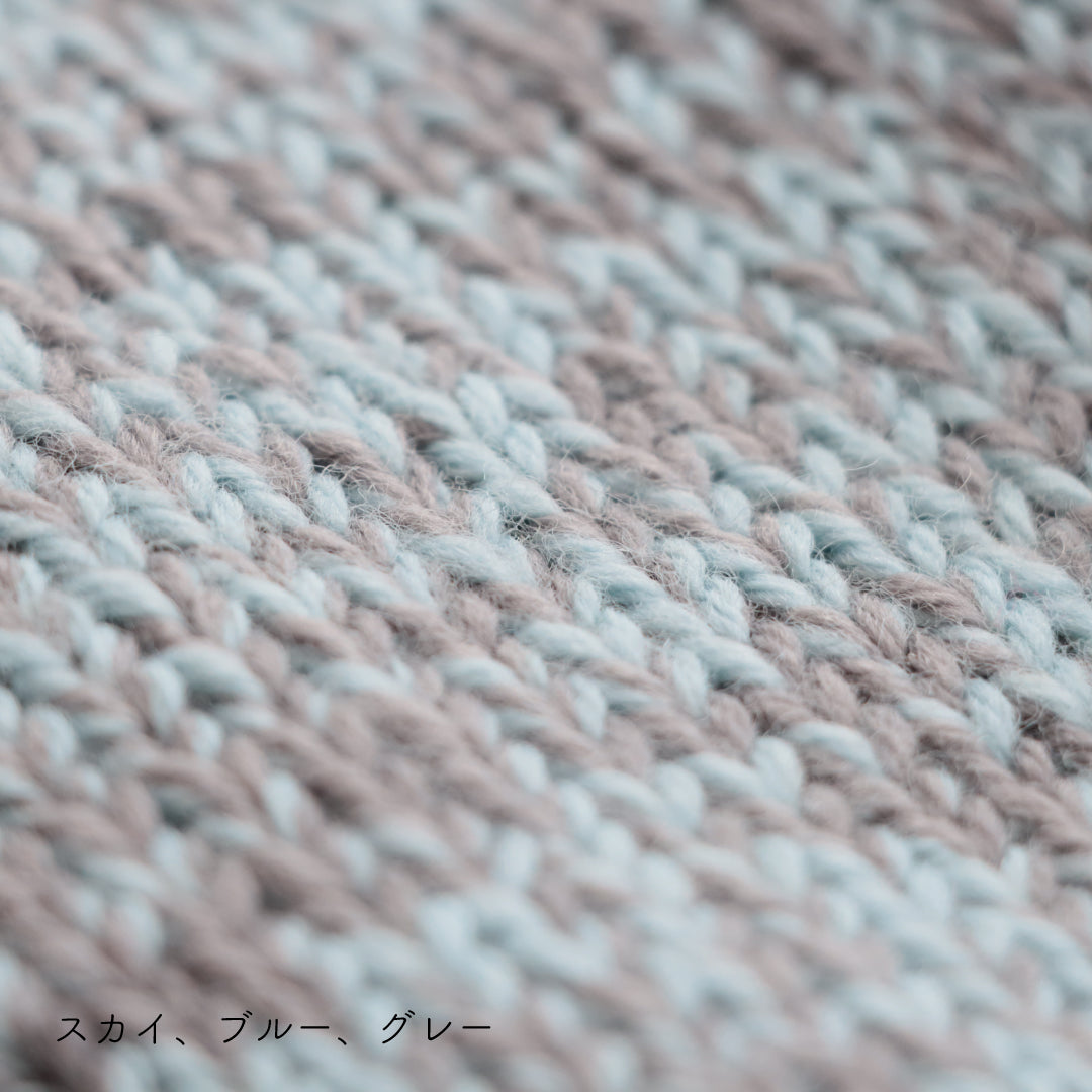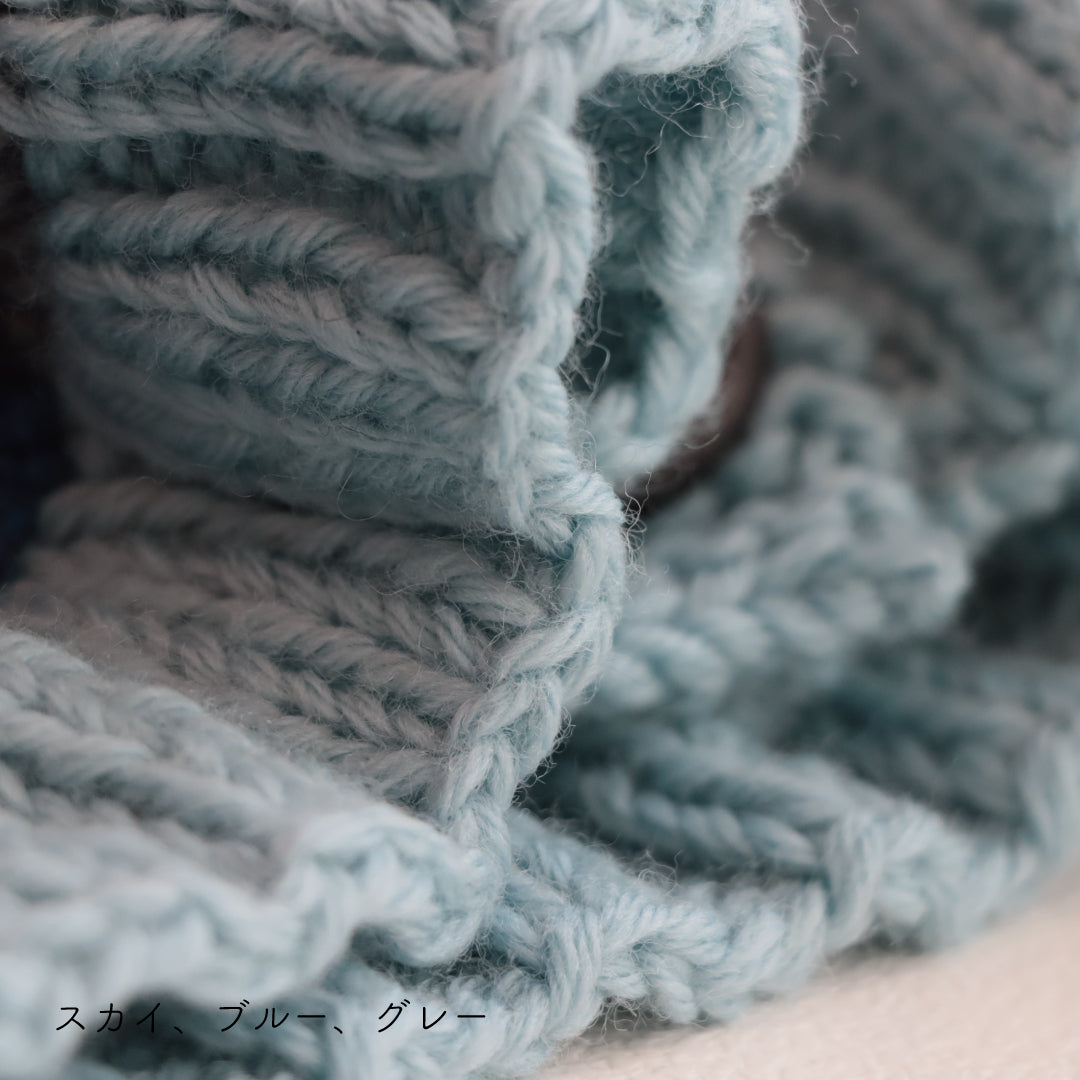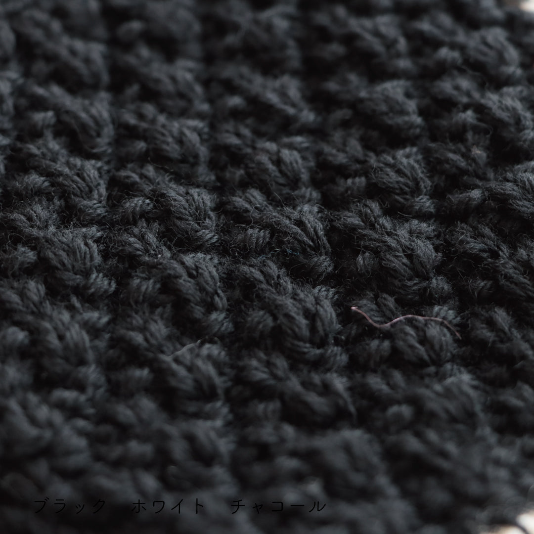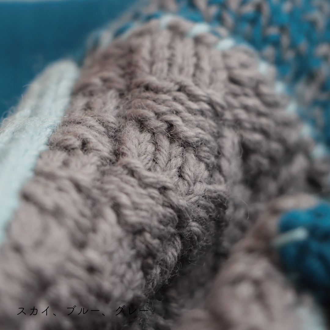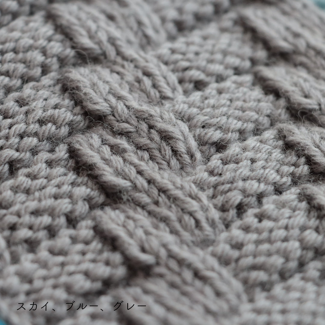 2本取りで編むことで、Amottoならではの軽やかさを残しつつもしっかりとした厚みと温もりのある風合いに。