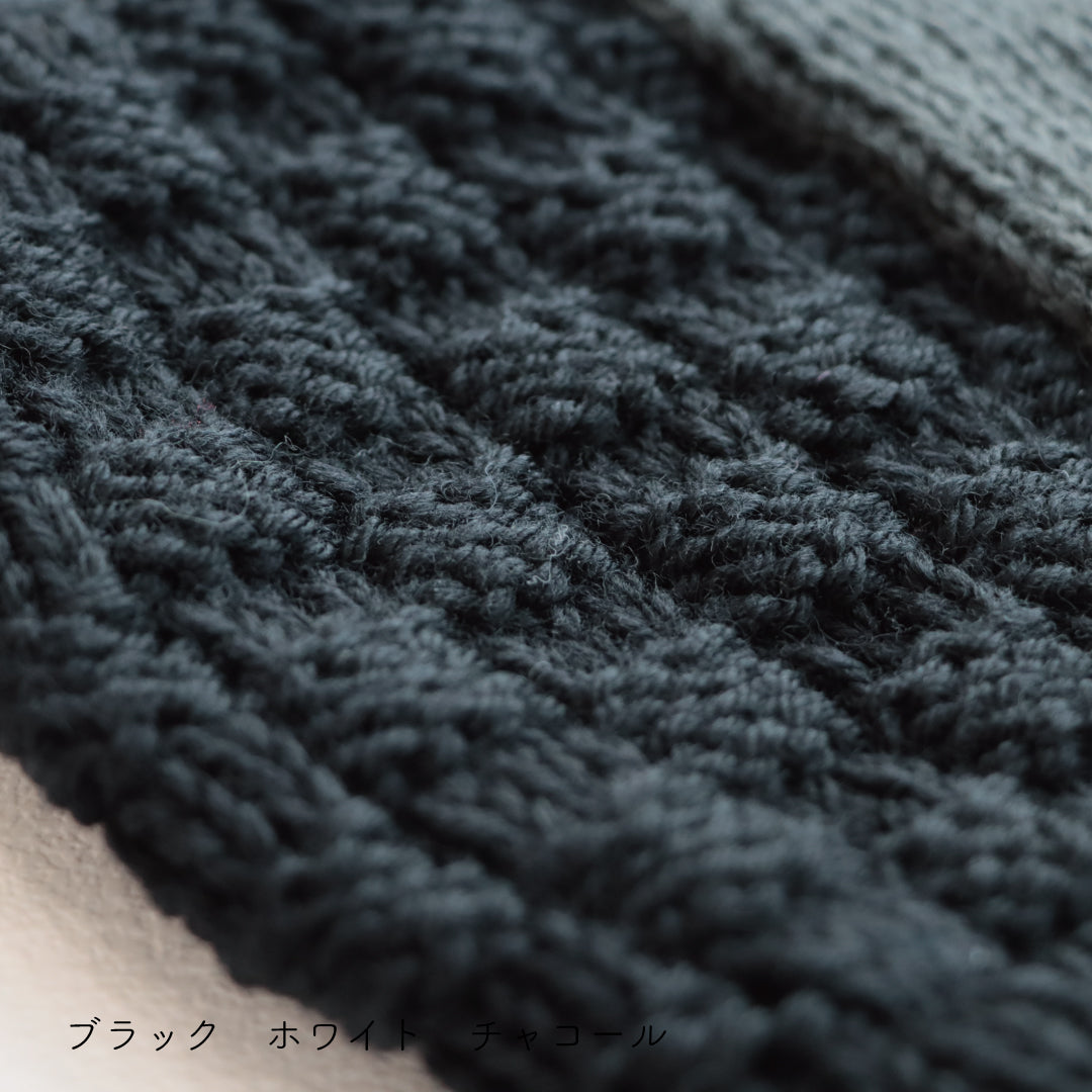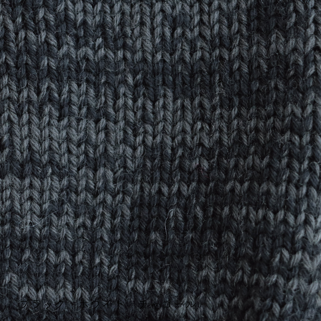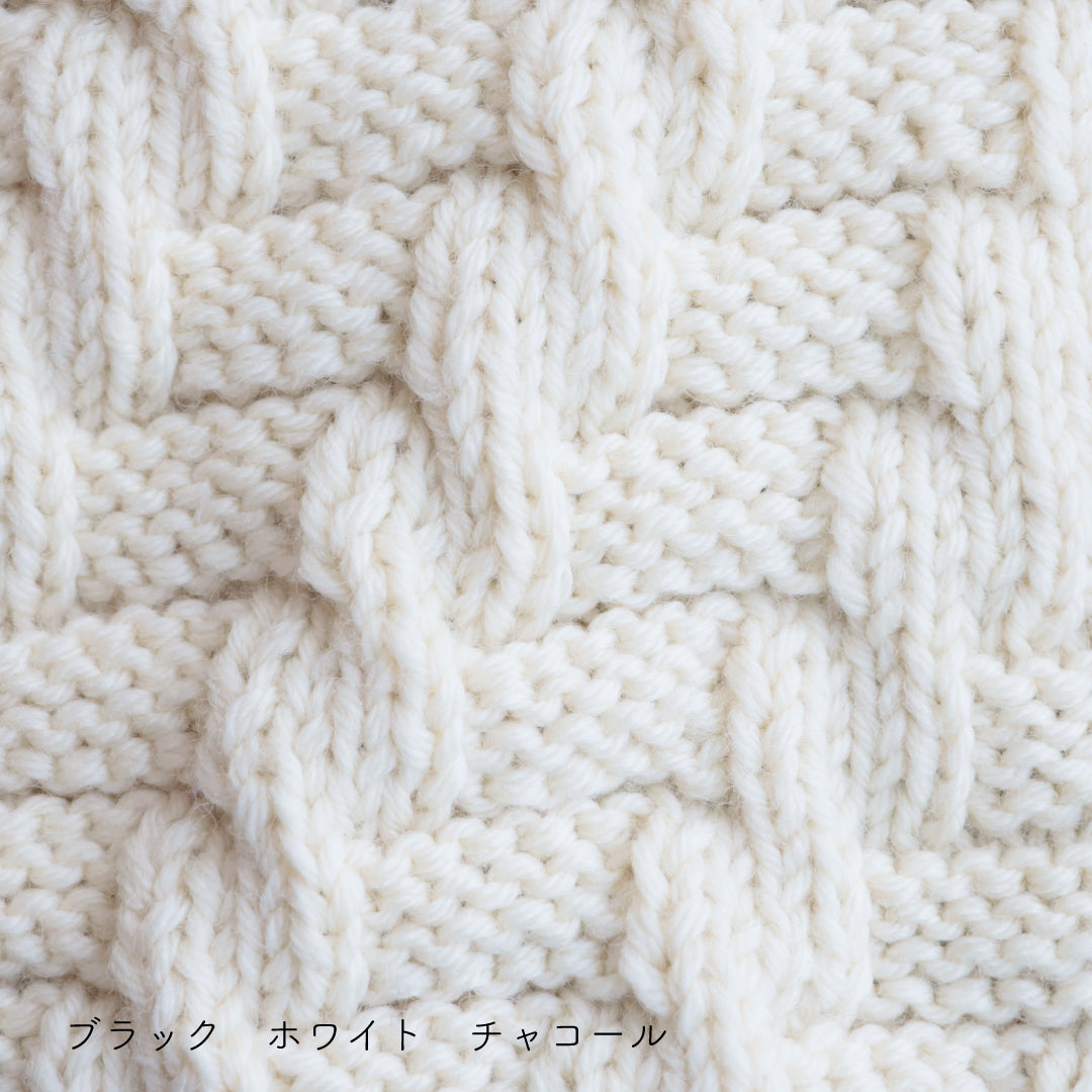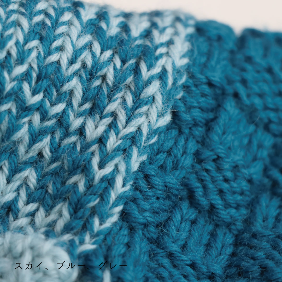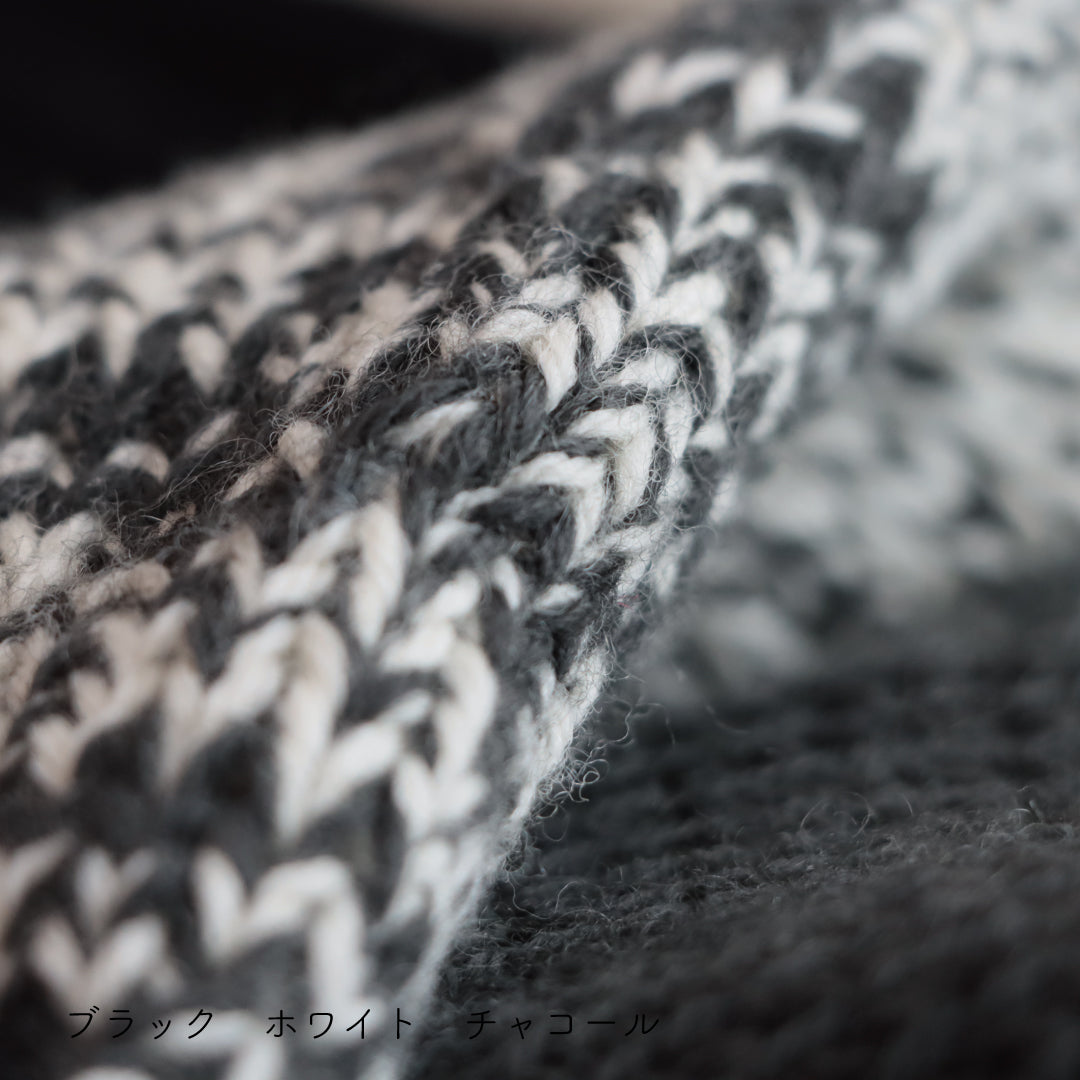 2本取りで編むことで、Amottoならではの軽やかさを残しつつもしっかりとした厚みと温もりのある風合いに。