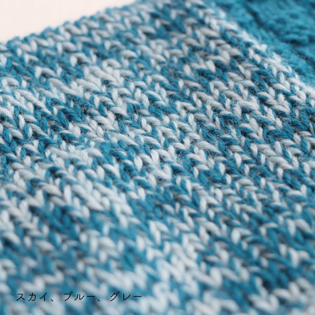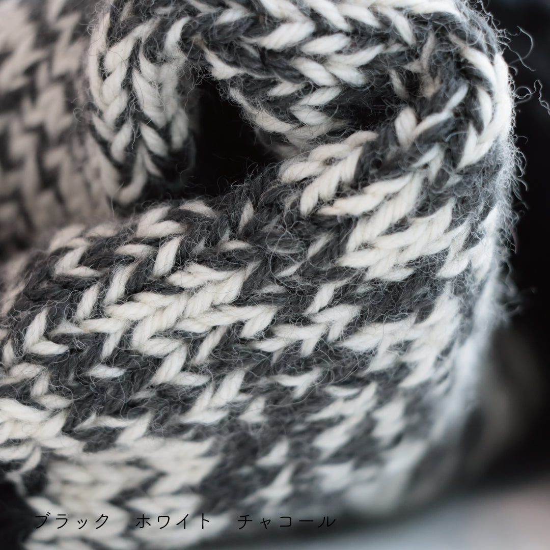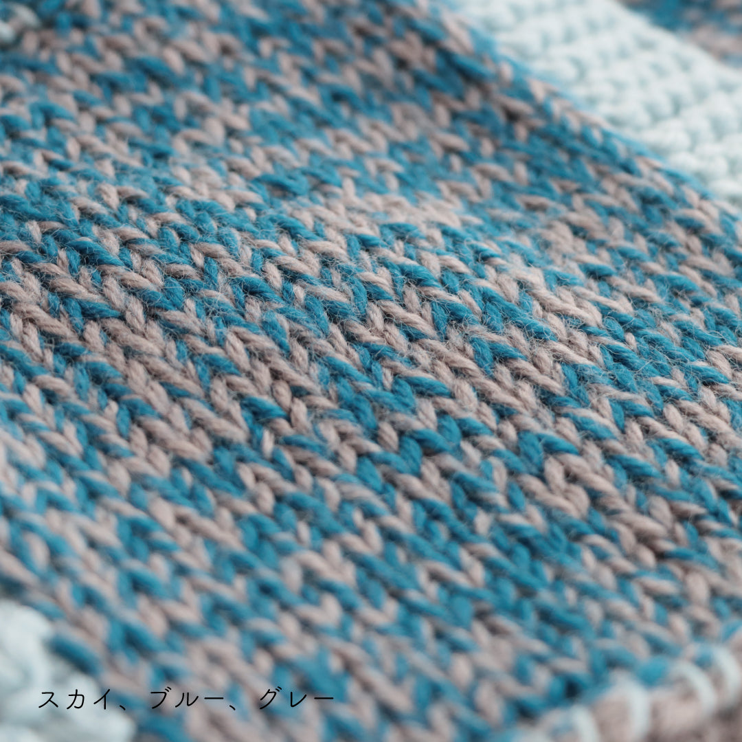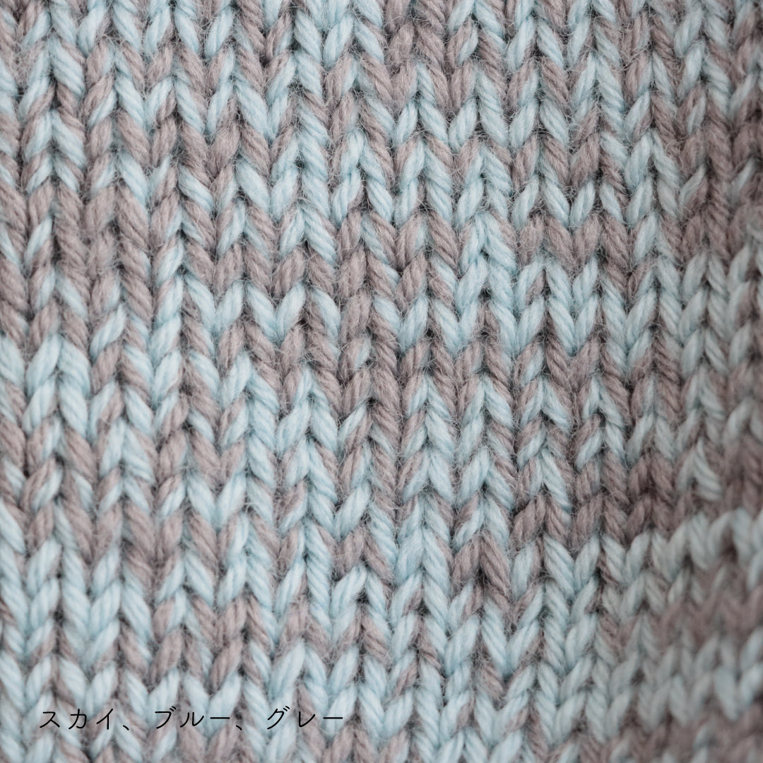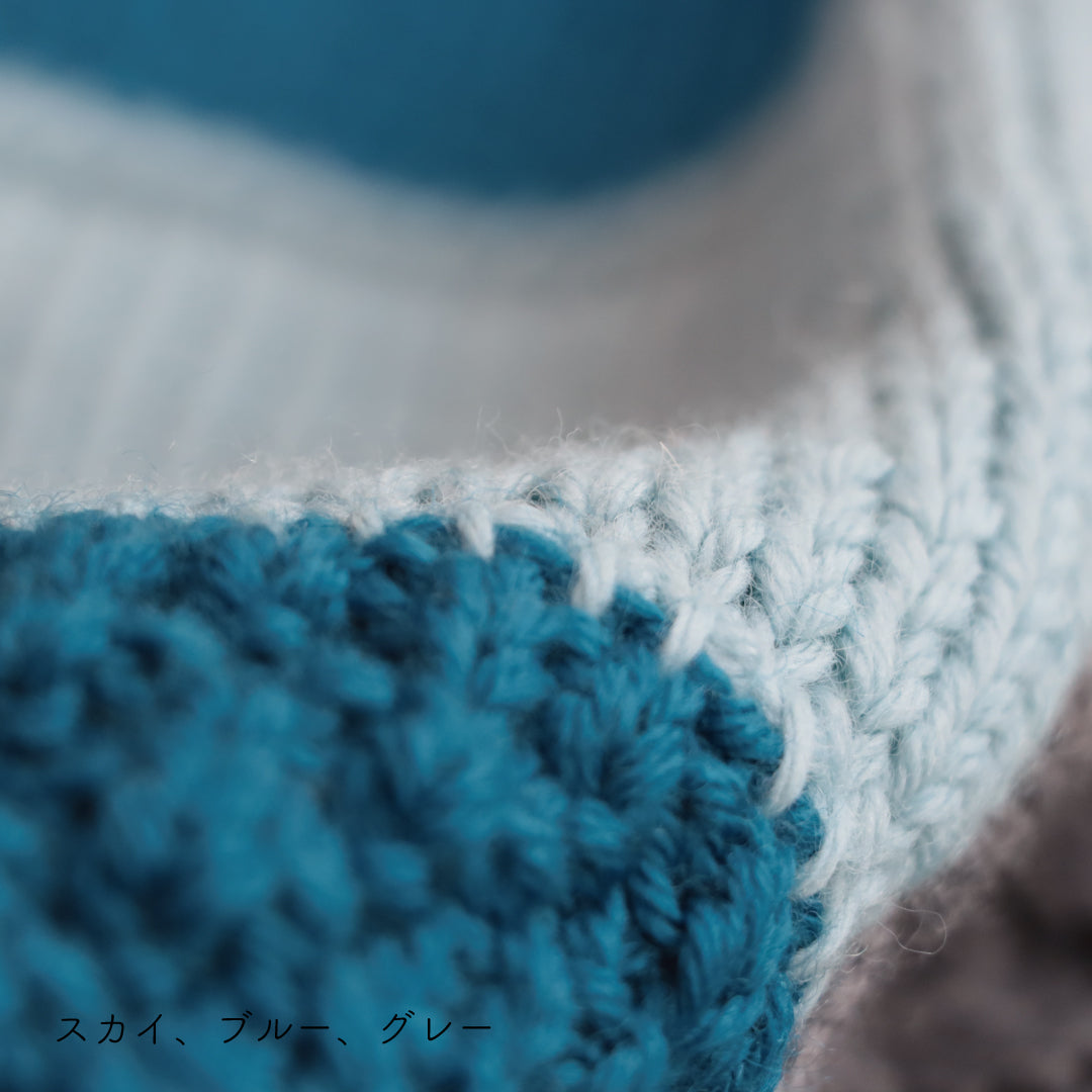 2本取りで編むことで、Amottoならではの軽やかさを残しつつもしっかりとした厚みと温もりのある風合いに。