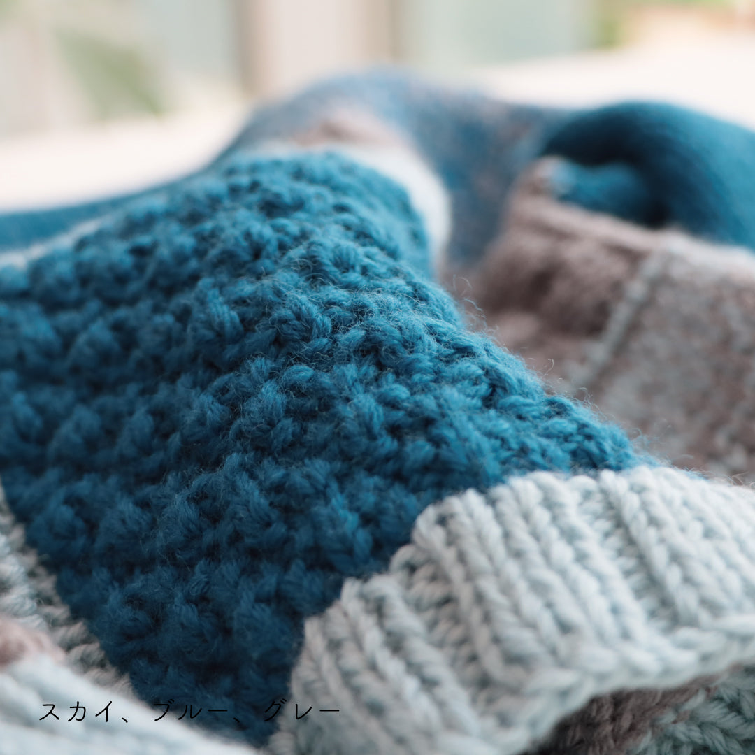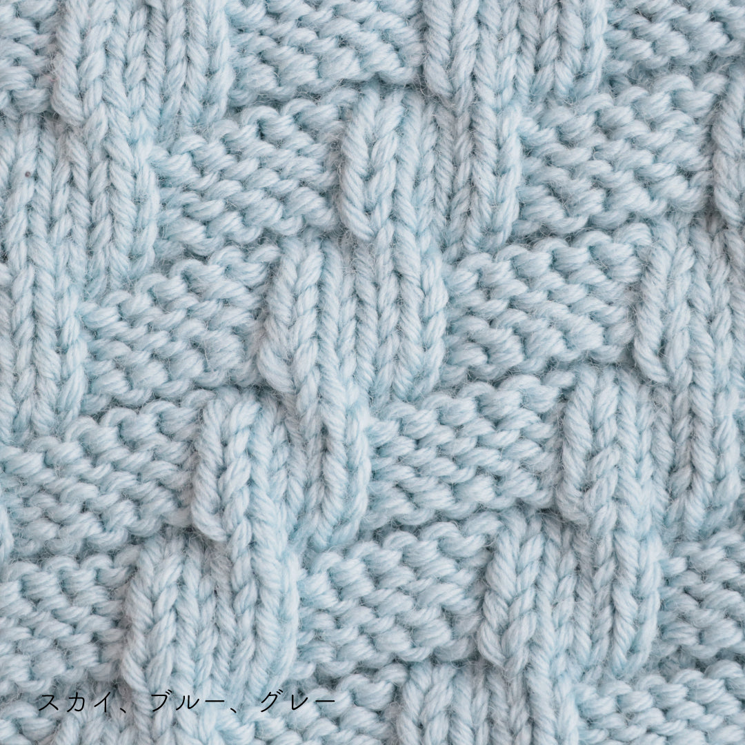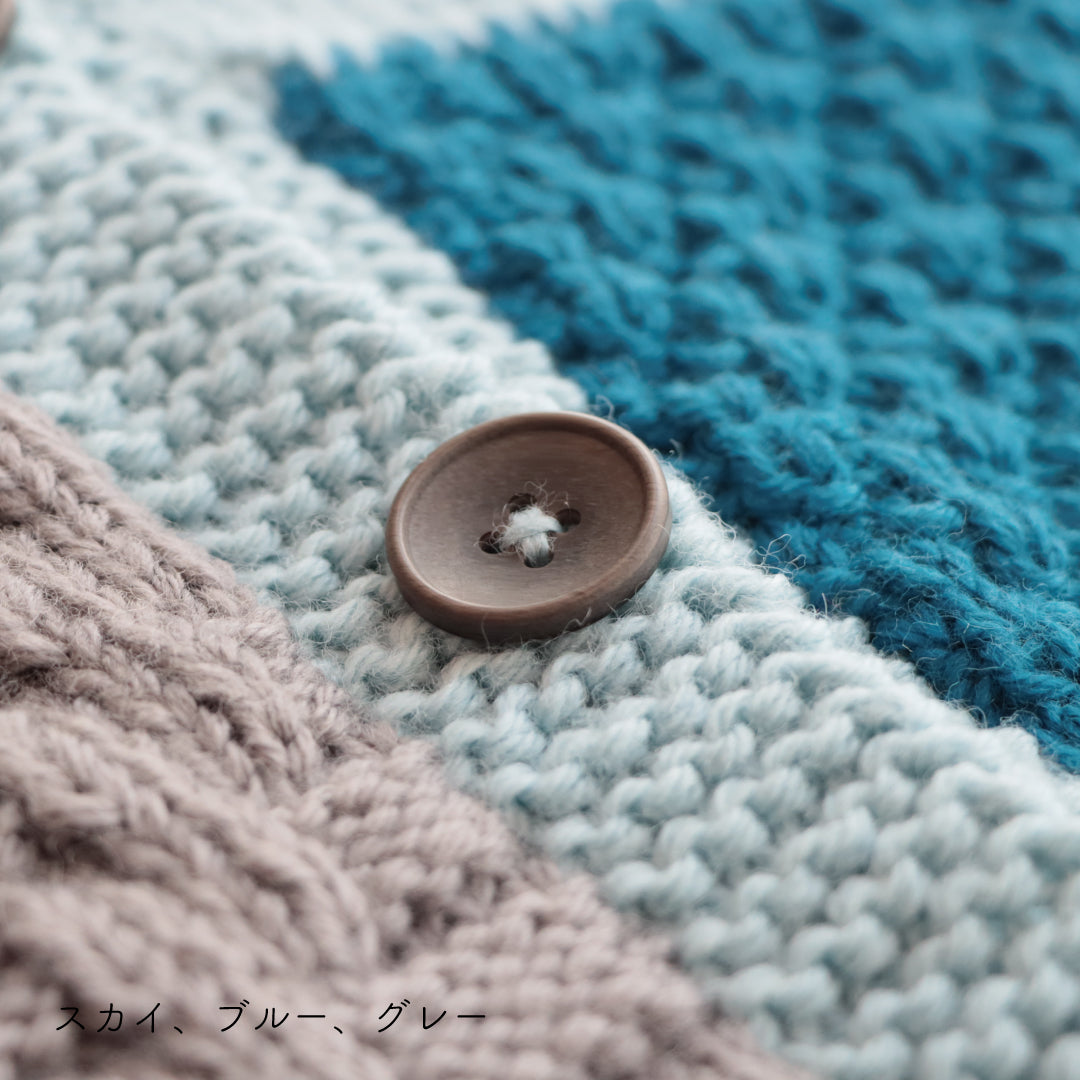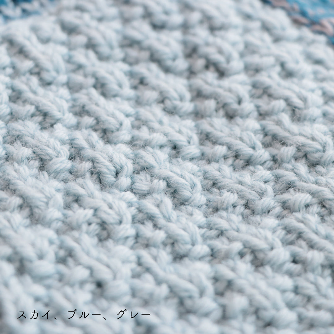 身頃は表編みと裏編みで凹凸のある編地や配色の引き揃えなど、27枚の編み地を一枚ずつ丁寧につなげて形を作っていく過程は、パズルのようにお楽しみいただけすはず。