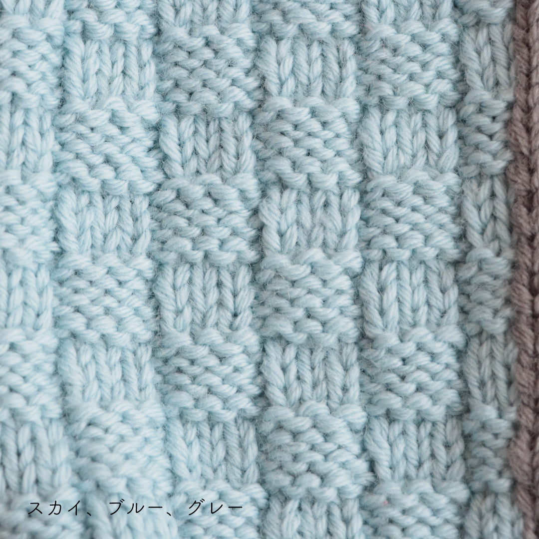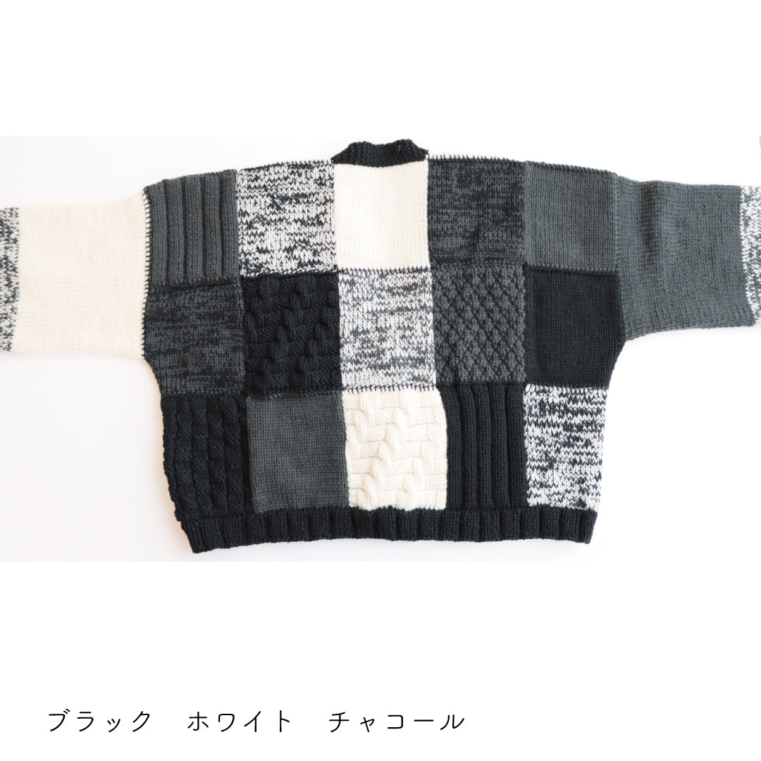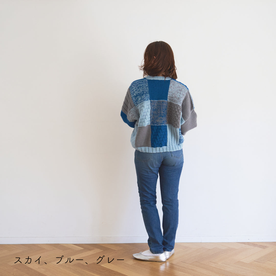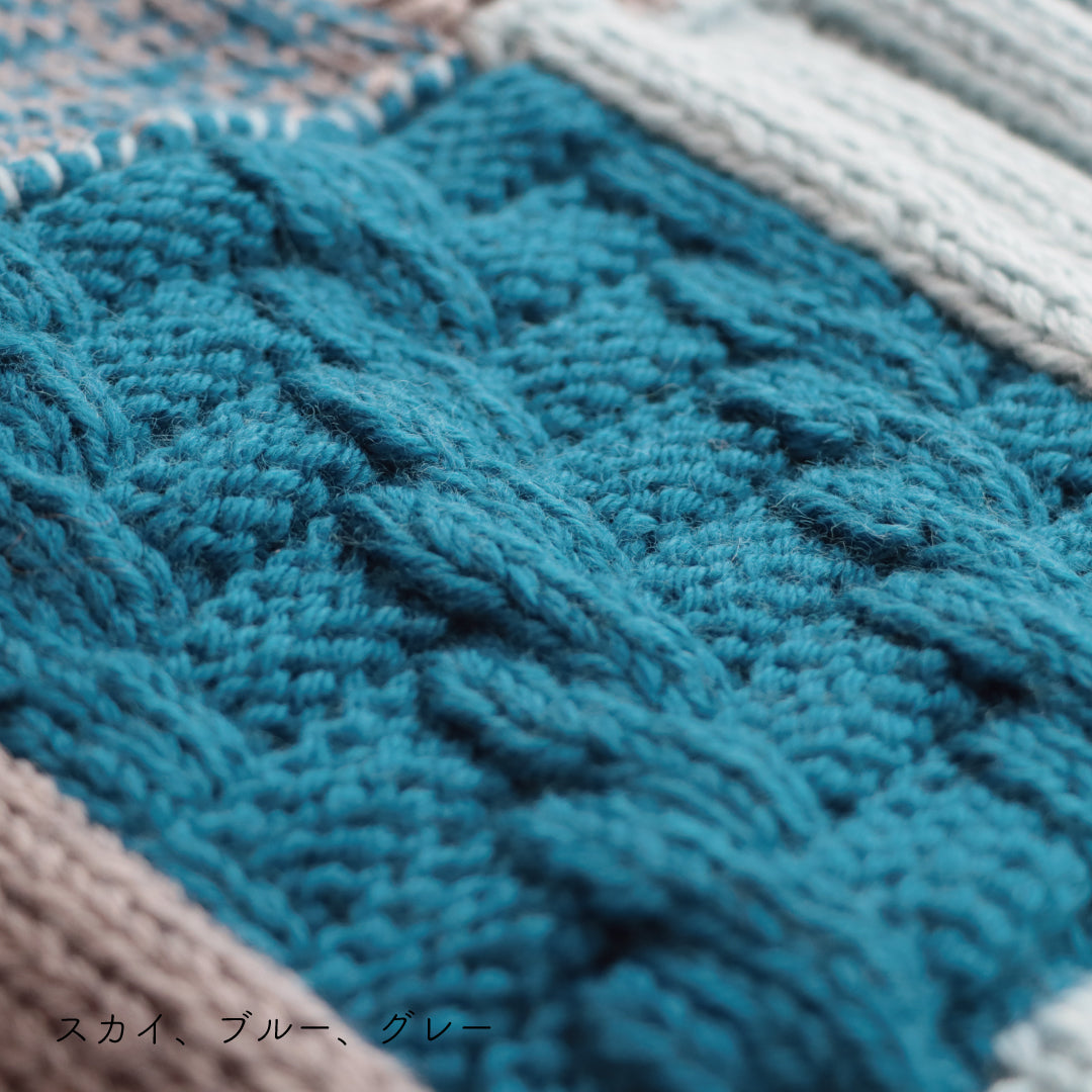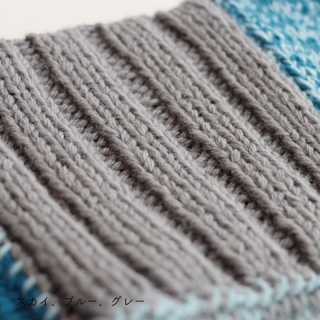 身頃は表編みと裏編みで凹凸のある編地や配色の引き揃えなど、27枚の編み地を一枚ずつ丁寧につなげて形を作っていく過程は、パズルのようにお楽しみいただけすはず。