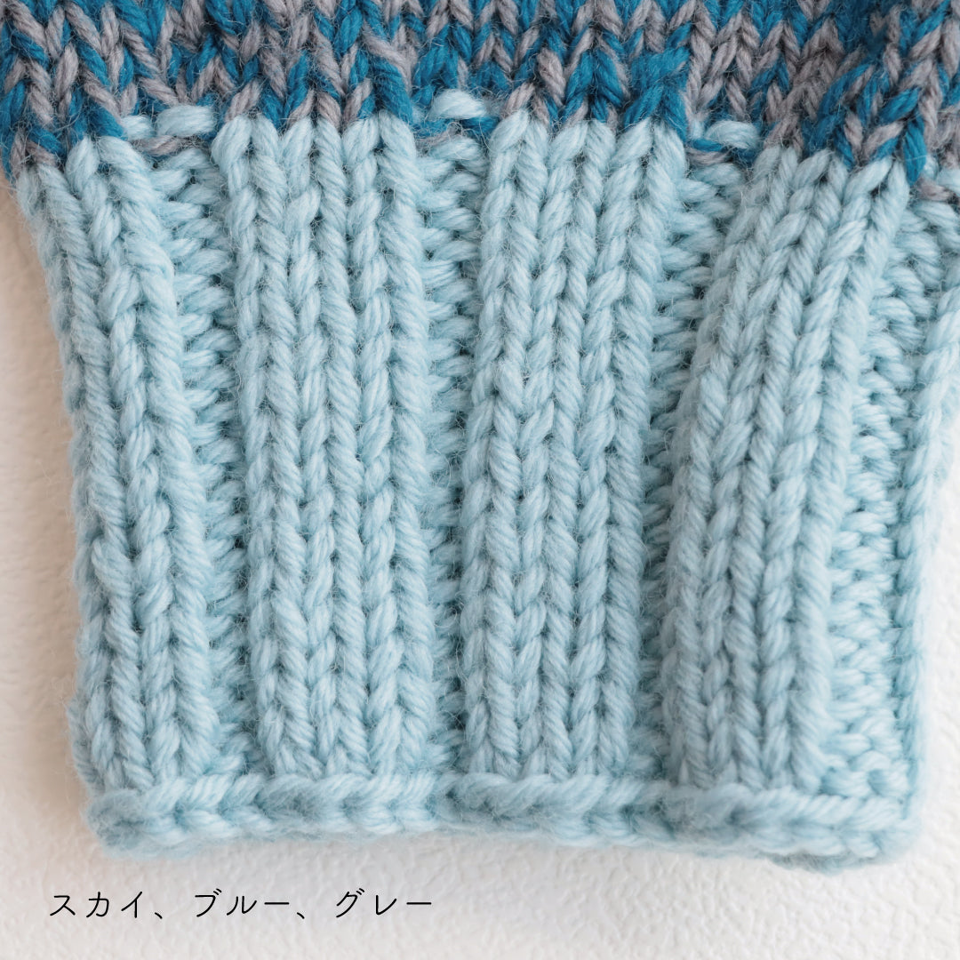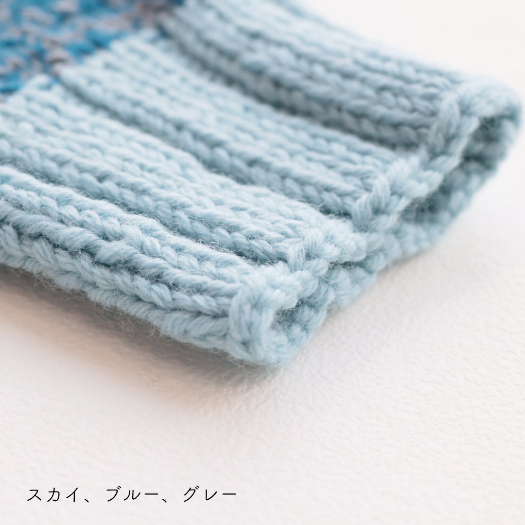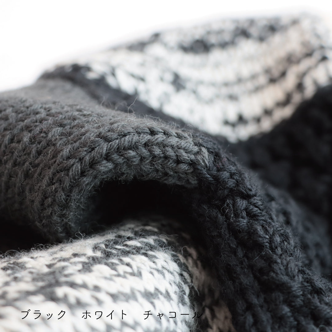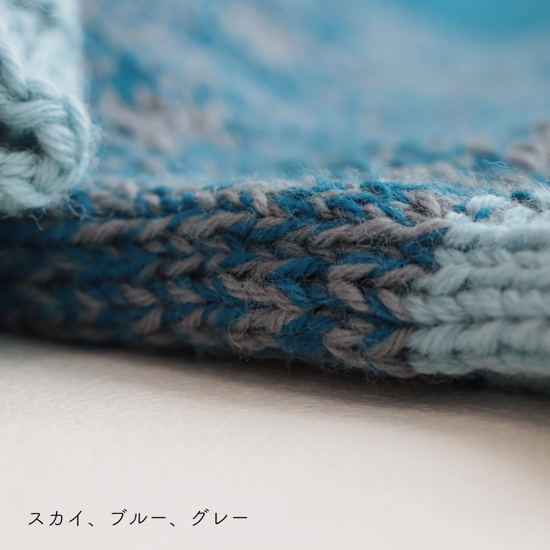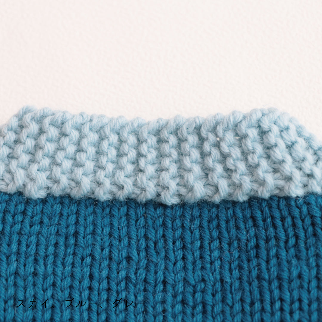身頃は表編みと裏編みで凹凸のある編地や配色の引き揃えなど、27枚の編み地を一枚ずつ丁寧につなげて形を作っていく過程は、パズルのようにお楽しみいただけすはず。
