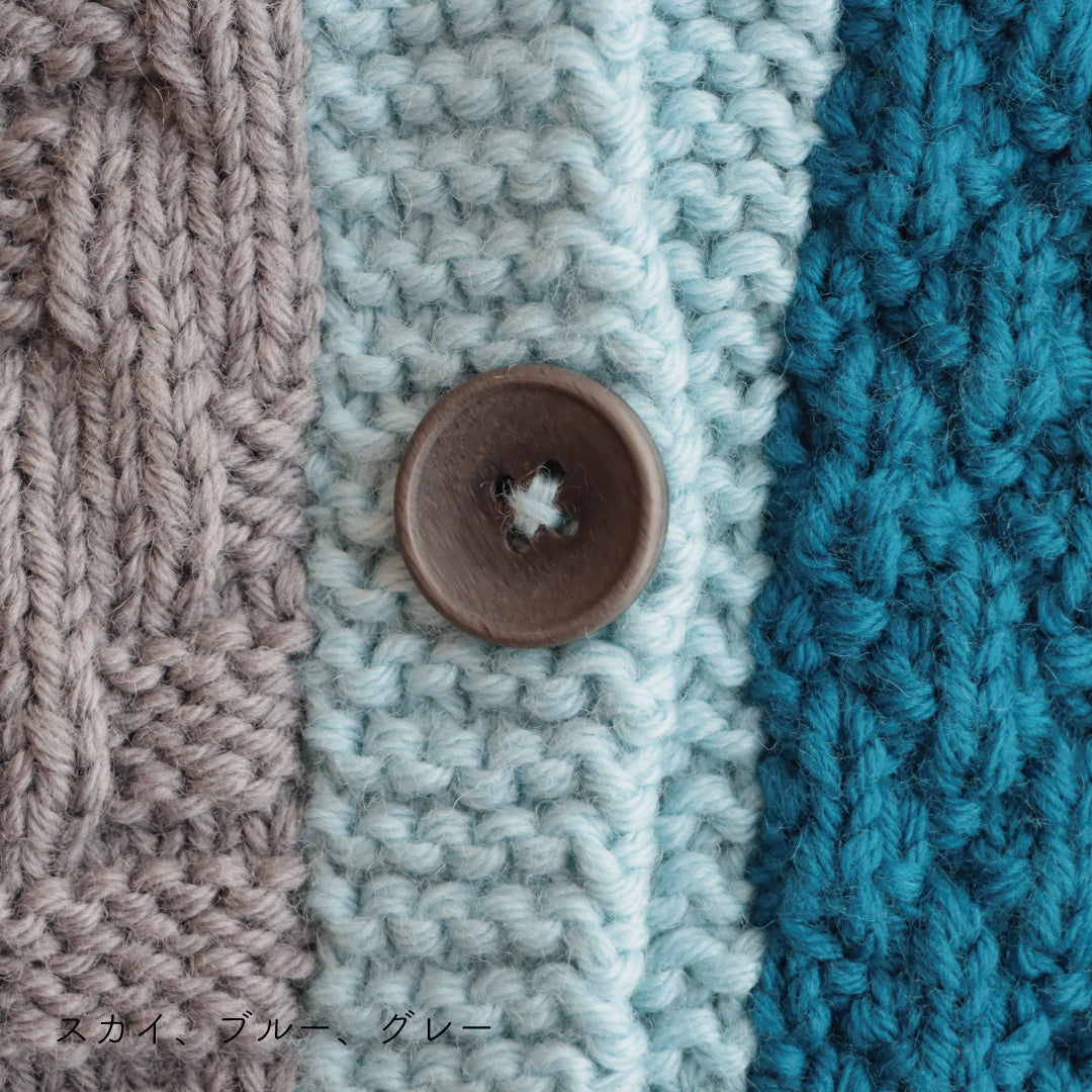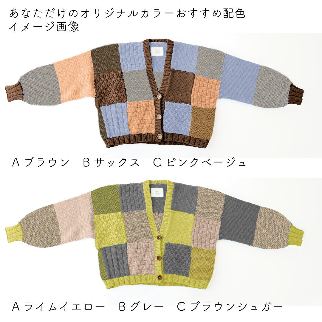 ふんわりとやさしい手ざわりが魅力の sawada itto「Amotto」を3色使ってさまざまな編み柄を組み合わせることで、見て・編んで・着て楽しめる特別なカーディガンキットができました。