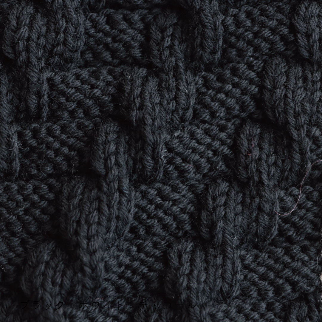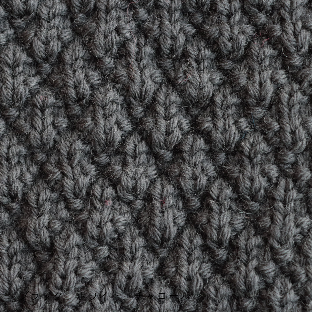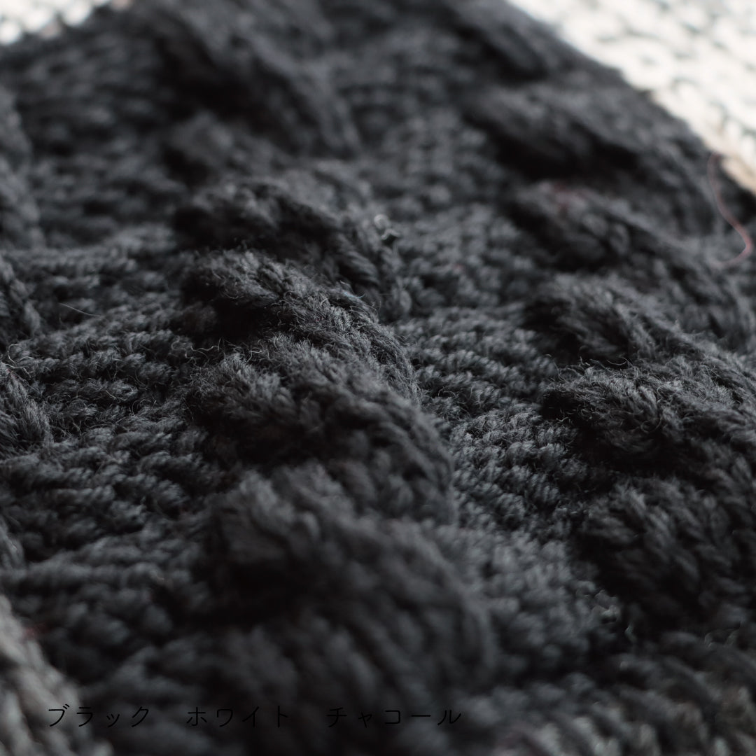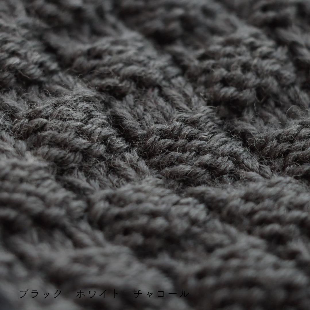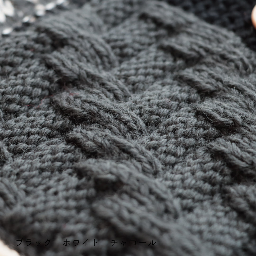 ですが、見た目ほど難しい編み方は無く、編地自体は表編みと裏編みのみで編むことができますので、中級レベルの方でも挑戦していただける作品です!!