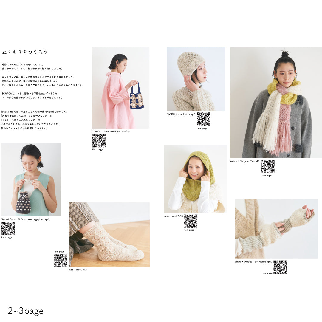 sawada ittoオリジナルパターンを厳選して1冊にまとめたKnit Book。セーターやカーディガンを掲載した【WEAR】とバッグや帽子などを掲載した【Knit 小物】