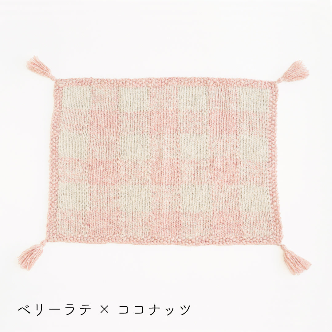 ネップとスラブのファンシーヤーン[キャンディ]2本どりで配色しながら編むブランケットキットです。コンパクなトサイズなのでご自宅はもちろんオフィスやキャンプなど様々なシチュエーションでお使いいただけます。四隅で揺れるタッセルがポイント。ほっこりカラーのキャンディブランケットで寒い日も暖かくお過ごしください。※素材の特性上、獣毛の香りが強く残っている場合がございます。