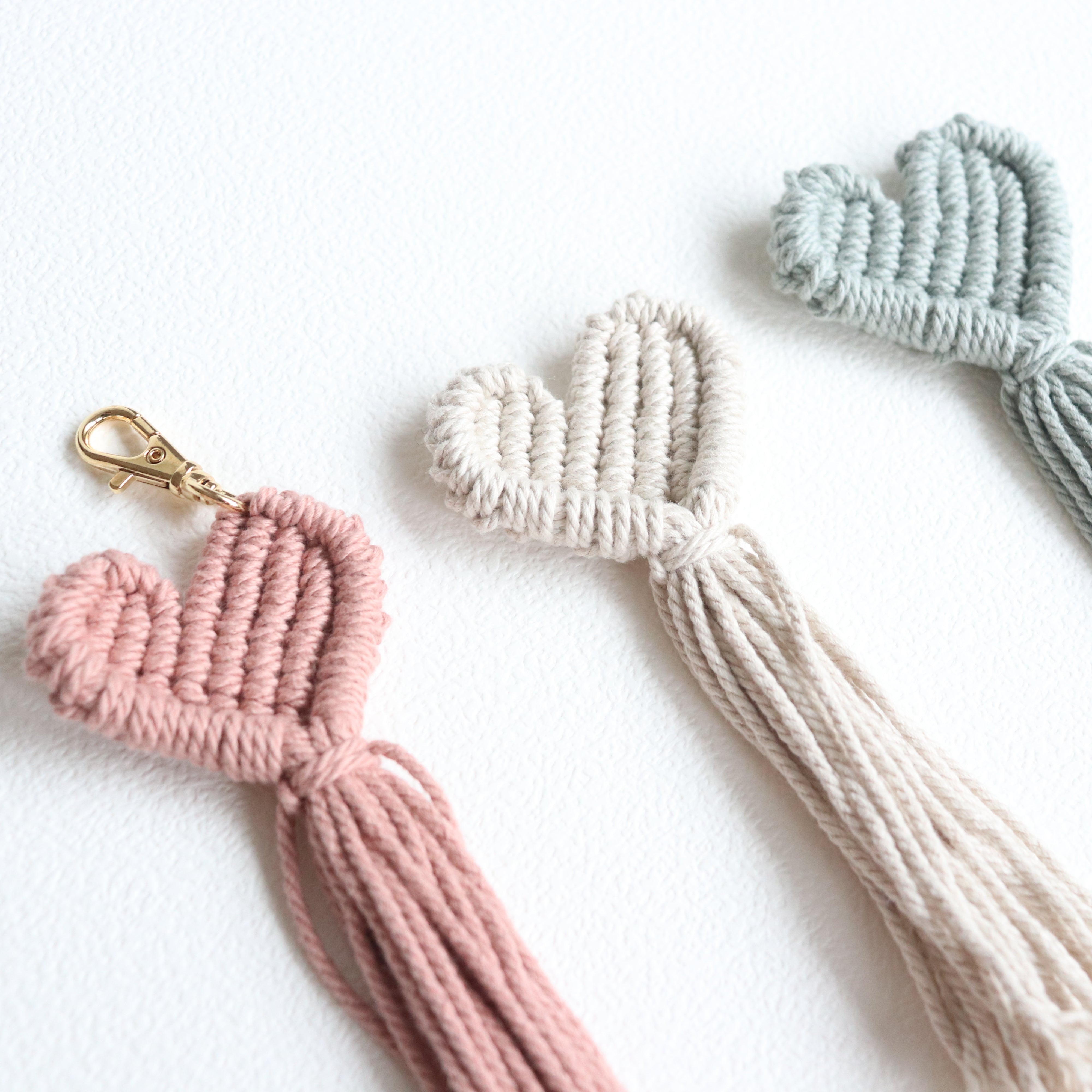 Cotton Twist 2mm で作るハートのキーリング・セット内容:Cotton Twist 2mm 3色 結び図