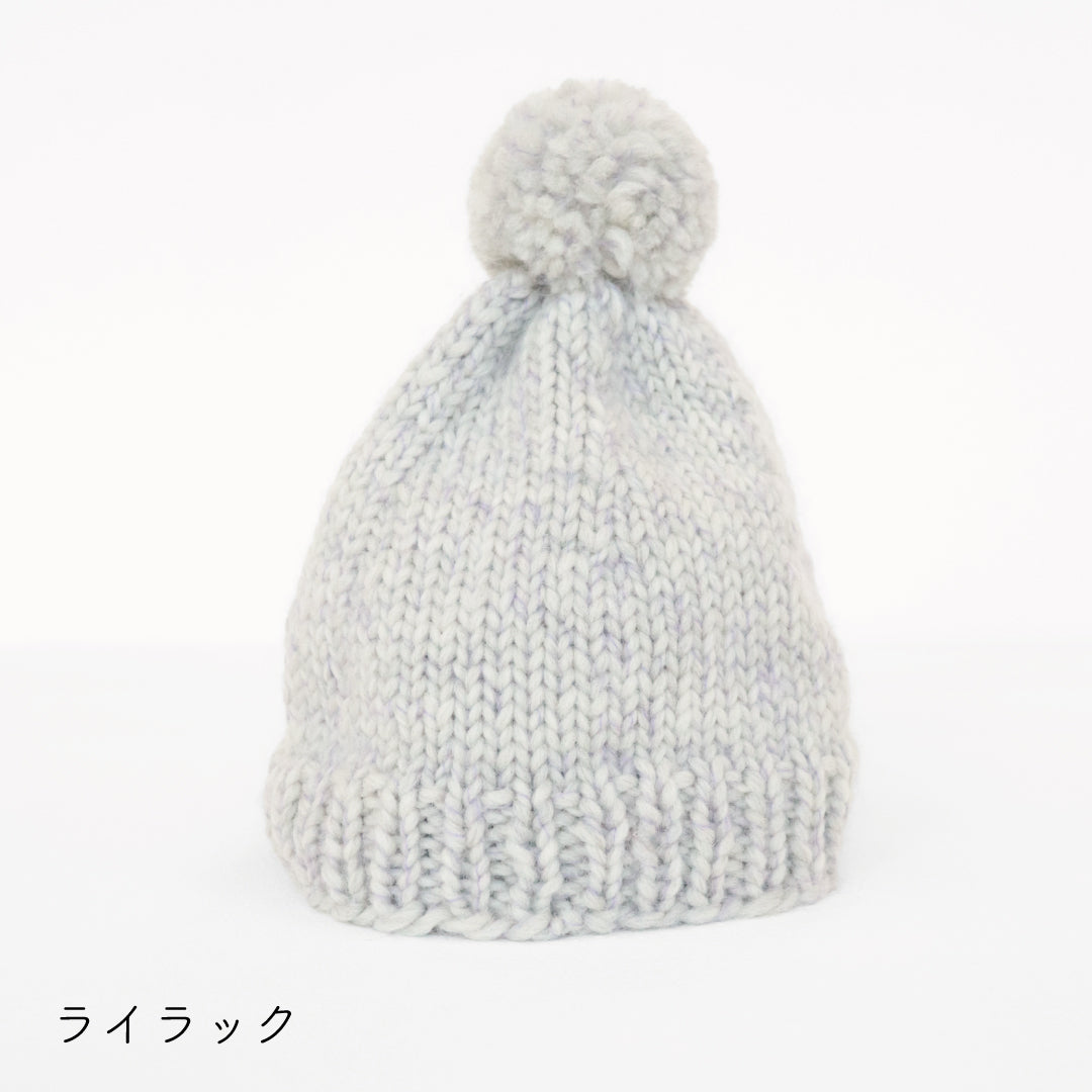 大きなポンポンが目をひくかわいいニット帽。ふんわりと頭を包んで暖かく過ごせます。極太の糸なのでザクザク編み進められ、基本のメリヤス編み、リブ編み、減らし目だけで完成するので初心者さんにおすすめです。糸割れもなくスムーズに編み進めることができます。このニット帽で基本の編み方をマスターできますよ。
