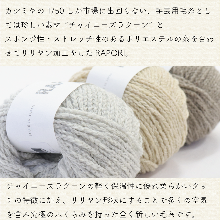 ウール37%、ポリエステル25%、毛(チャイニーズラクーン)19%、ナイロン19%