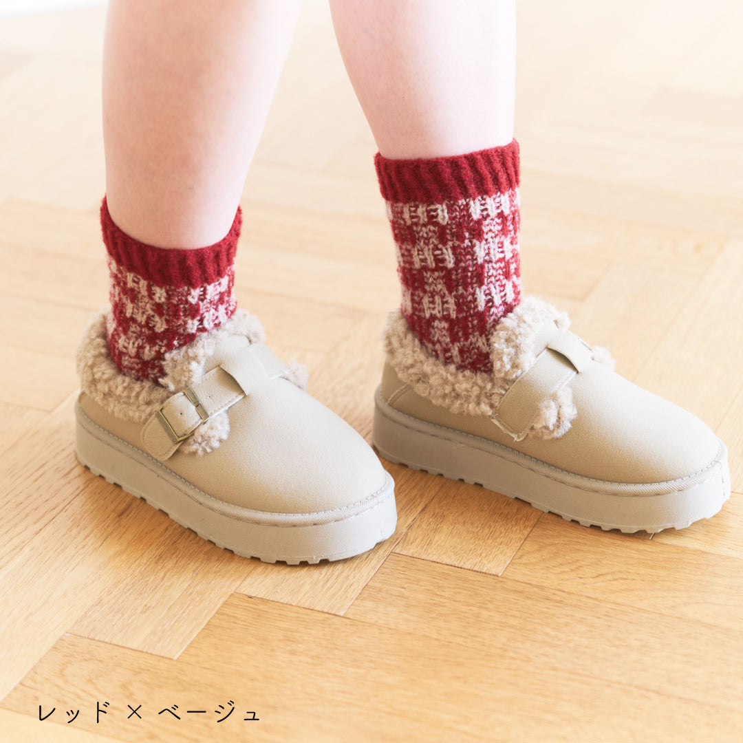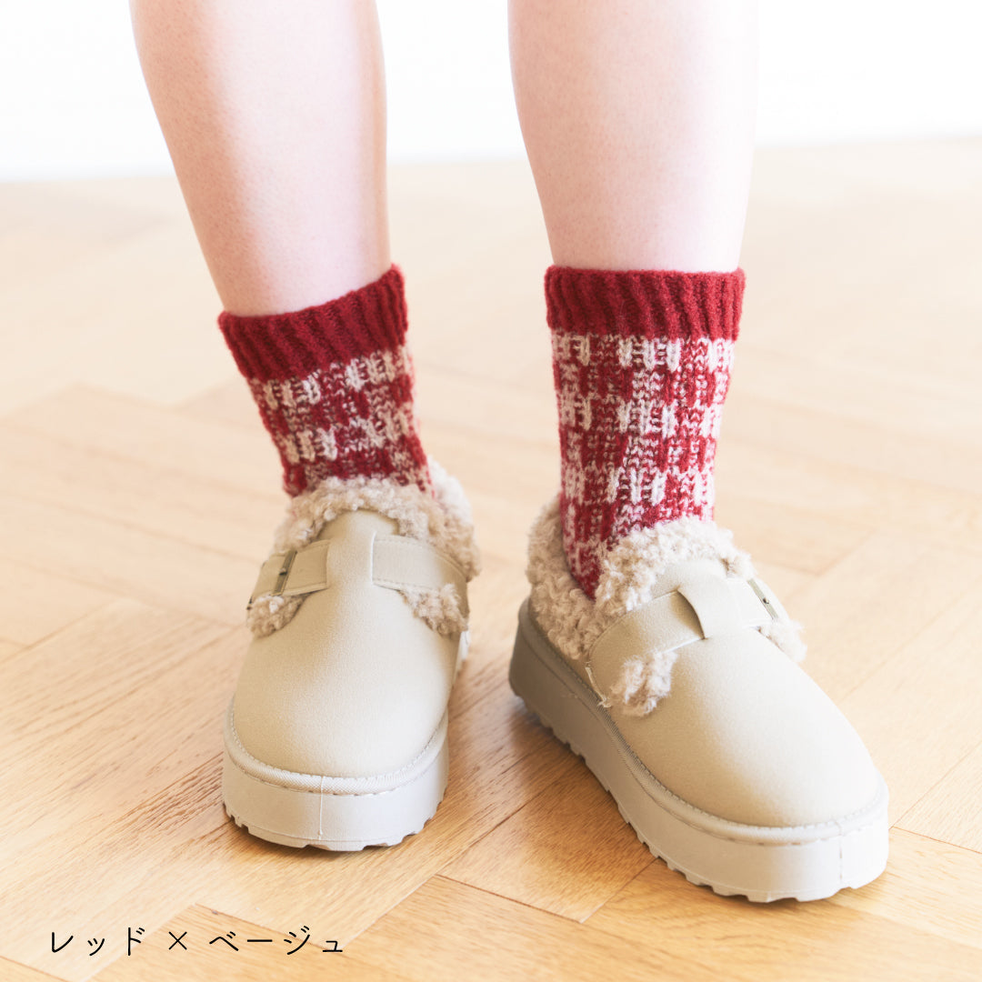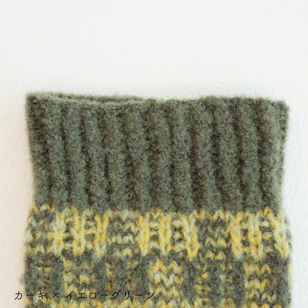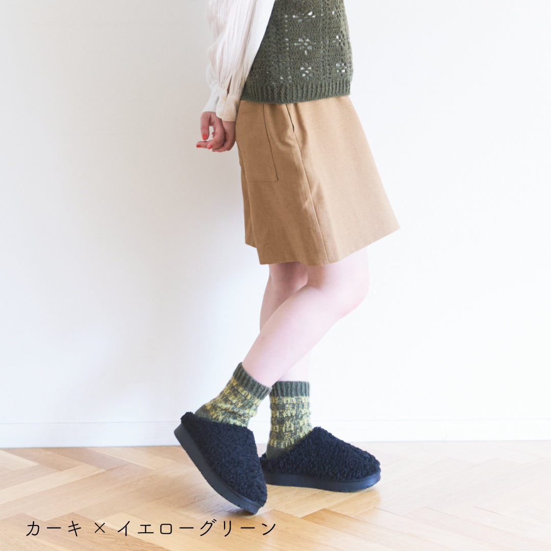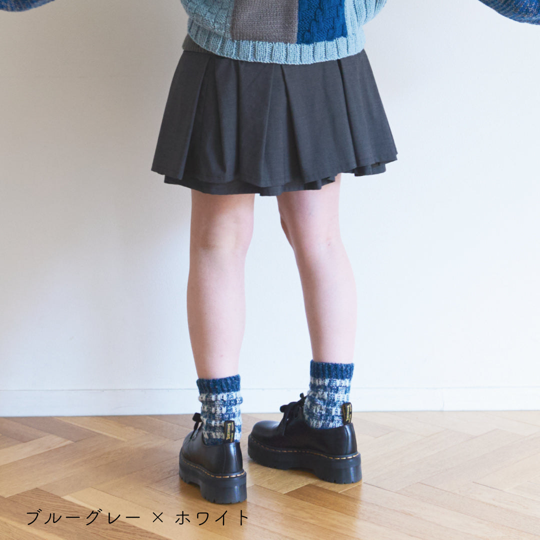エクストラファインメリノウールを贅沢に使用しふんわり柔らかく、しっとりと肌に寄り添うような心地よさが魅力の糸【moo】で編む、ギンガムチェック柄ソックスキットです。