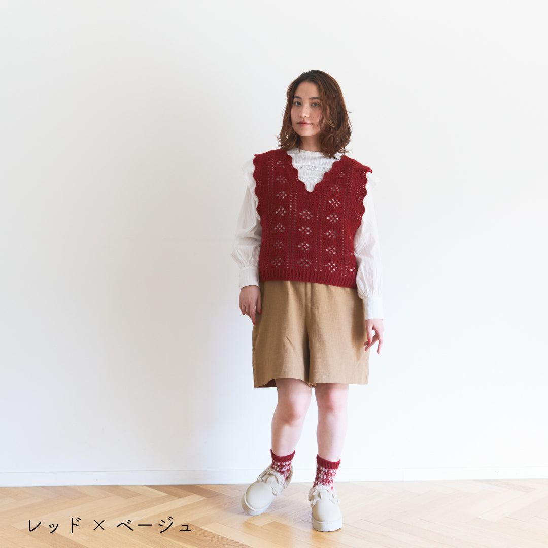 上級レベルの作品ですが、ジュディ式作り目やドイツ式引き返し編み、段消しの編み方ポイントは解説動画もありますので、新しい技法を取り入れながらも、少しずつ丁寧に進めていただけます。柄のゲージを合わせるために3/0号と4/0号はどちらも使用します。