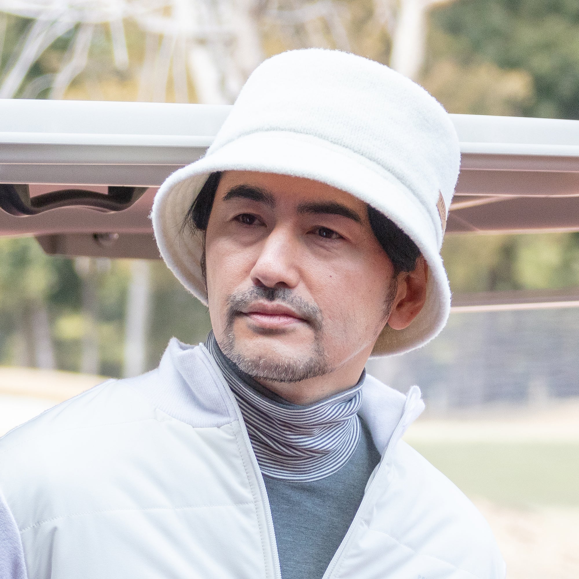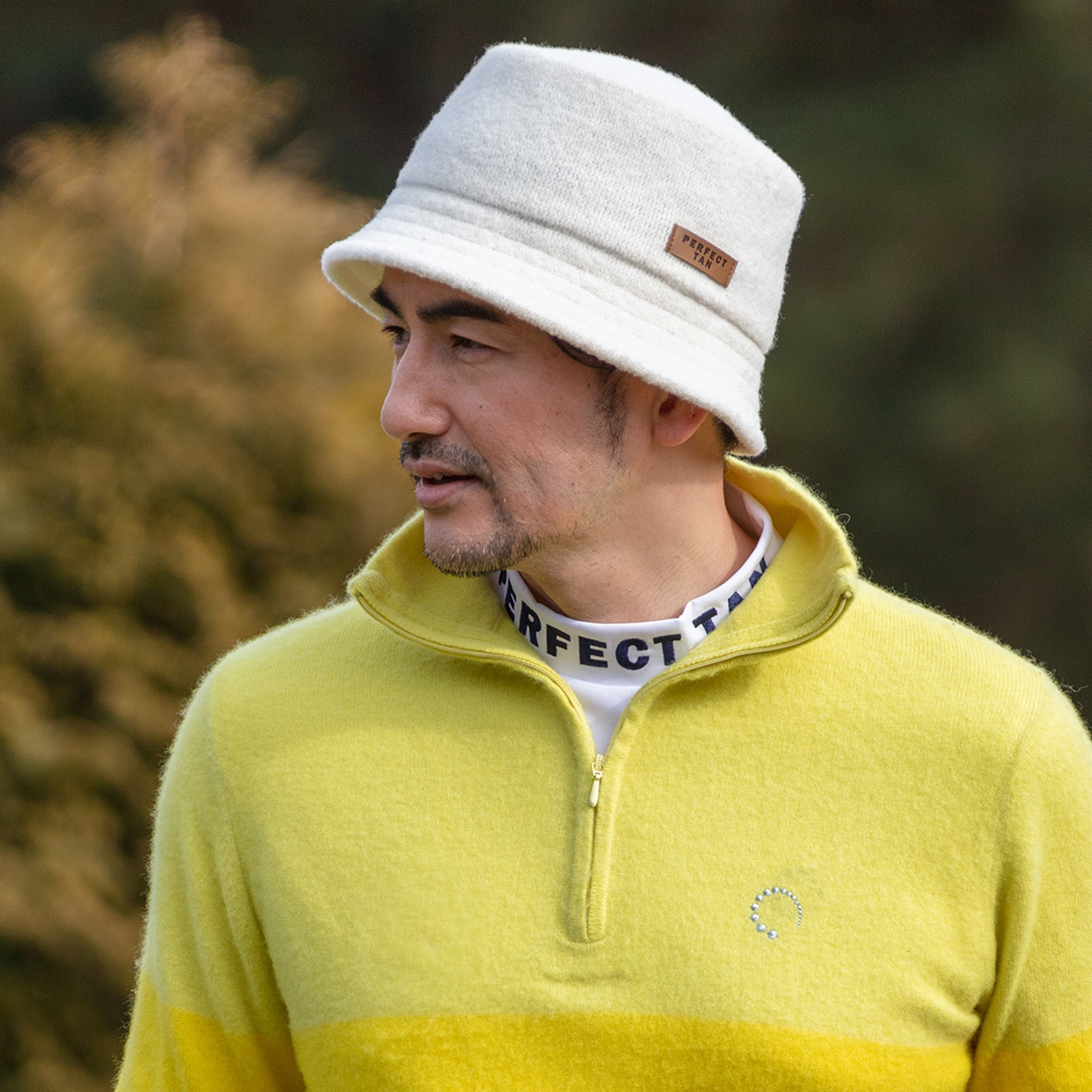 ゴルフだけでなく普段使いもできます。ニットの豊かな風合いがミニマルな印象ながら存在感のあるアイテムです。
