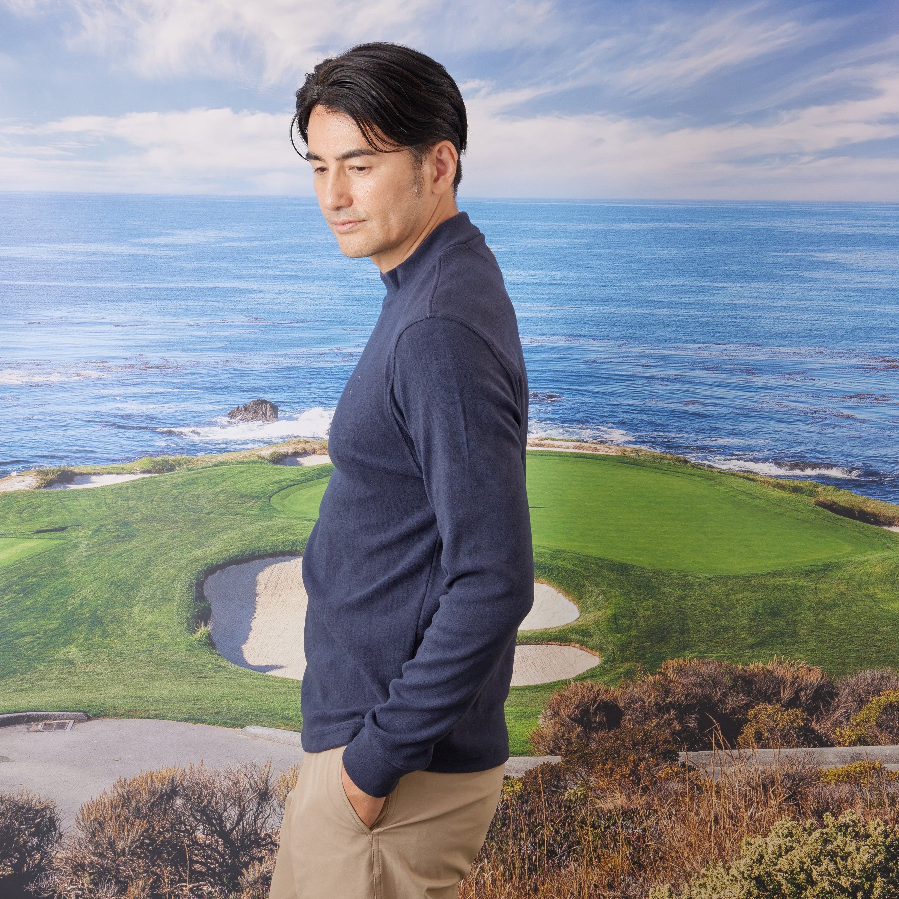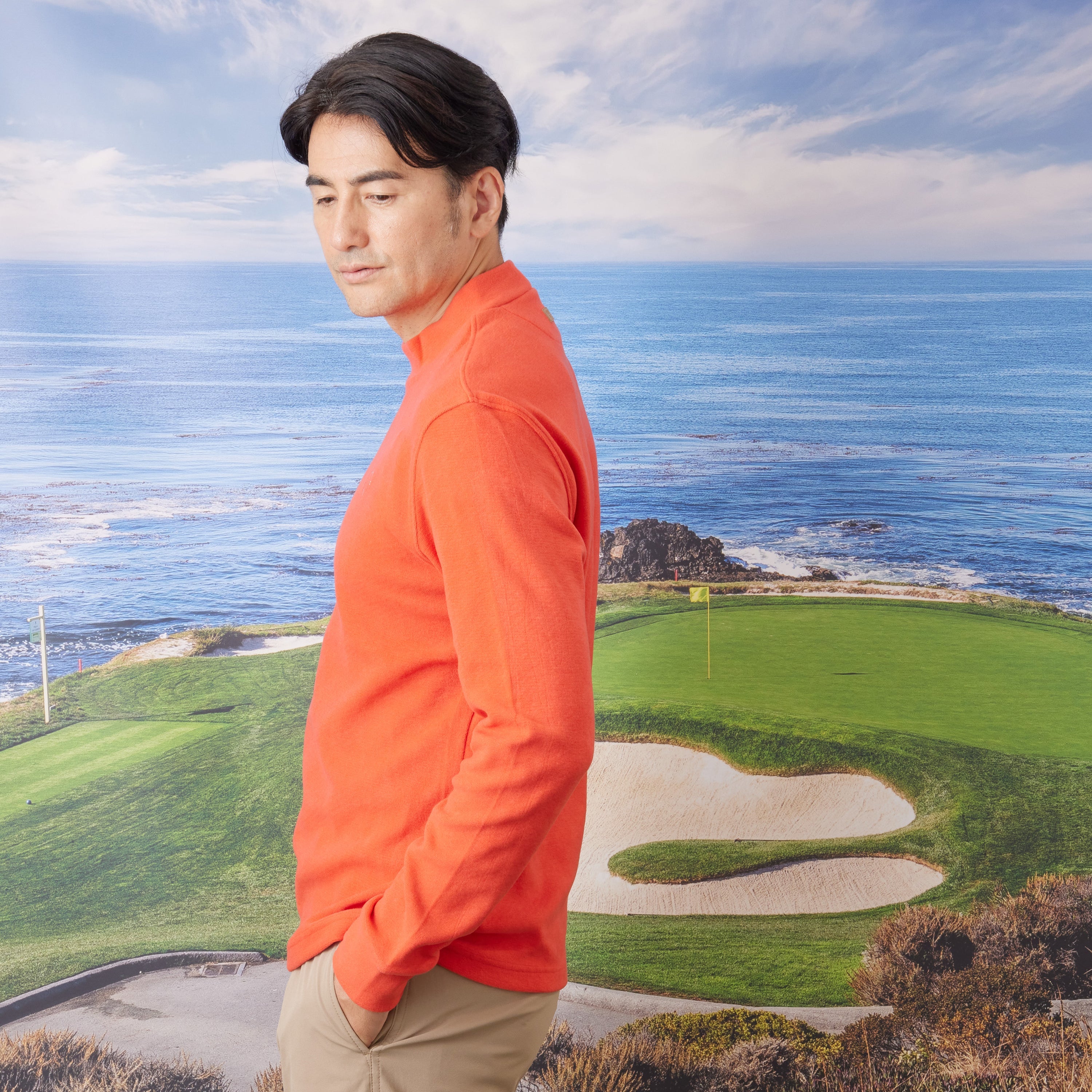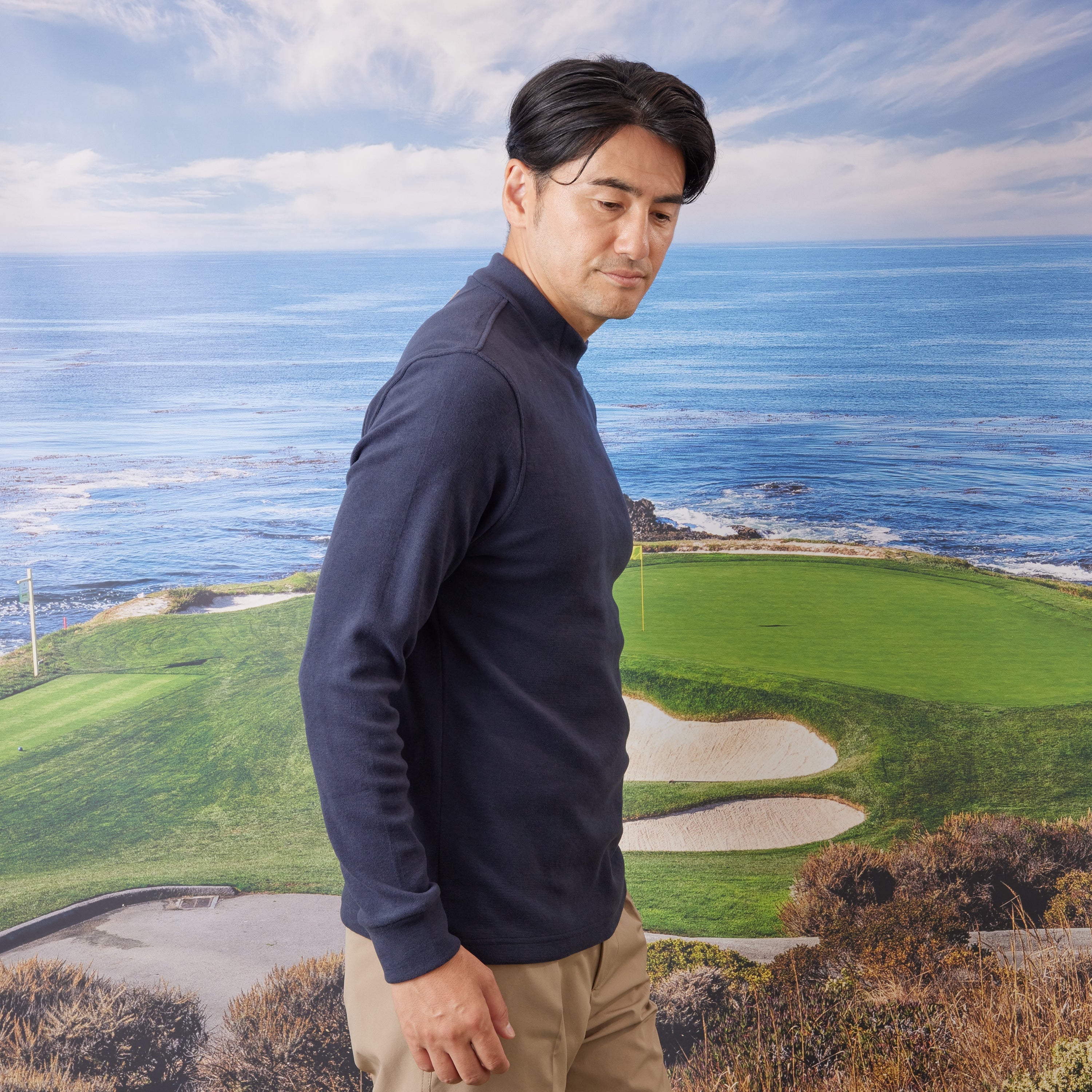 〈SOFT THERMO〉素材のフリースを用いたモックネックシャツ。