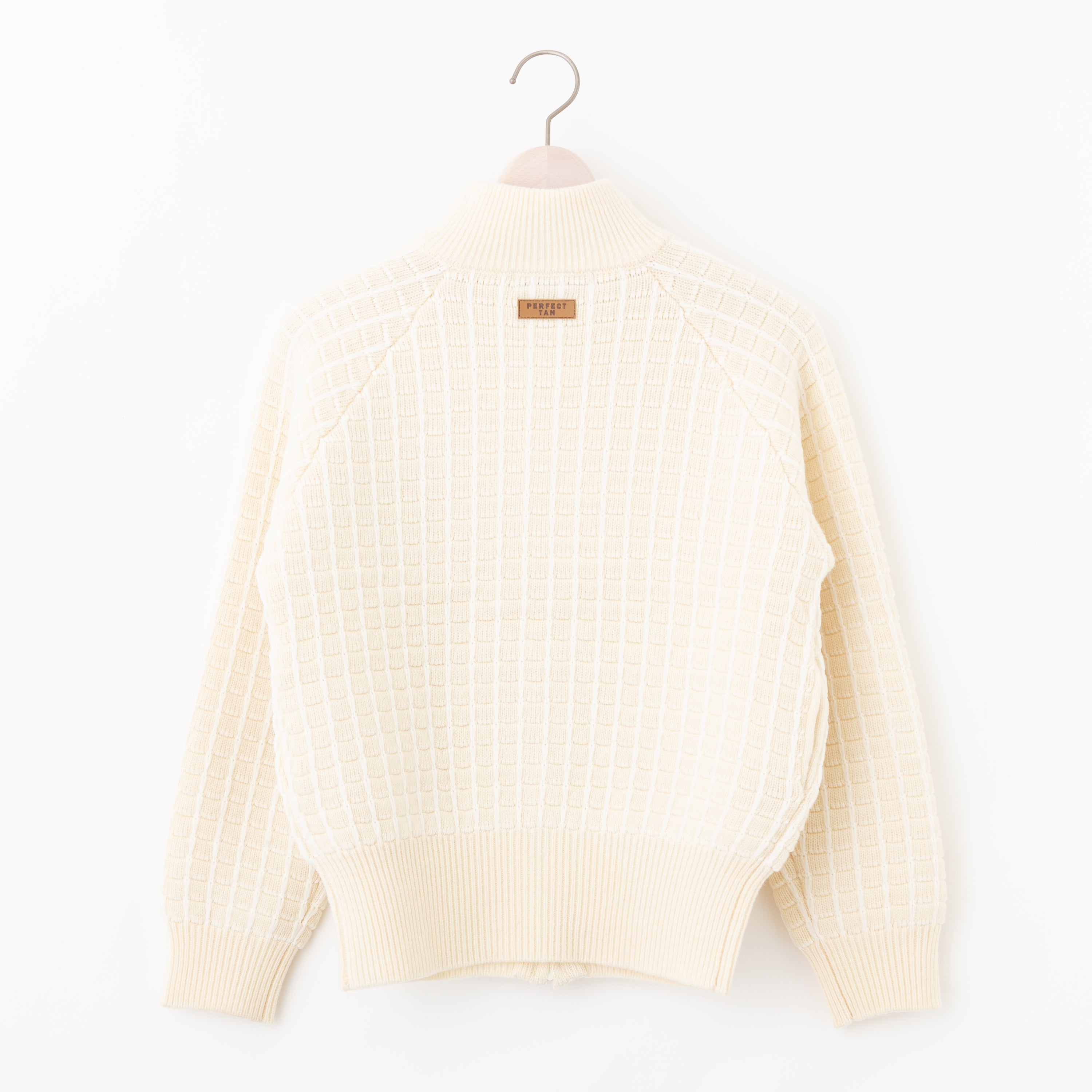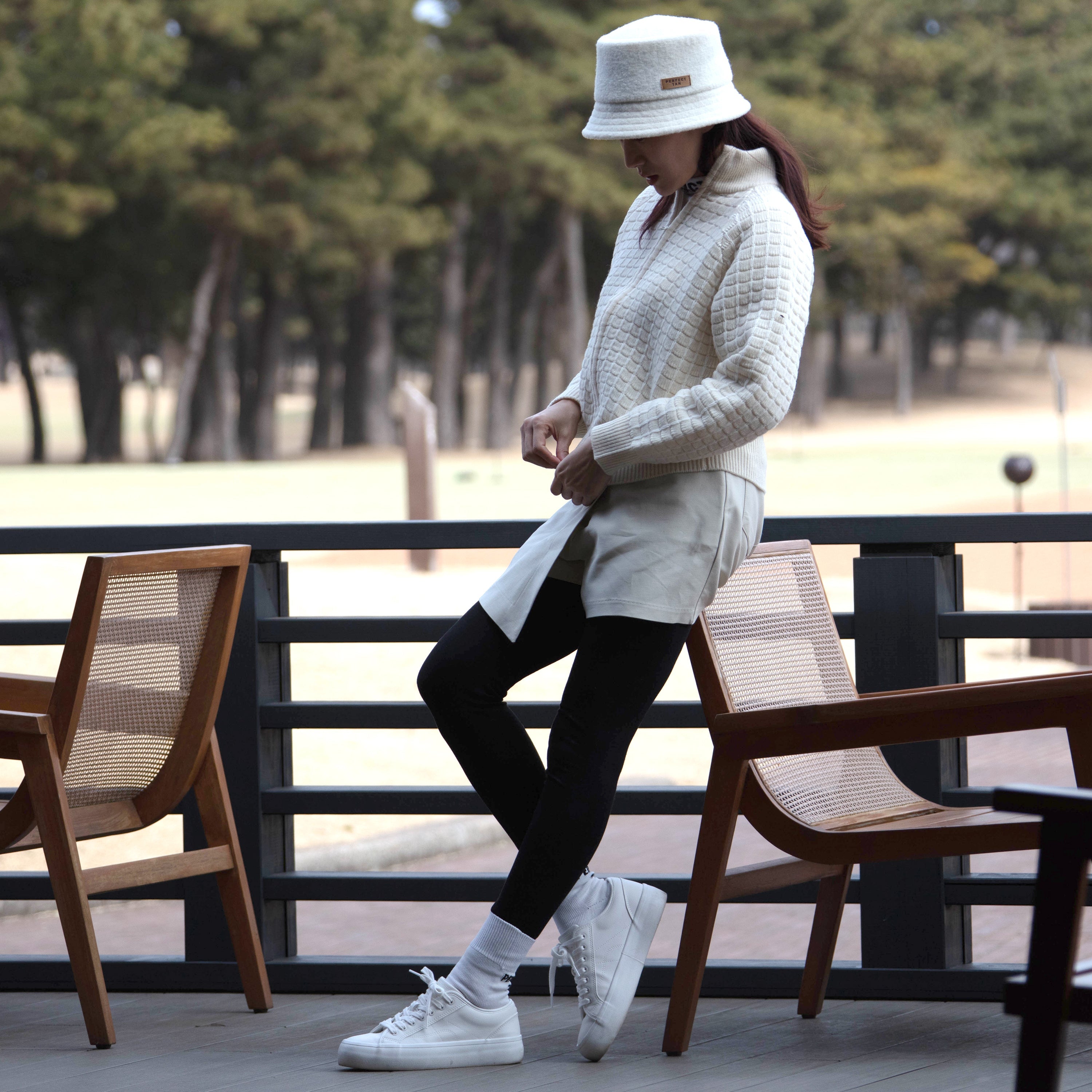 ゴルフの行きからラウンドまで大活躍する、ぷっくりとしたシルエットが愛らしいのニットアウター
