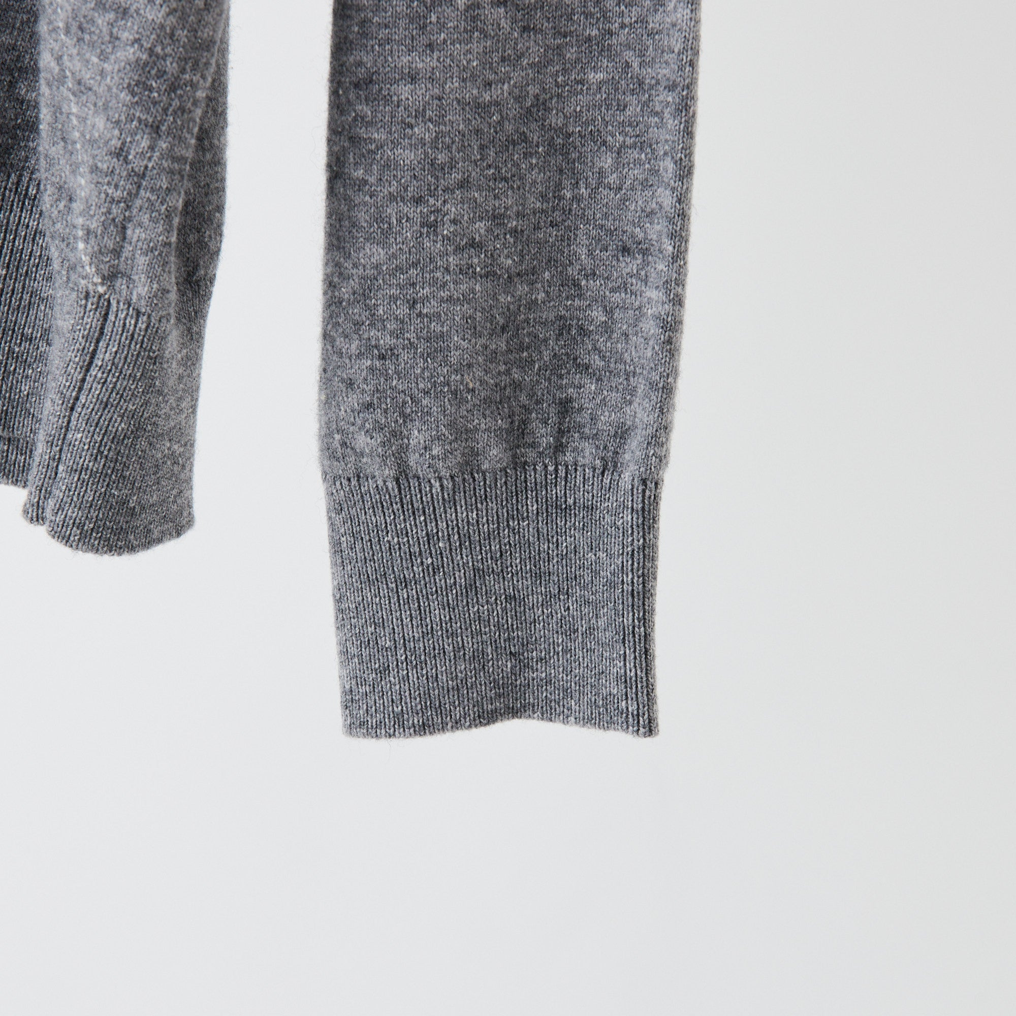 クルーネックの開きは、シャツやTシャツ、タートルネックまで様々なレイヤードを楽しめるバランス。裾口のリブは程よいルーズ感で、スウェットのように楽に着用していただけます。季節を選ばず着用しやすく、素材の良さを体感できます。
