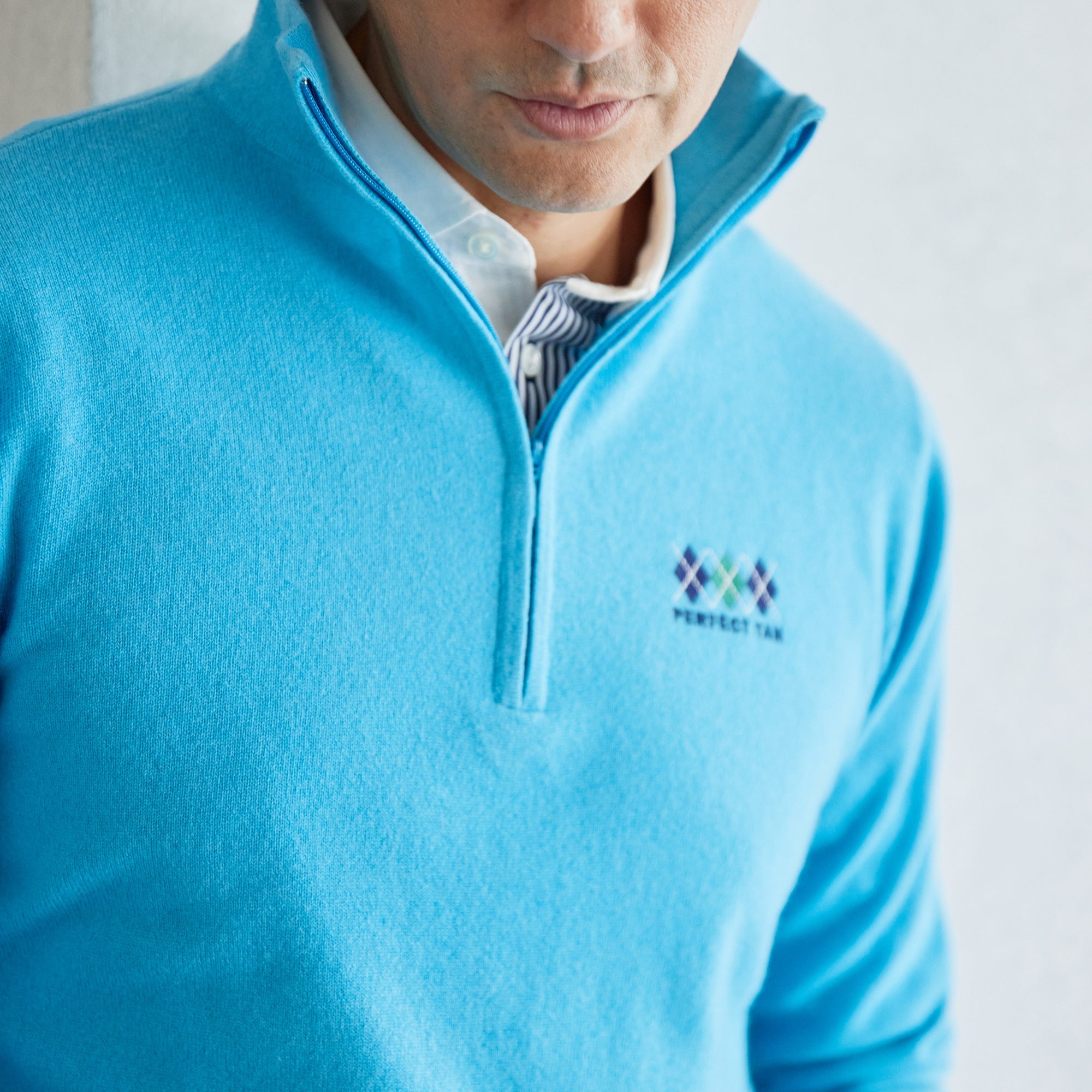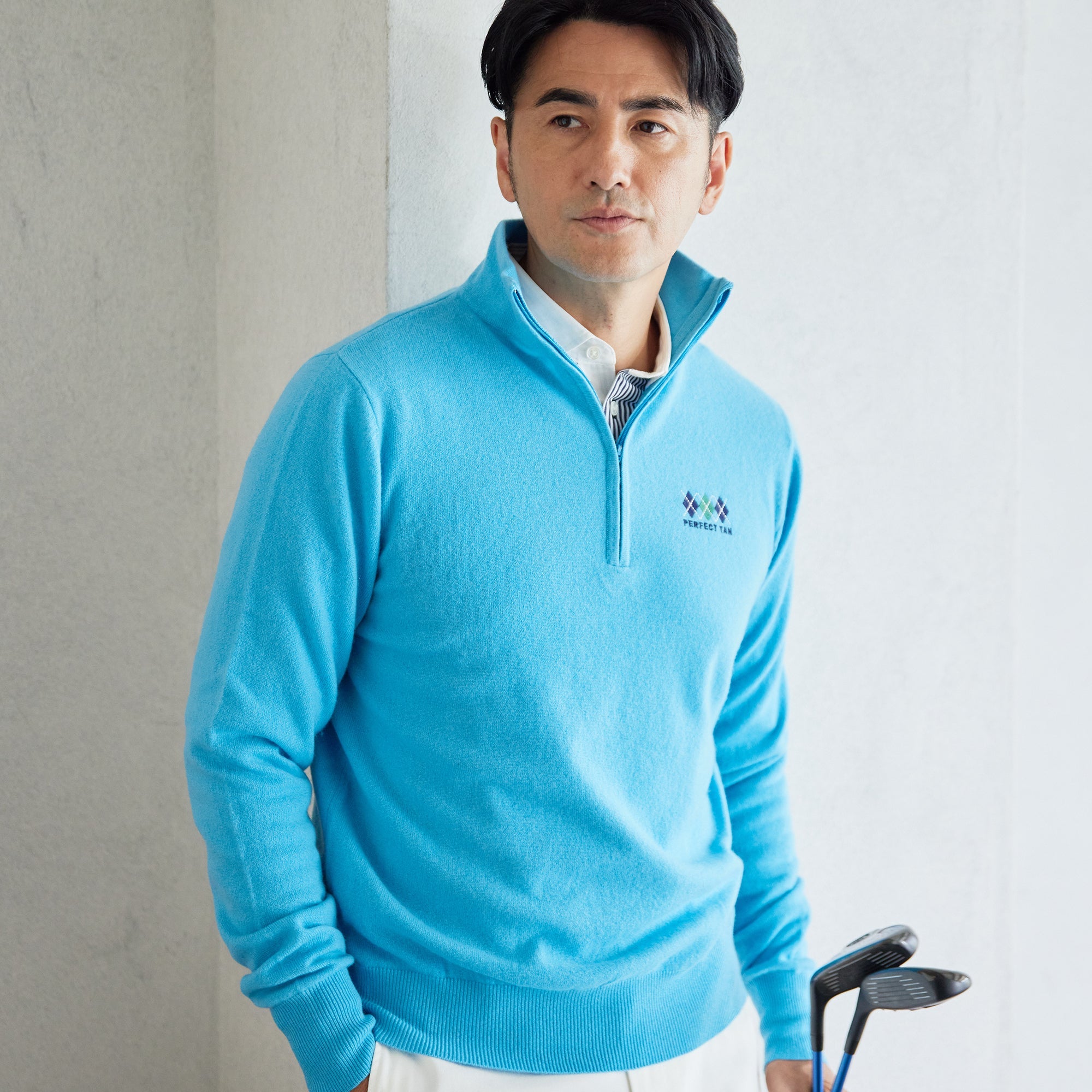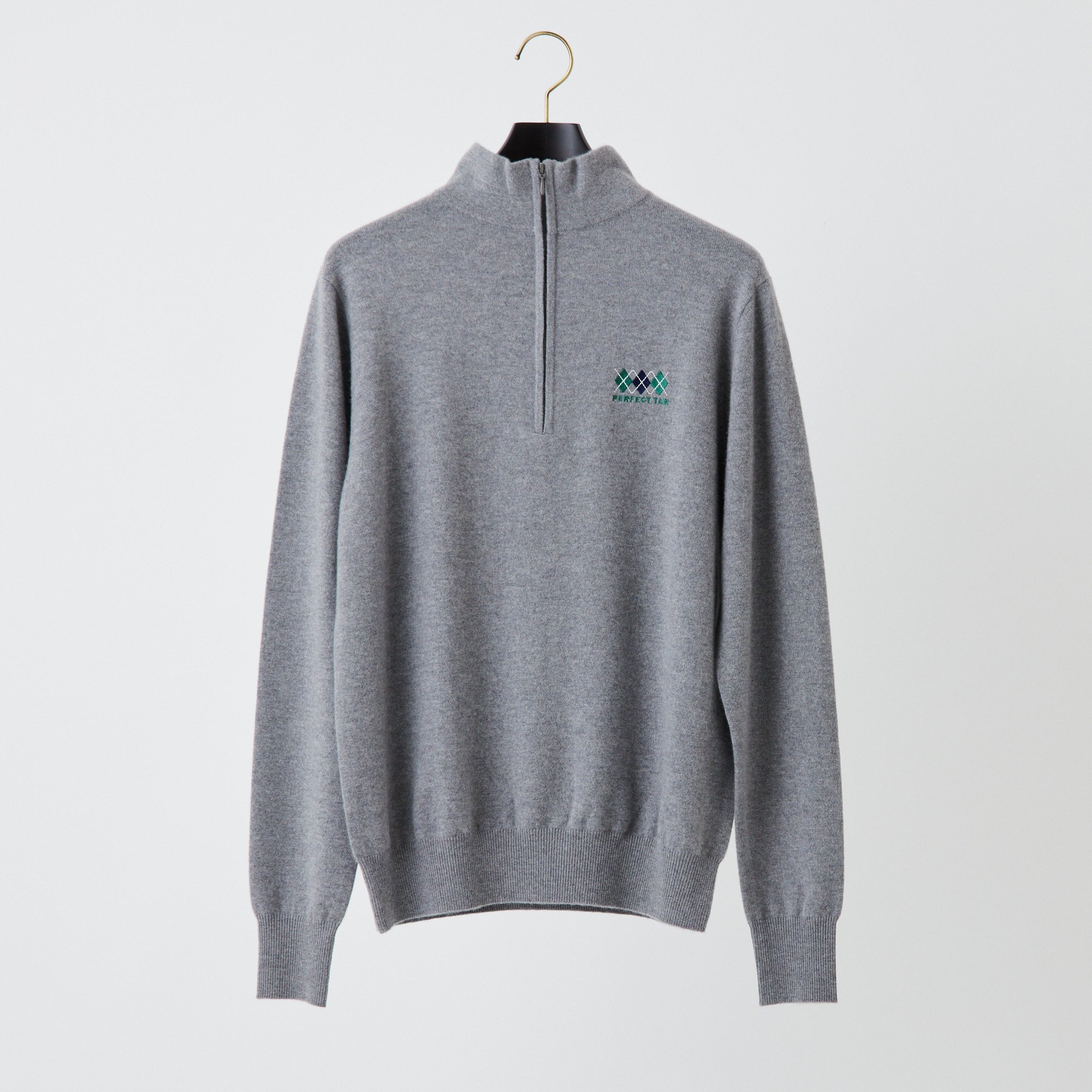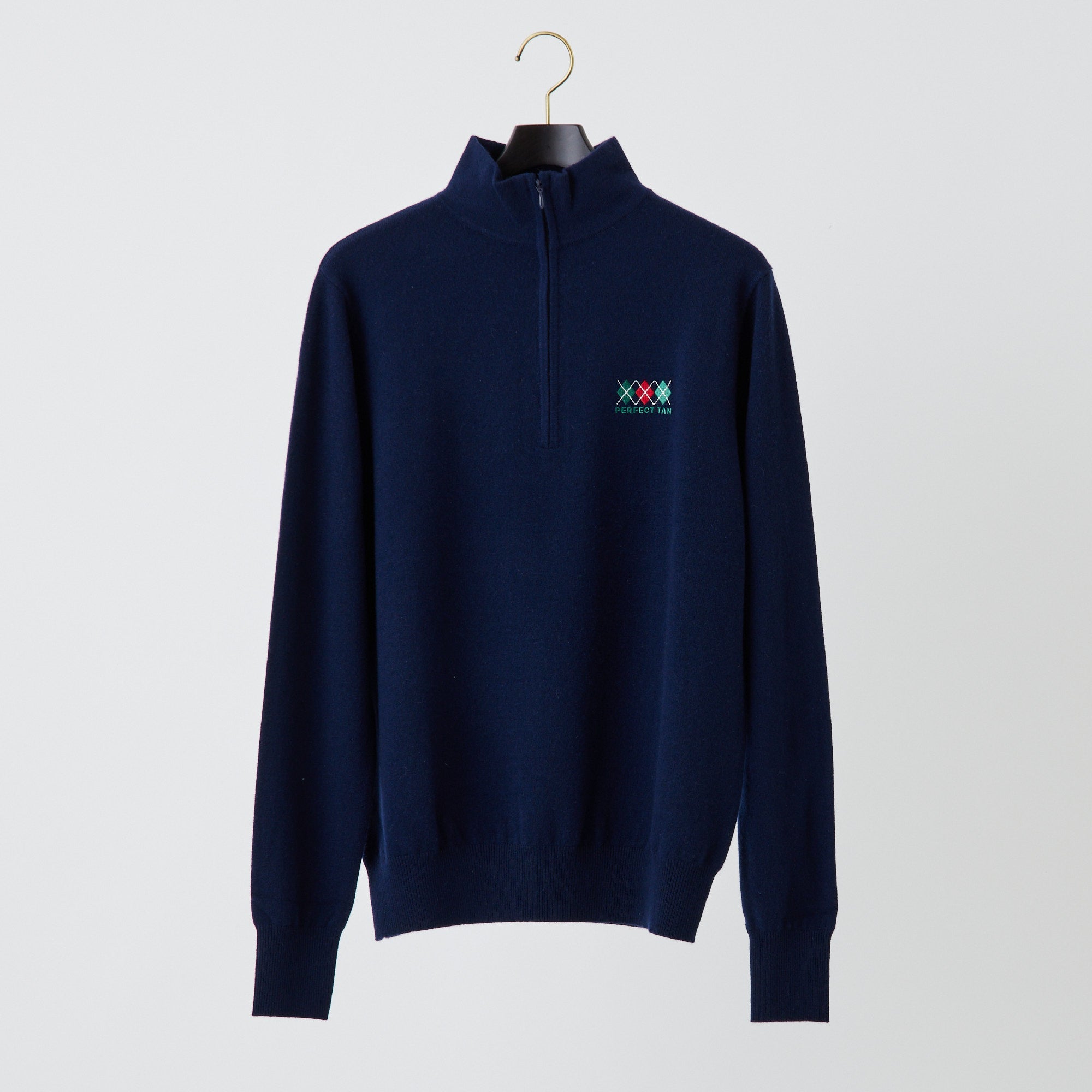 num:1 PERFECT TAN|《SALE》カシミヤハーフジップ刺繍プルオーバー〈MENS〉