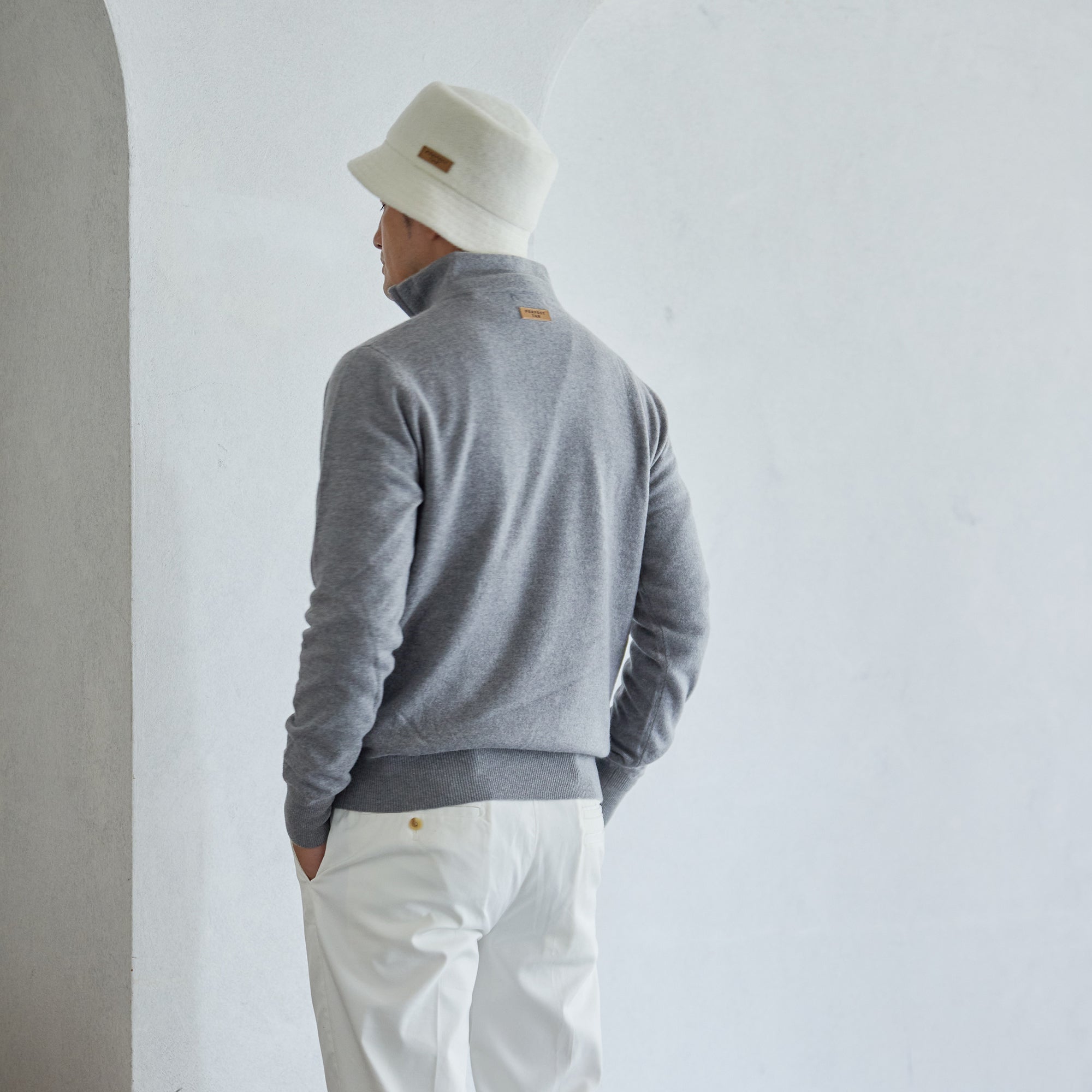 num:5 PERFECT TAN|《SALE》カシミヤハーフジップ刺繍プルオーバー〈MENS〉
