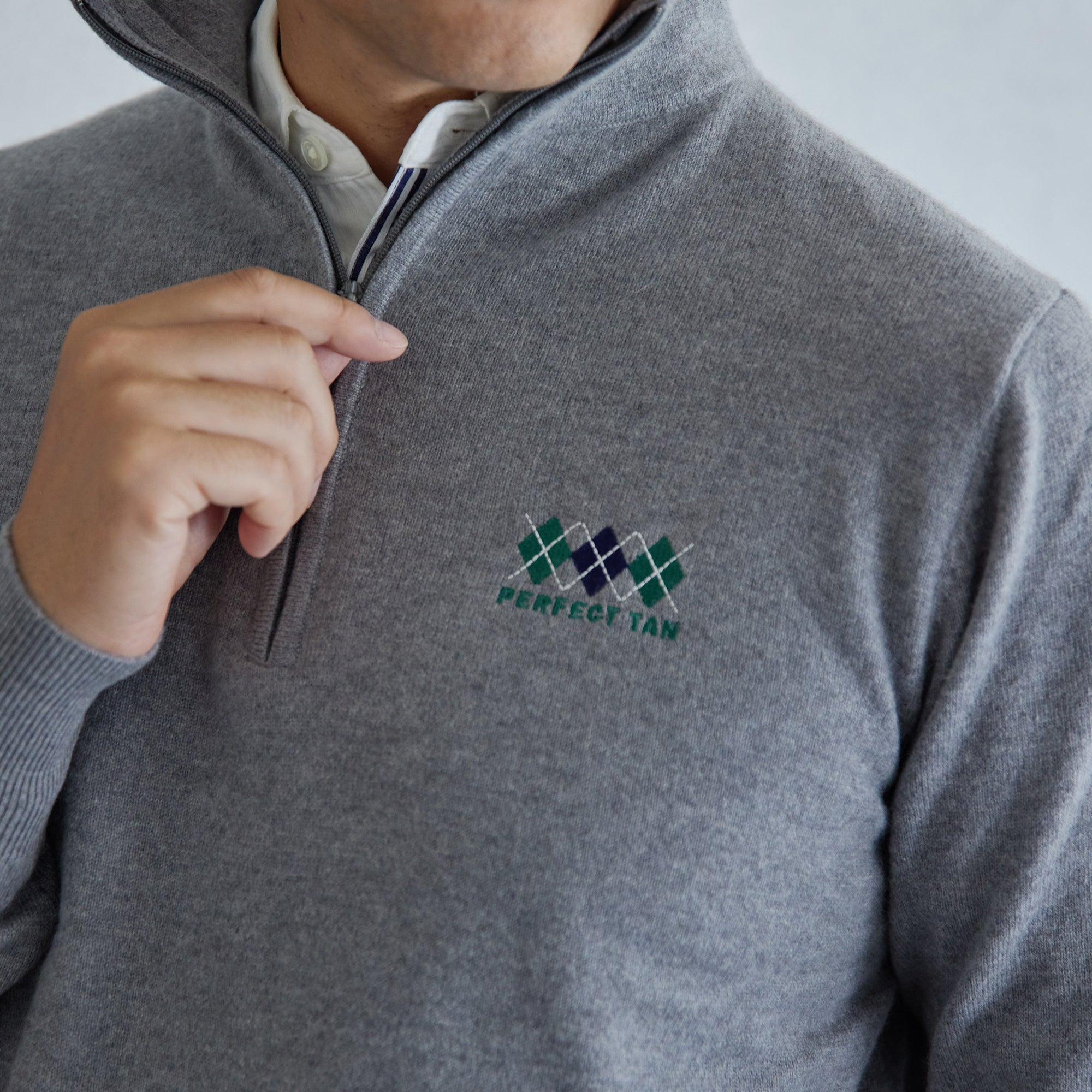 num:35 PERFECT TAN|《SALE》カシミヤハーフジップ刺繍プルオーバー〈MENS〉