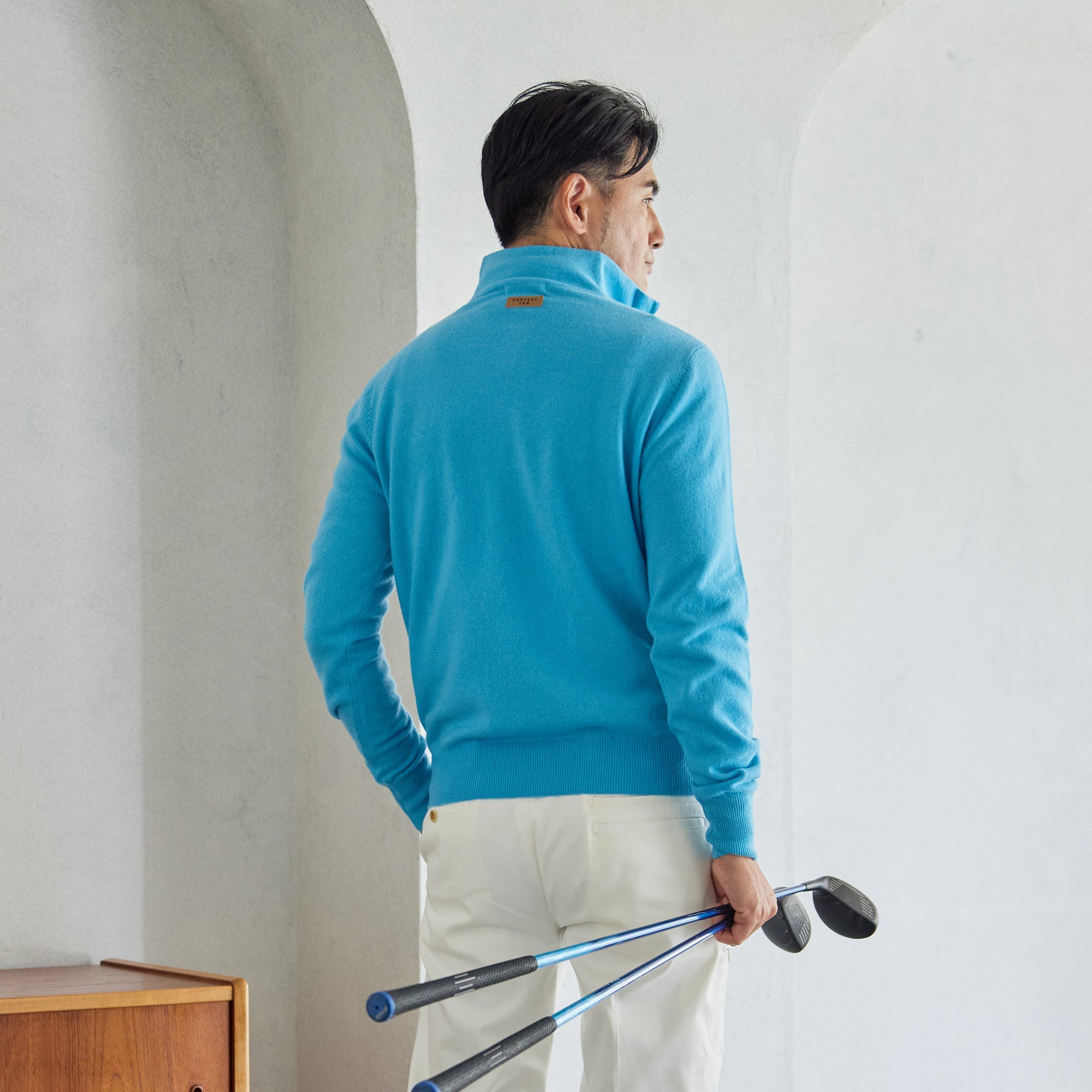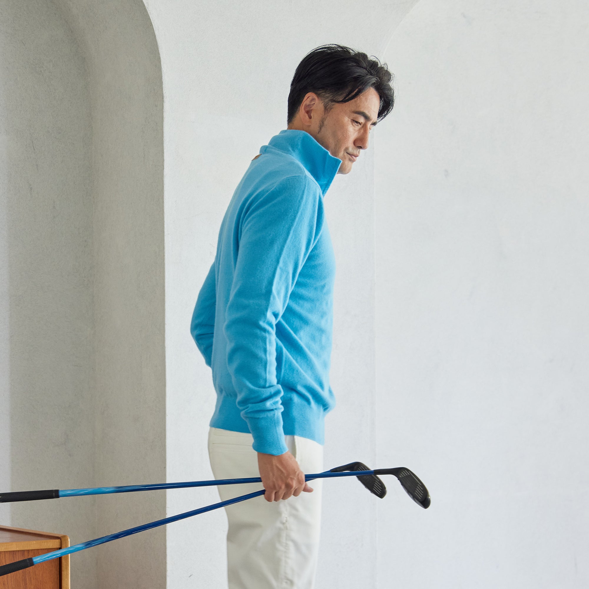num:9 PERFECT TAN|《SALE》カシミヤハーフジップ刺繍プルオーバー〈MENS〉